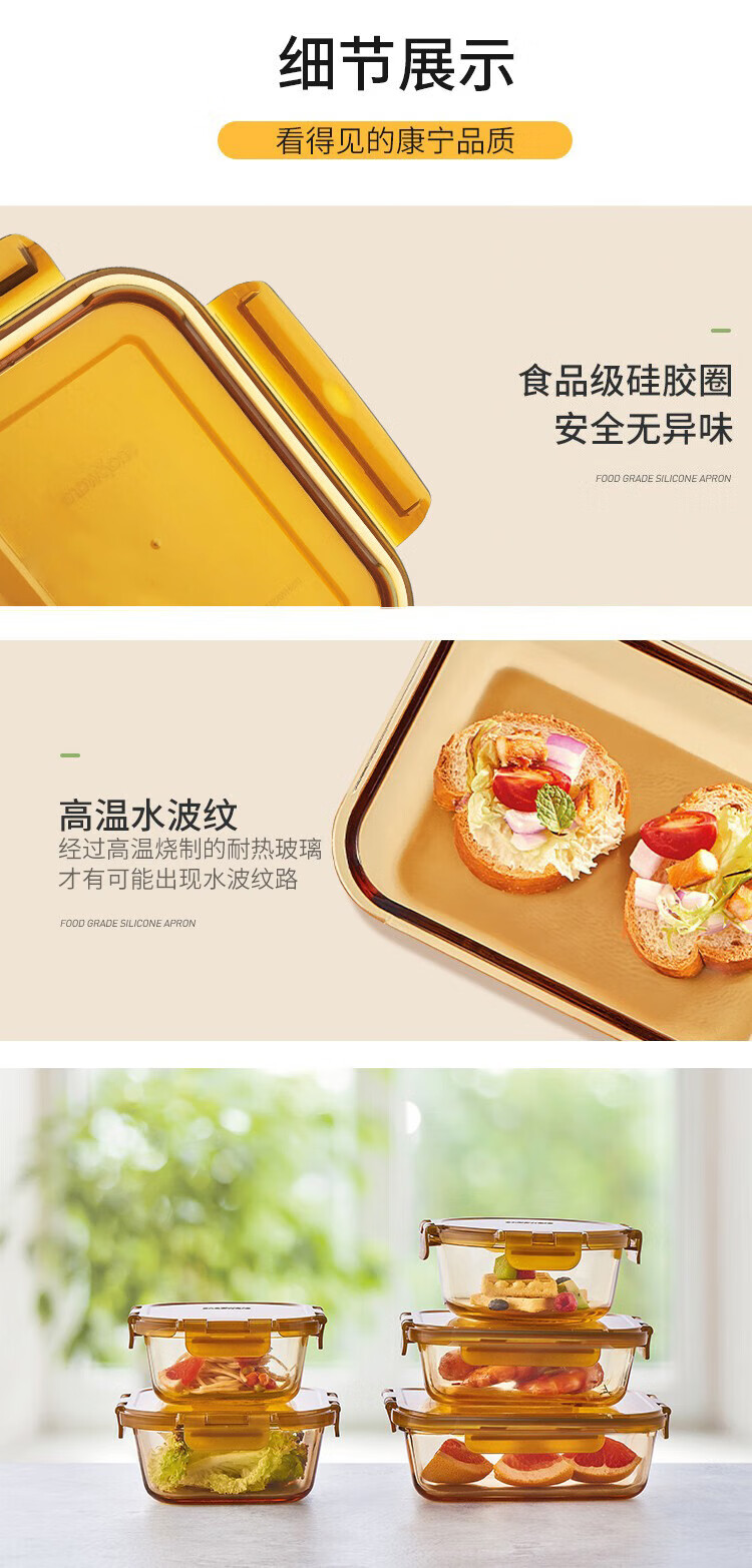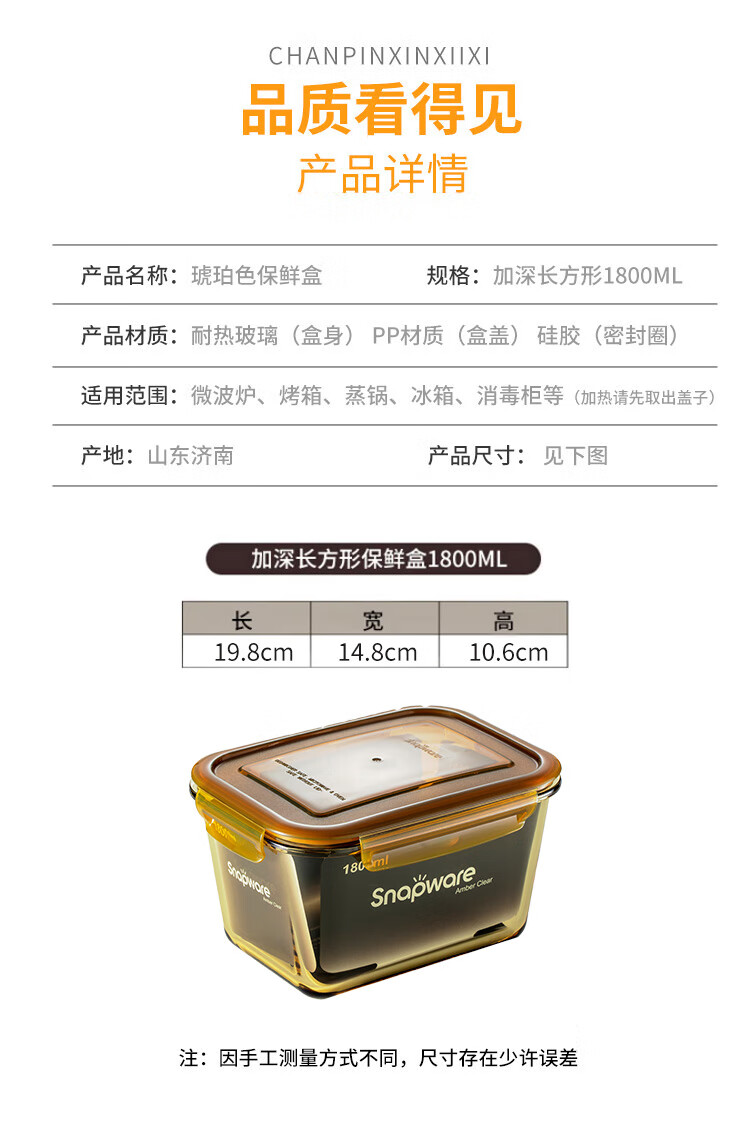 Corning tableware 1800ml large capacity glass lunch box heat-resistant glass crisper lunch box sealed box storage tank 1800ml crisper box