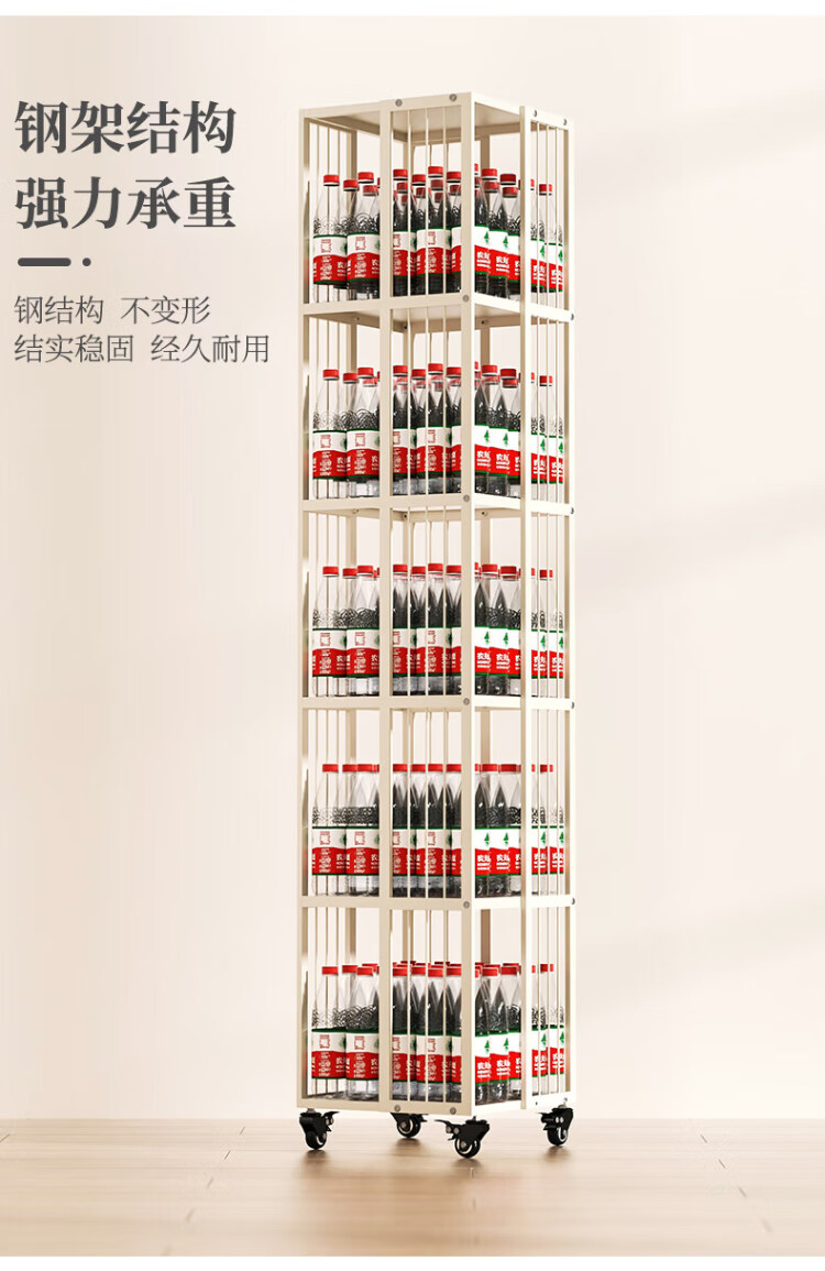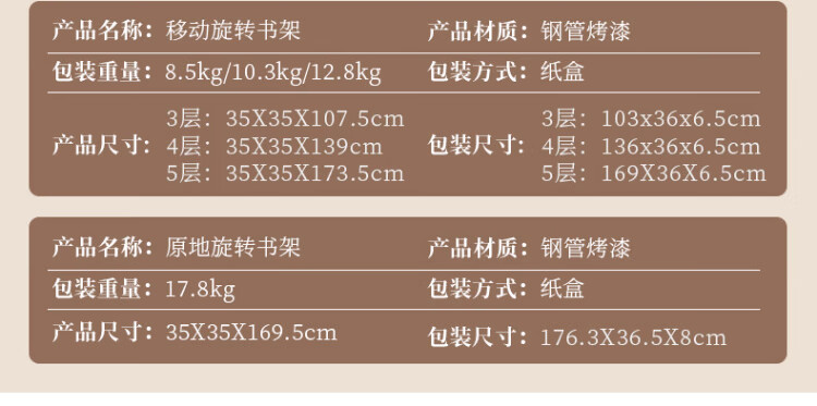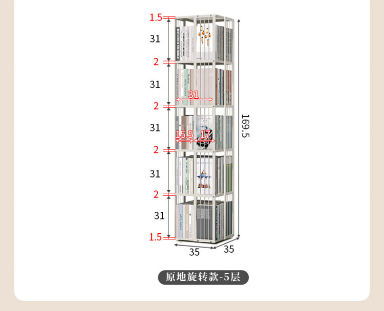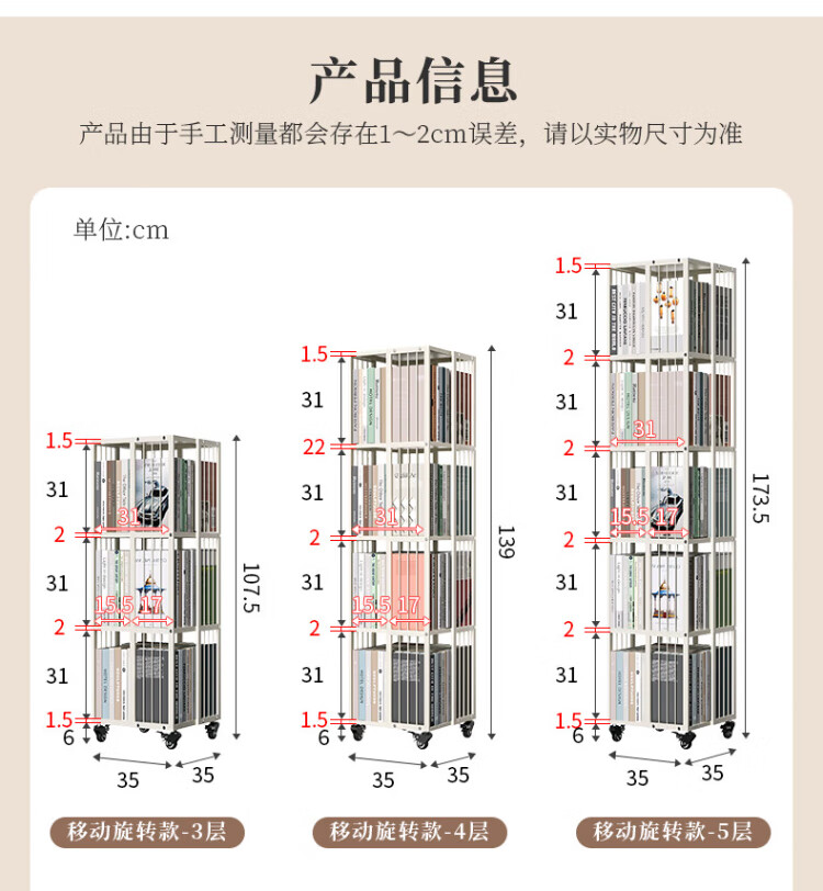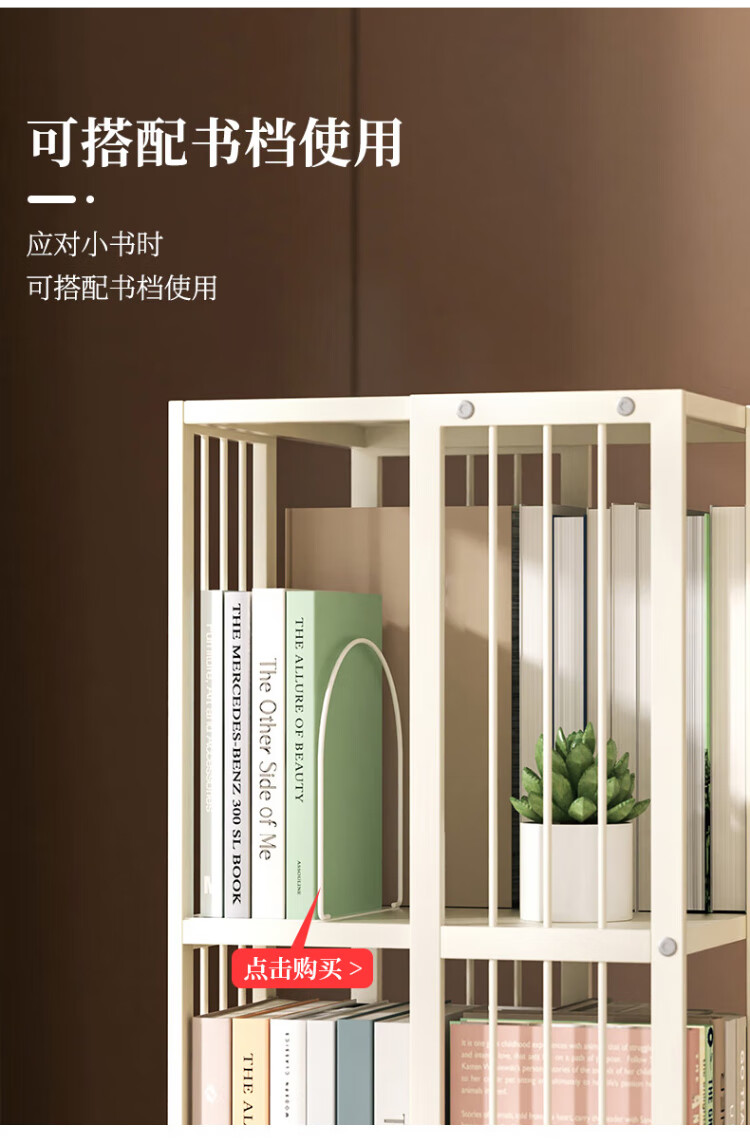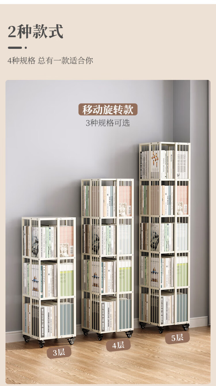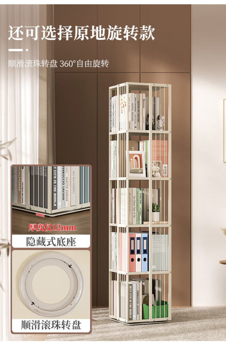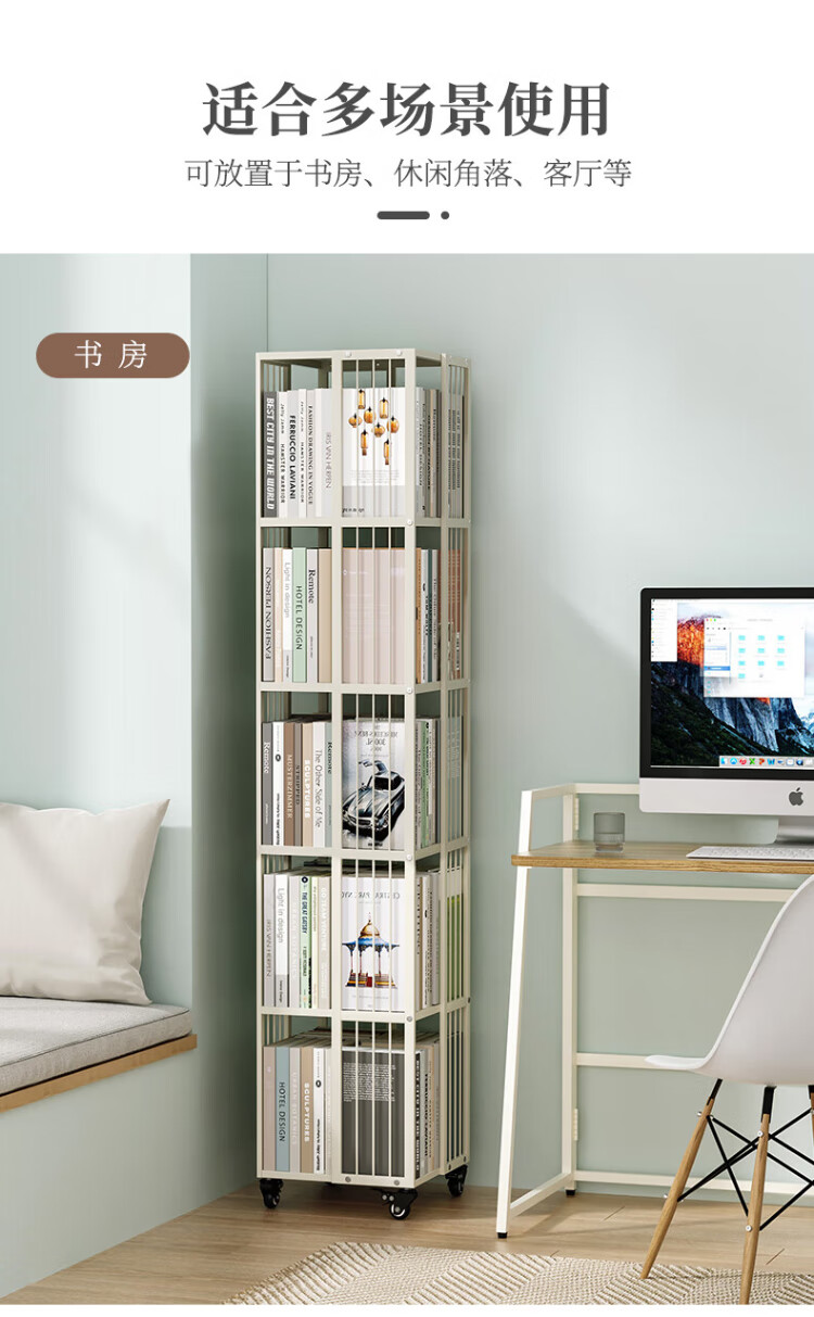 SOFS 360 degree rotating bookshelf floor-standing simple student storage rack bedroom bedside movable steel wrought iron small bookcase mobile rotating model metal bookshelf 5 layers white