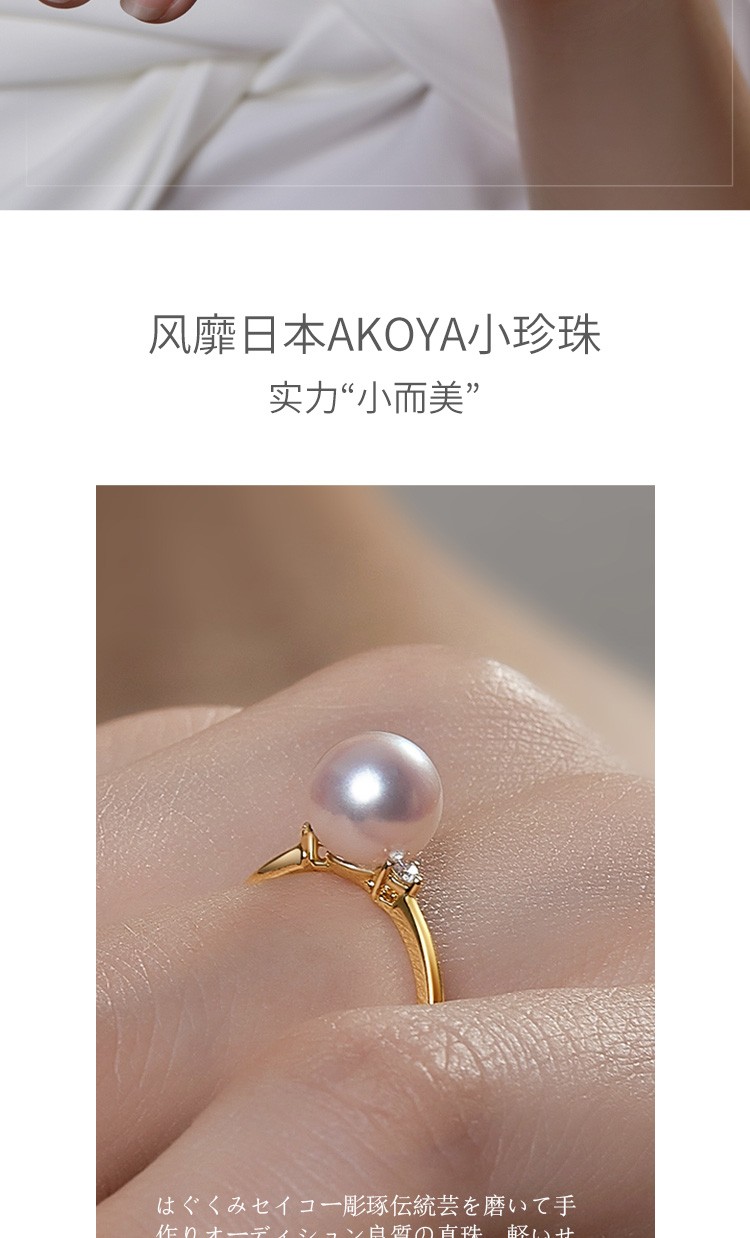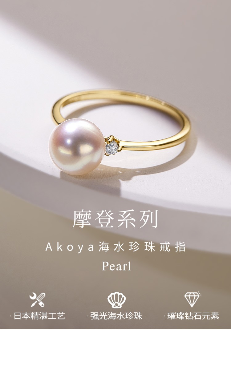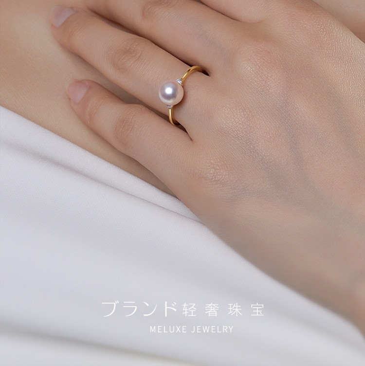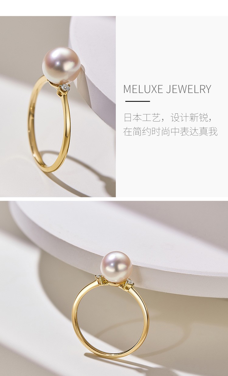 Meluxe Mina Pearl Ring Women's Akoya Seawater Pearl Ring 18K Gold with Diamonds Birthday Gift for Wife Akoya 7-7.5mm Diamonds Total 4 Points