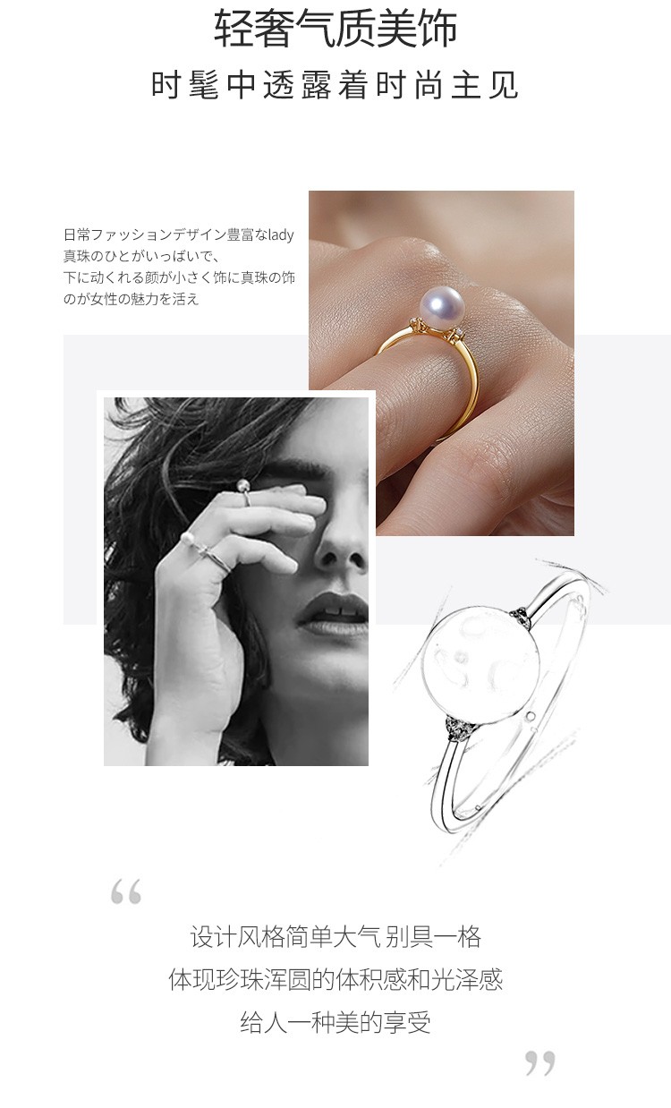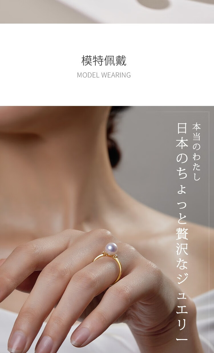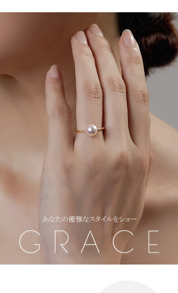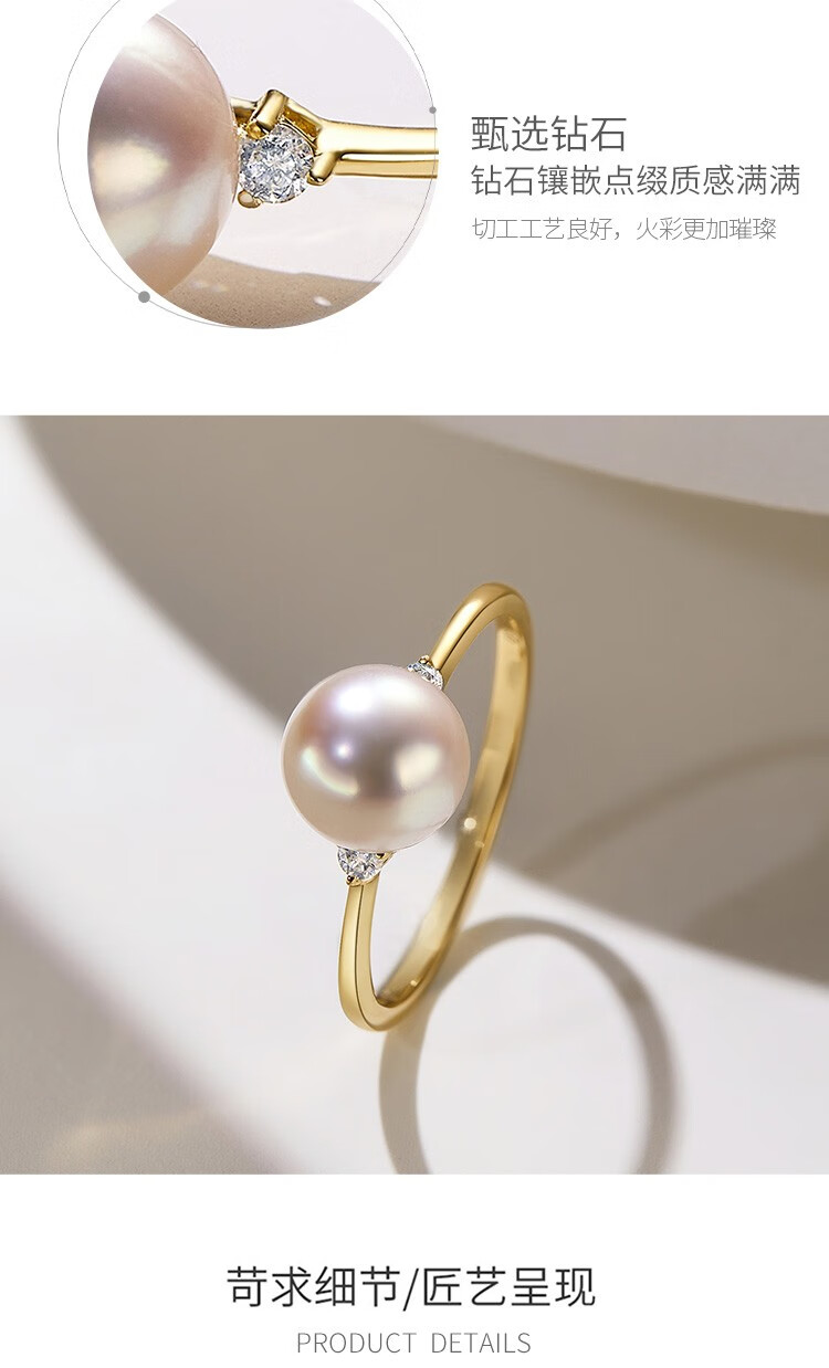 Meluxe Mina Pearl Ring Women's Akoya Seawater Pearl Ring 18K Gold with Diamonds Birthday Gift for Wife Akoya 7-7.5mm Diamonds Total 4 Points