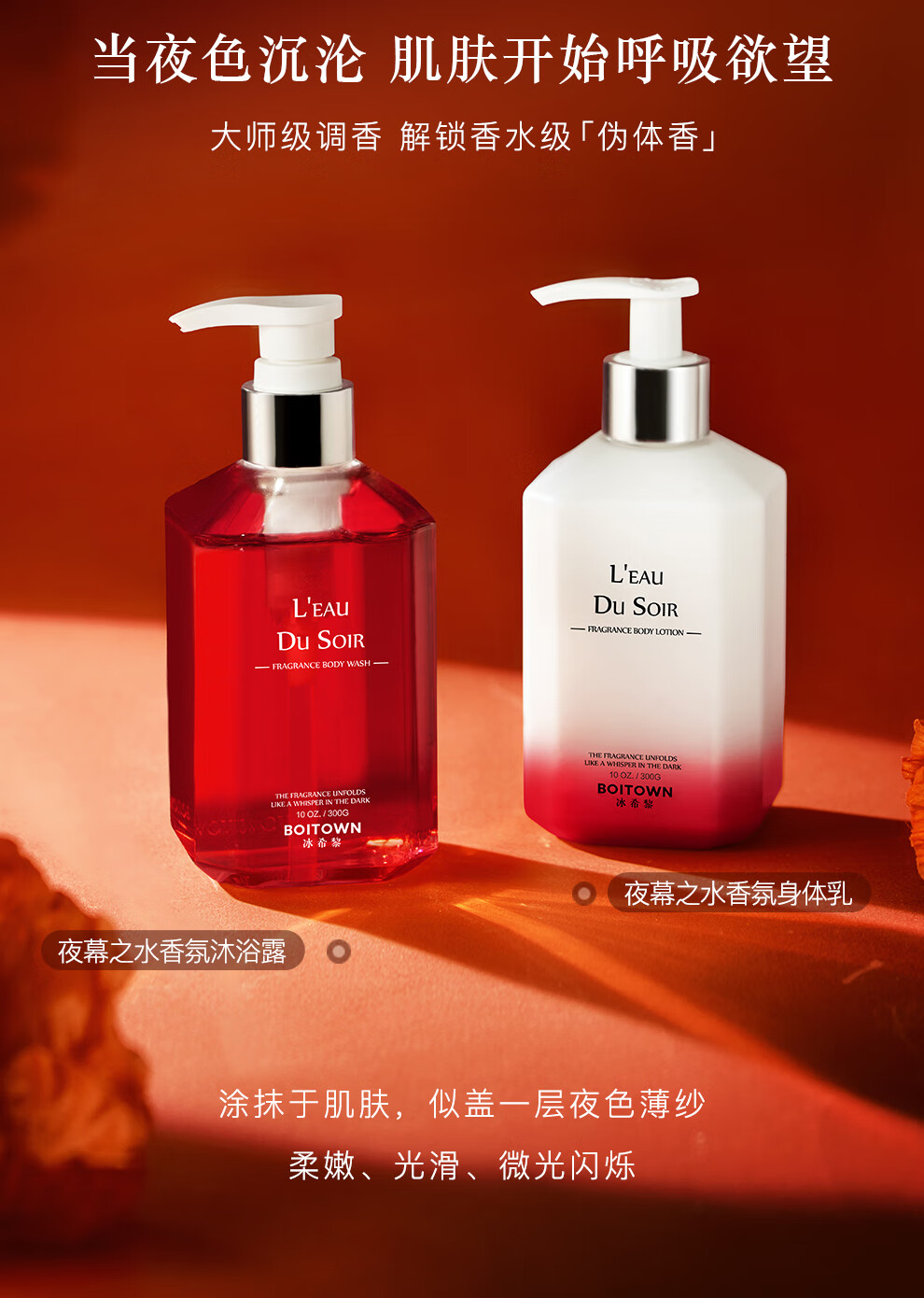 Boitown Shower Gel, Body Milk Fragrance, Night Water Moisturizing Lotion, Fragrance Body Care Set, Care Set 300g+300g