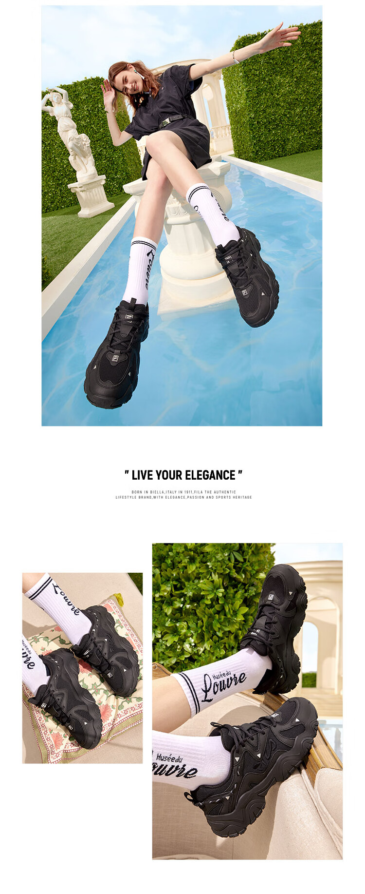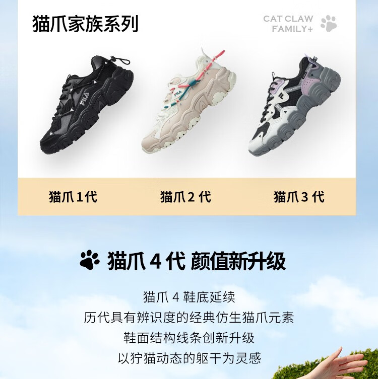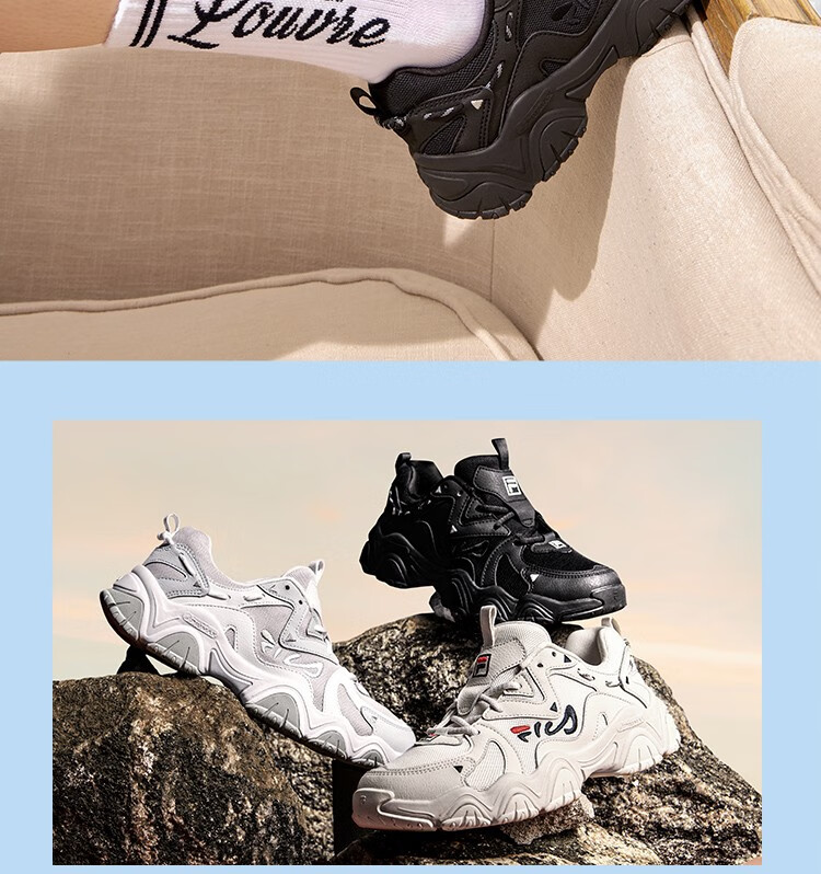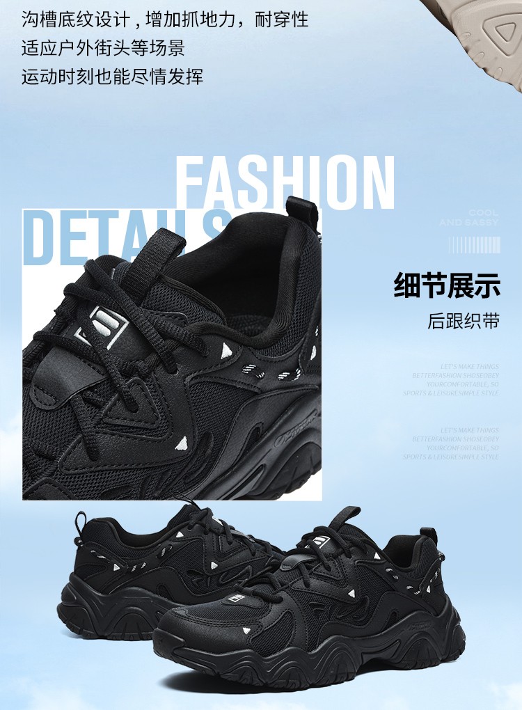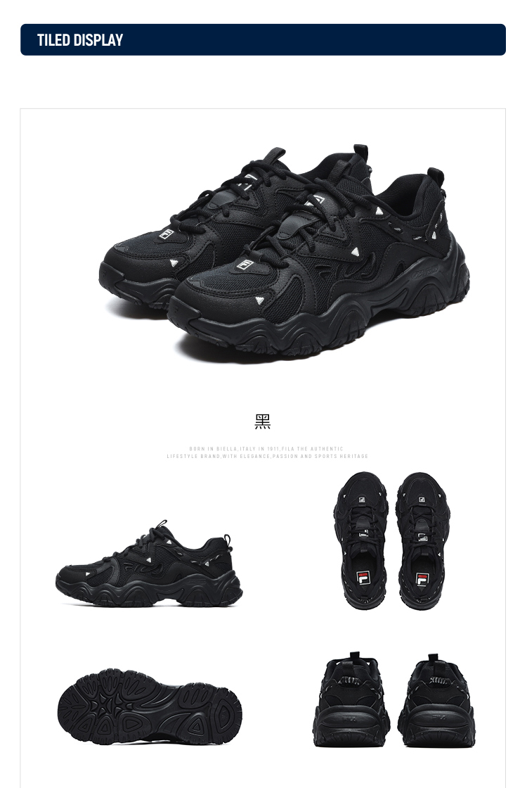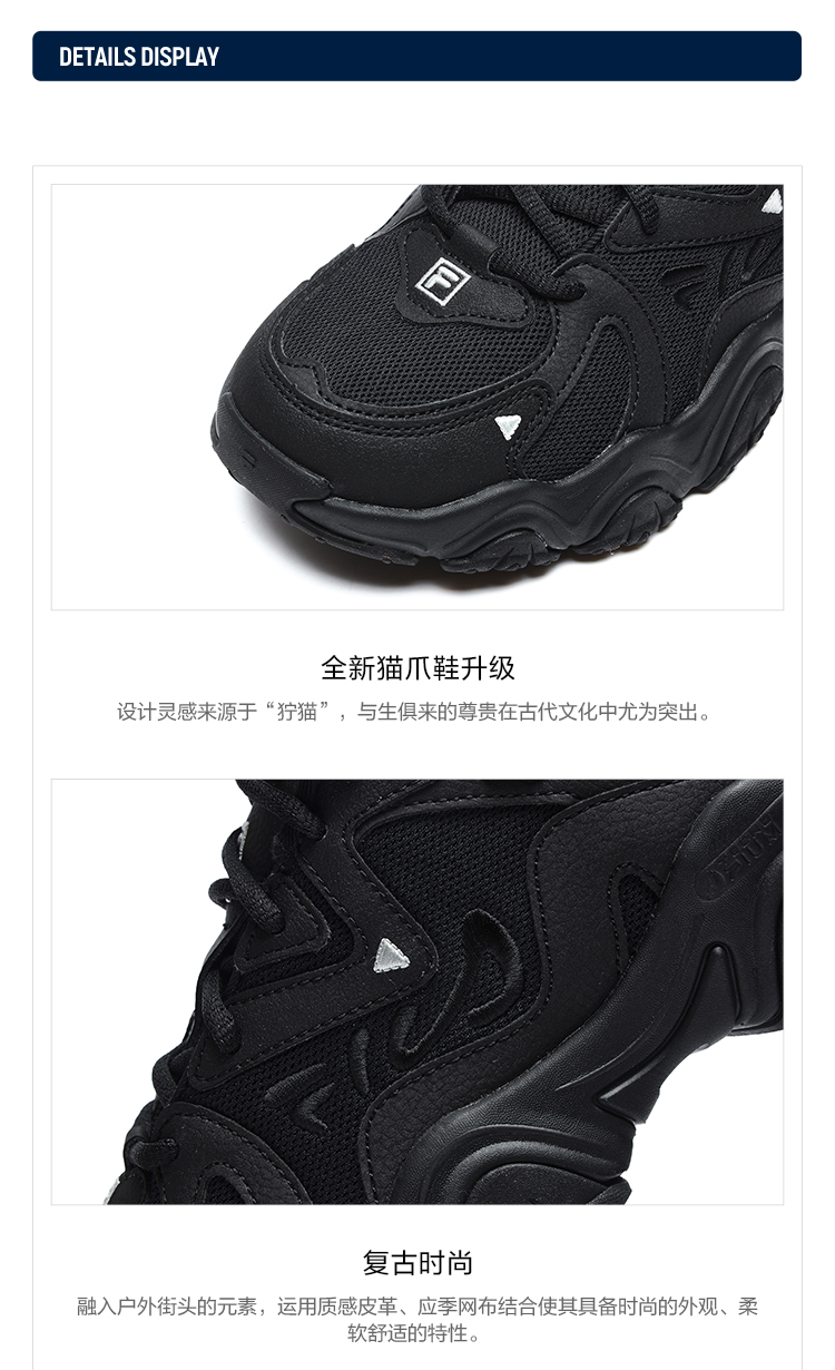 FILA Cat Claw Shoes 4th Generation Women's Shoes Dad Shoes Couples Sports Shoes Retro Fashion Casual Shoes Mesh Breathable Women's Black-BK 39