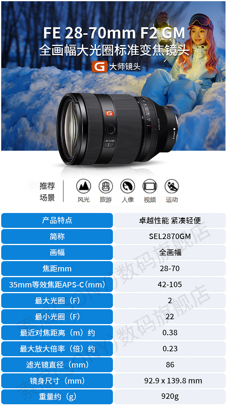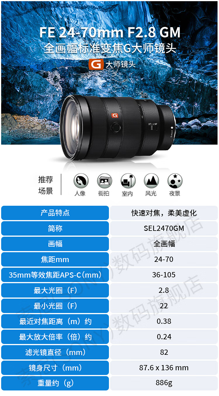 Sony (SONY) full-frame camera large three-element zoom lens standard zoom FE24-70mmF2.8 GM second generation official standard