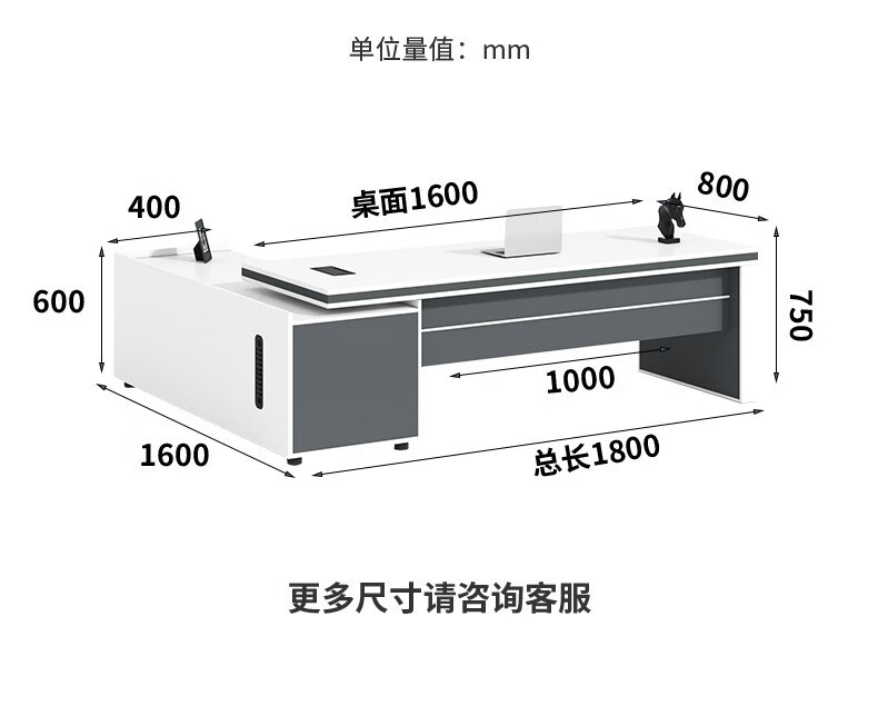 Tiju President Boss Desk Simple Modern Manager Supervisor Desk and Chair Combination Executive Desk Office Furniture Computer Desk and Chair 1.6 Meter Boss Desk + Side Cabinet Right Side Cabinet