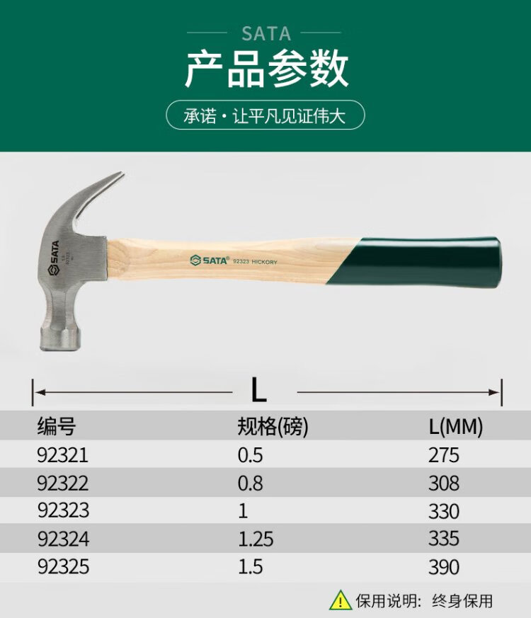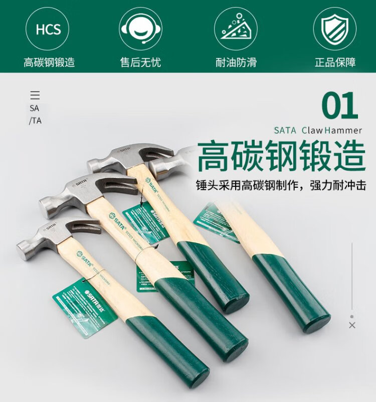 SATA decoration wooden handle claw hammer nail remover hammer 92321 wooden handle claw hammer 0.8 pounds 92322