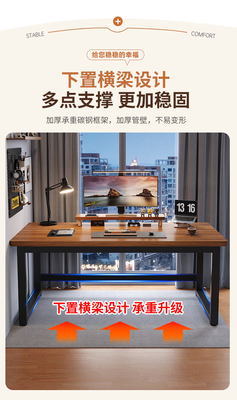 Xinmeikai computer desk desktop home simple desk office desk simple modern workbench rental bedroom study desk single table 1.6cm thick desktop black frame + dark walnut length 120cm*width 60cm*height 74cm