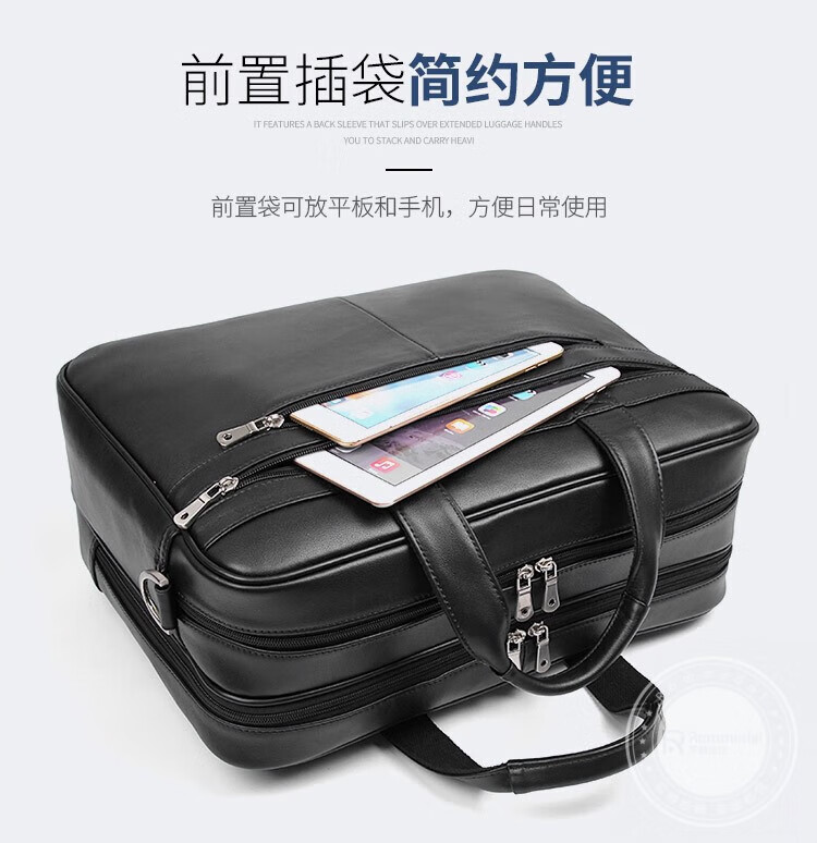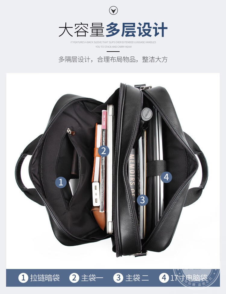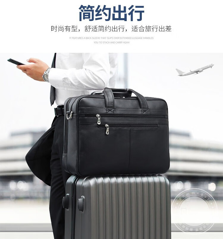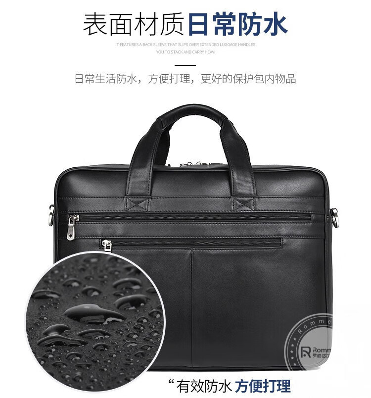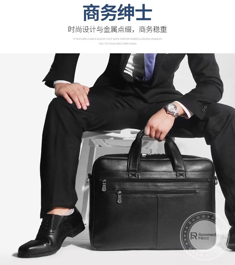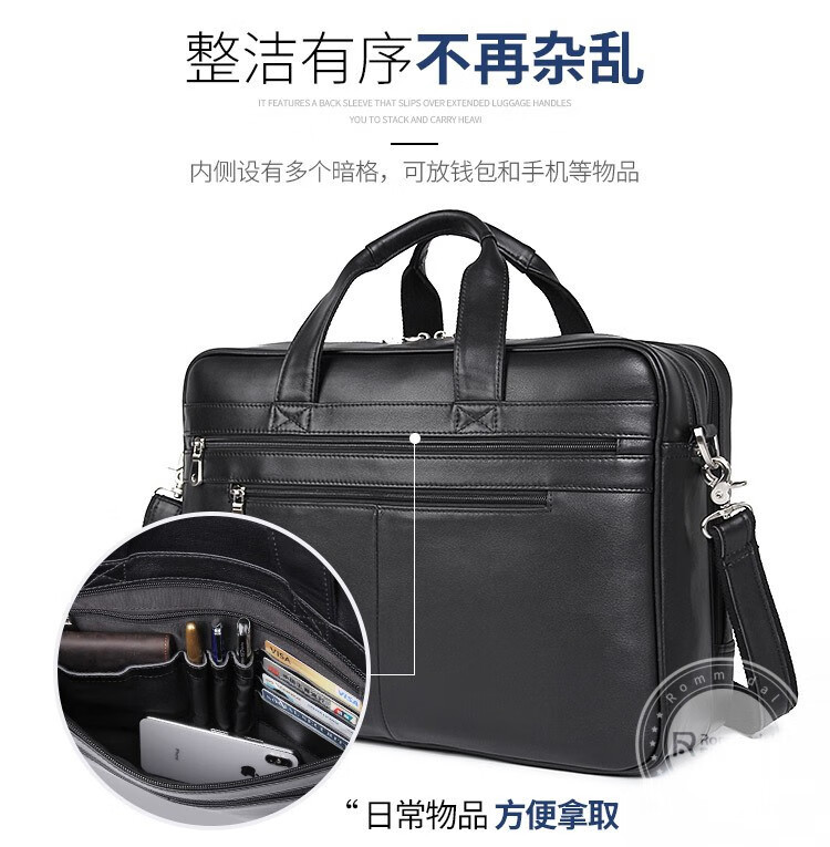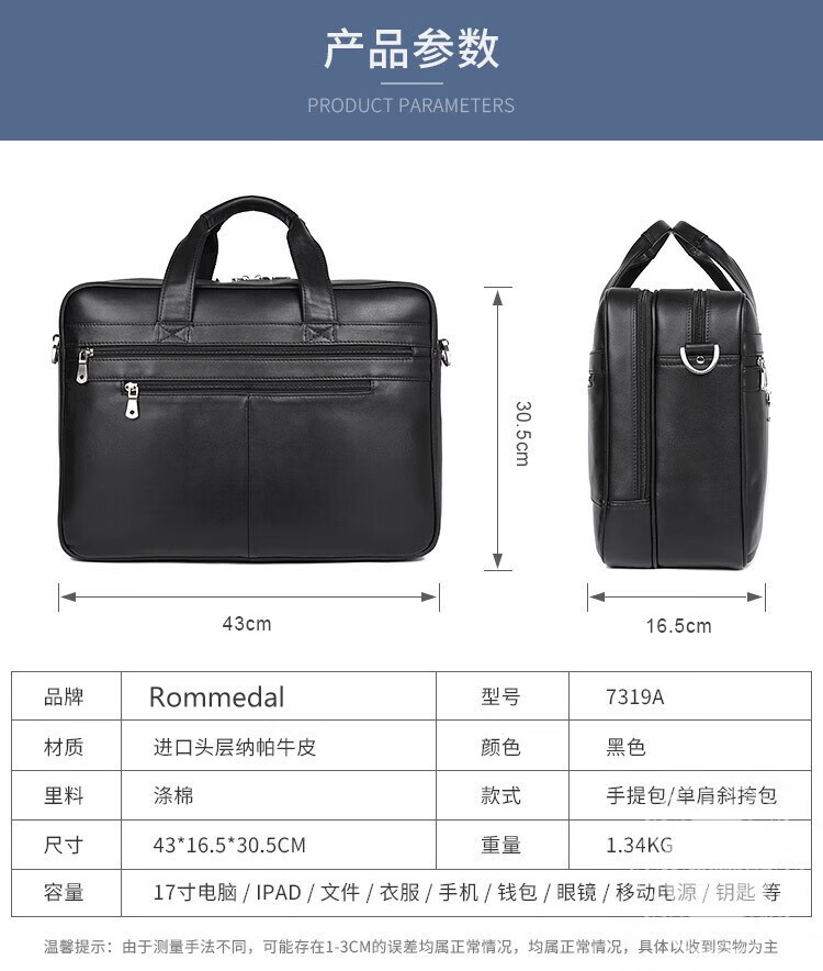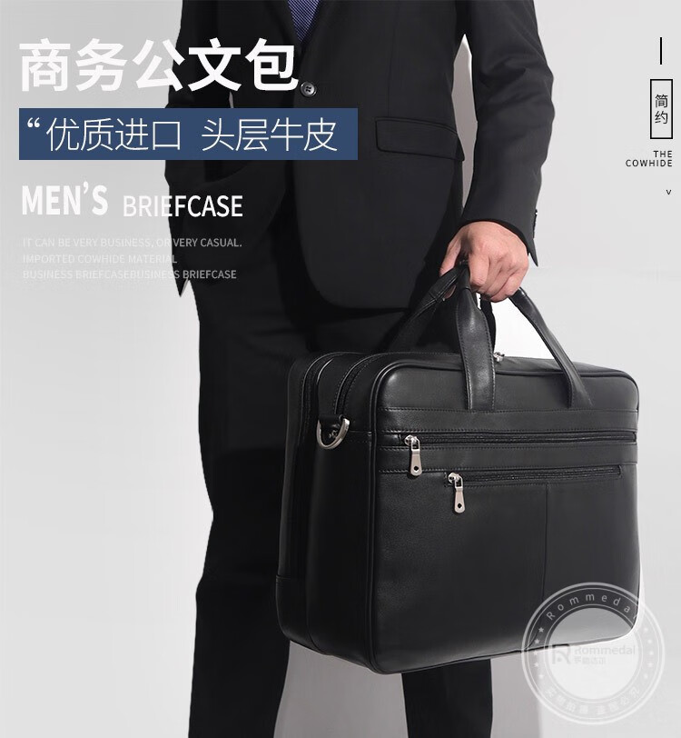 Rommedal business briefcase men's cowhide multi-layer large-capacity cross-body bag computer bag file bag men's portable shoulder bag black 17 inches