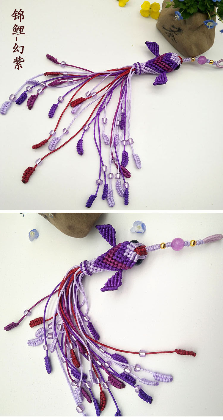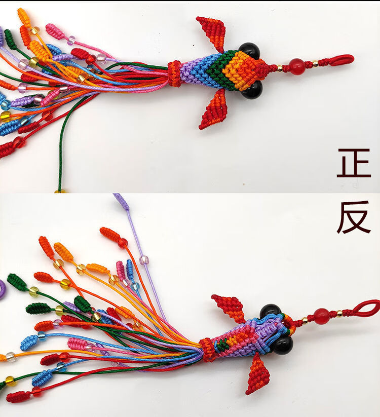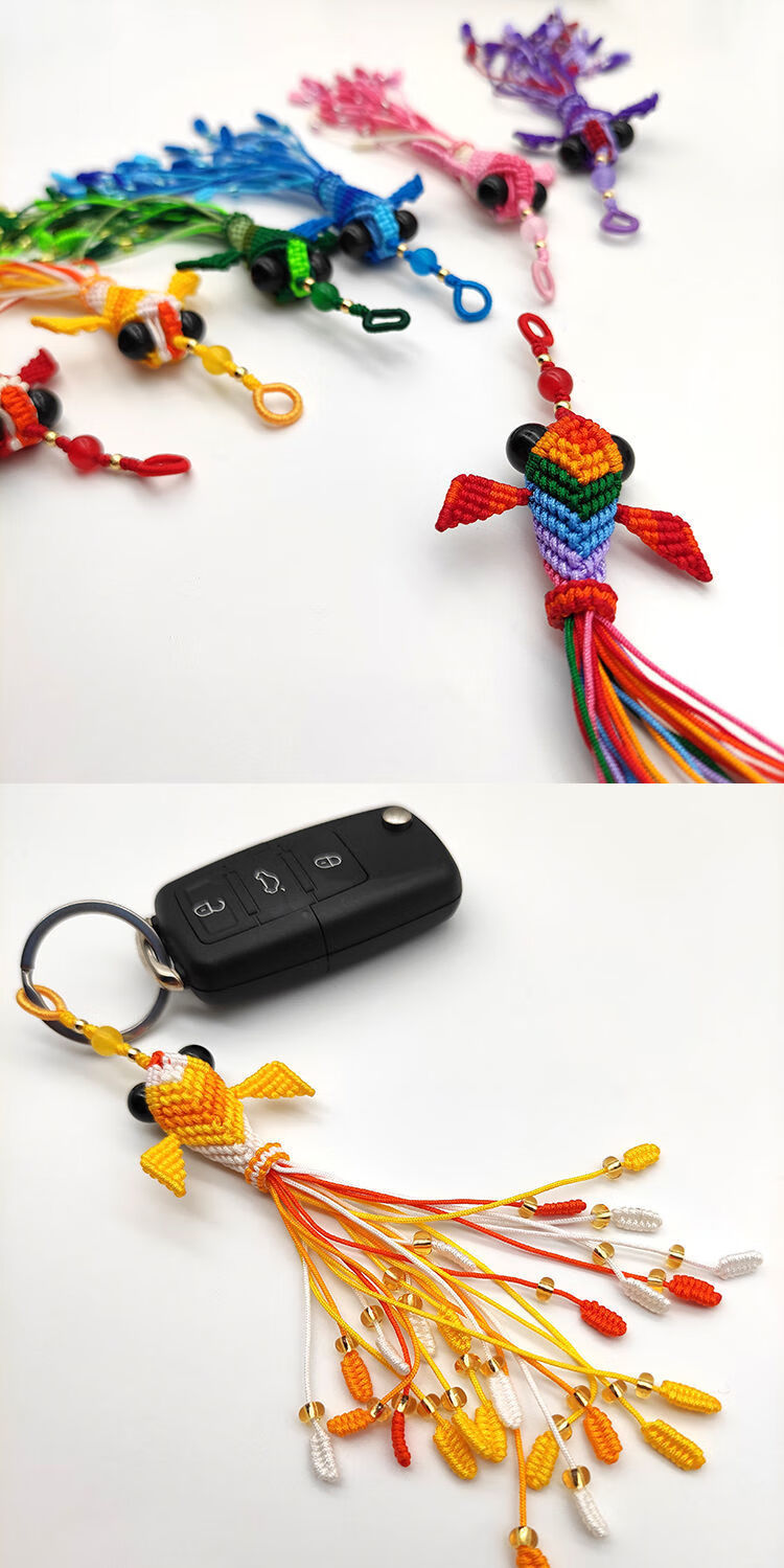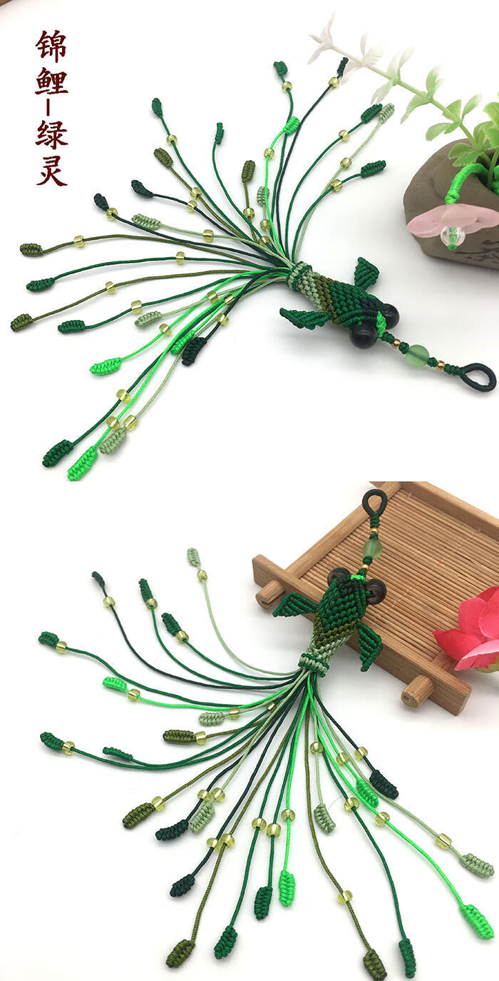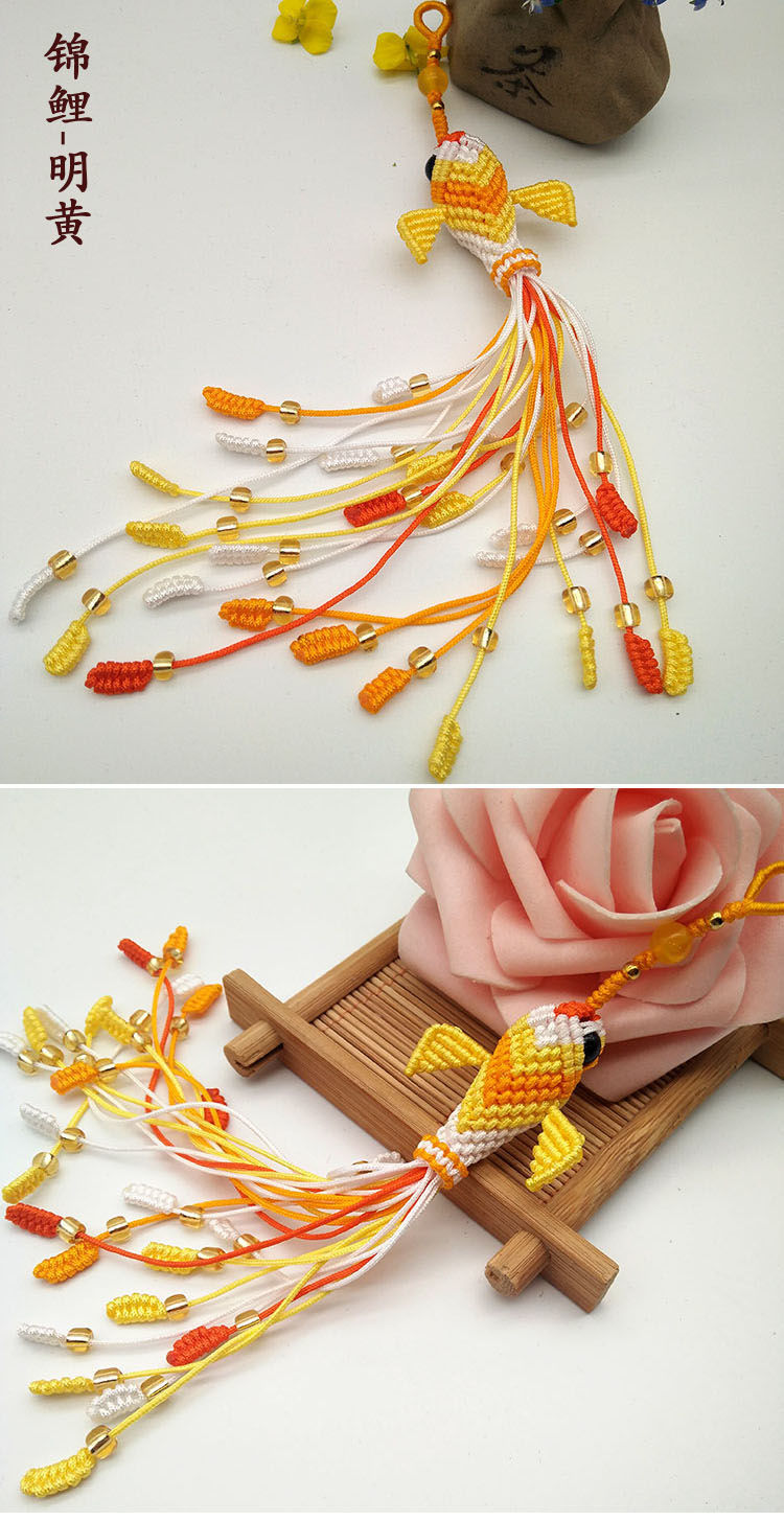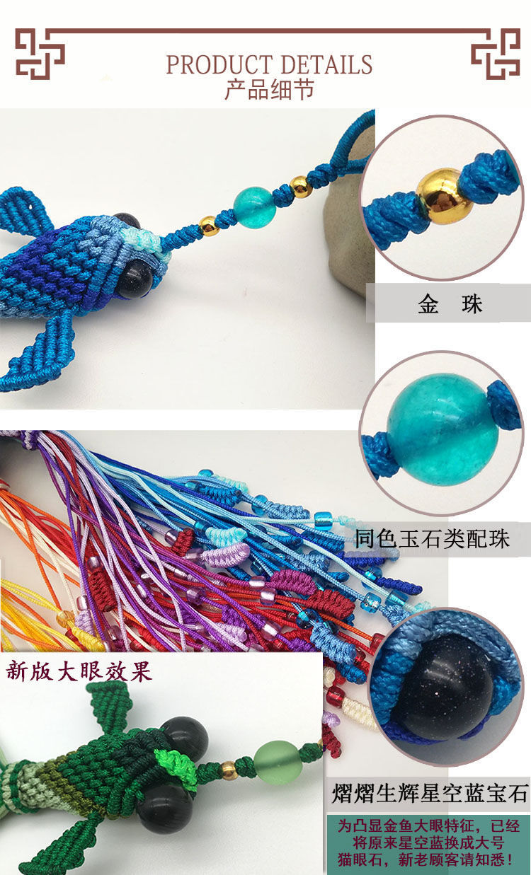 Lingchuan Chinese knot koi braided rope diy material mobile phone bag keychain pendant jewelry small goldfish handmade colorful style (material package)