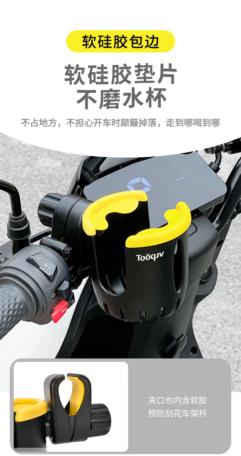 Tooquv electric car water cup holder bicycle water bottle holder battery car coffee milk tea holder mobile phone holder universal bicycle cup holder upgraded cup holder black and yellow - strong and non-slip
