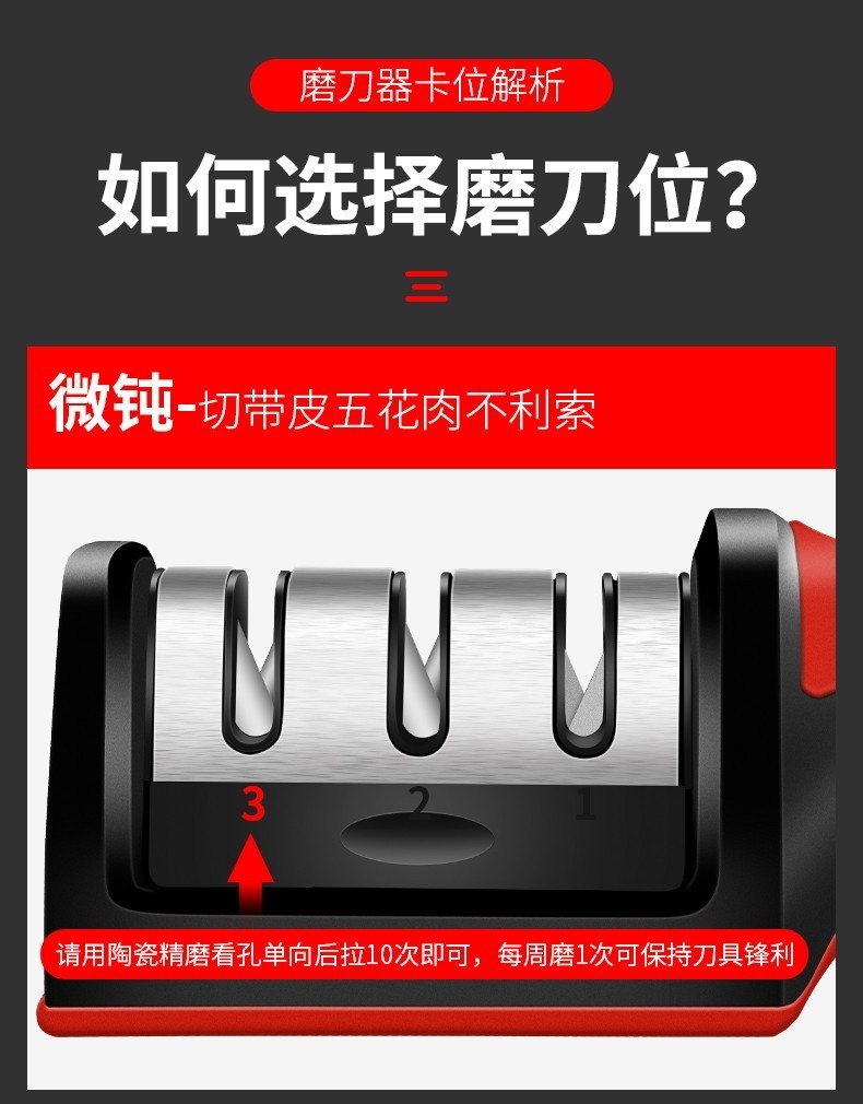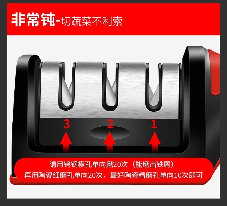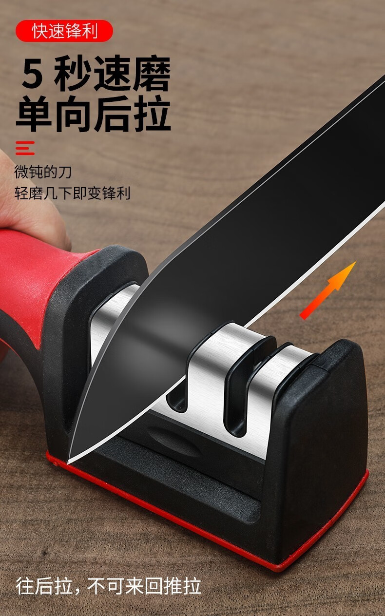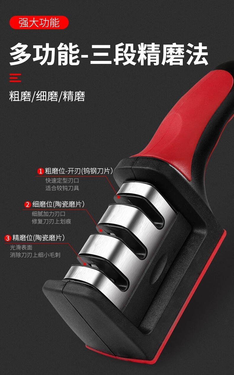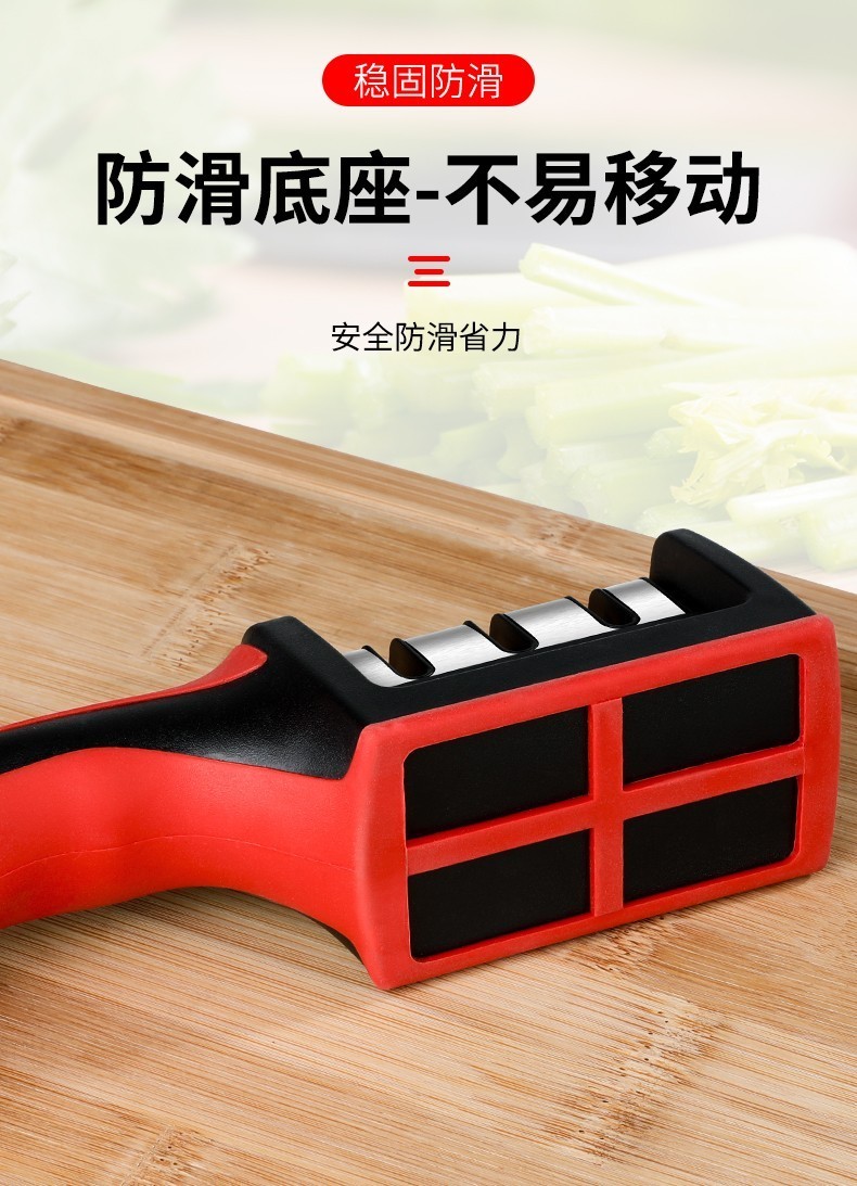 Yingyao three-port knife sharpener kitchen whetstone sharpening tool household multi-functional fast multi-purpose kitchen knife sharpener scissors three-port knife sharpener black and red