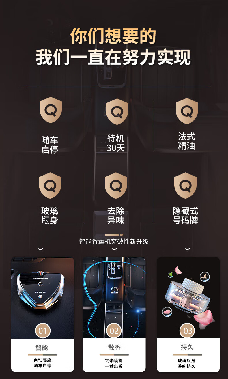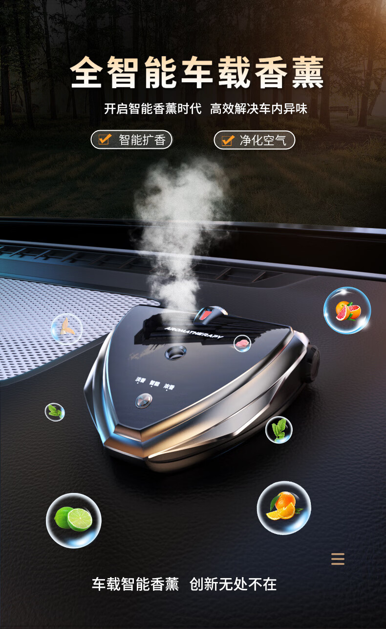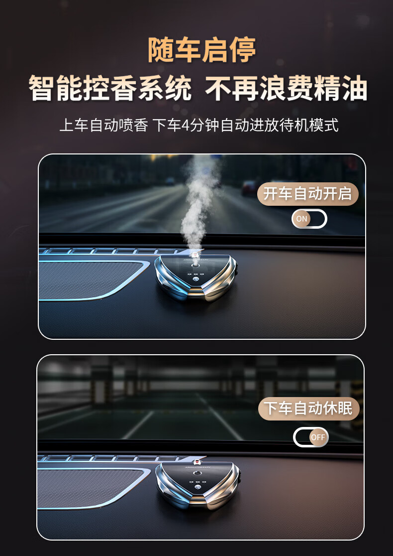 CHEZHENTAN Car Aromatherapy Intelligent Electronic Spray Men's Special High-end Car Perfume Ornament Car Aromatherapy Machine Long-lasting Fragrance Upgraded Smart Car Aromatherapy Machine + 2 Bottles of Essential Oils