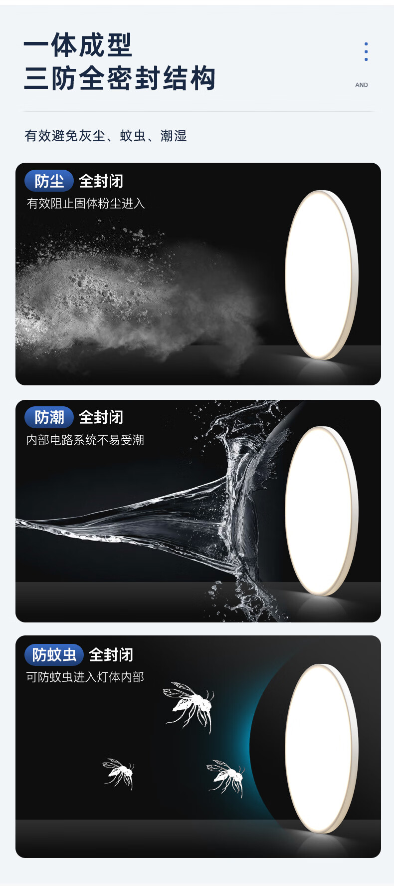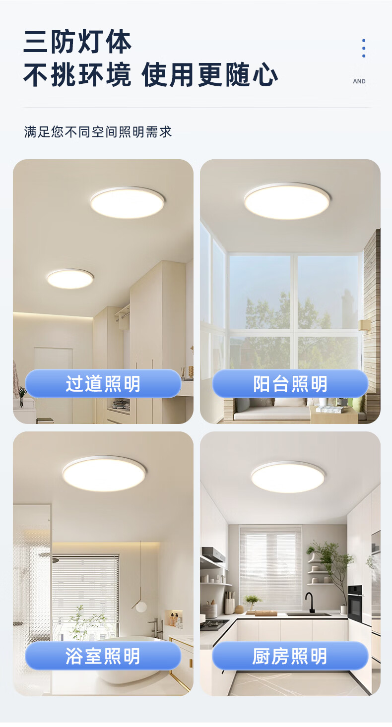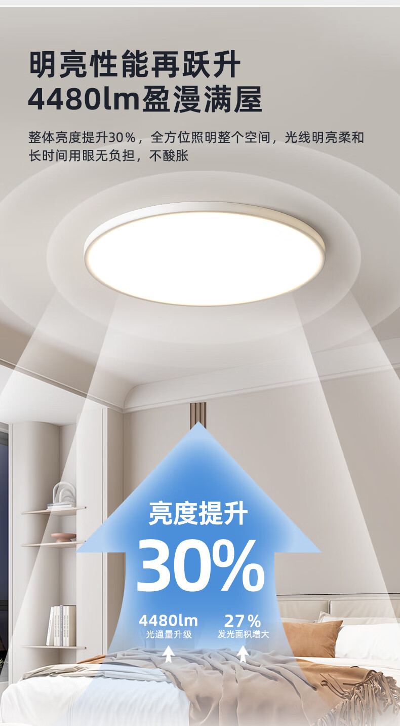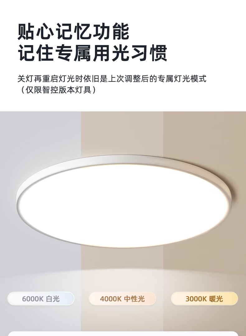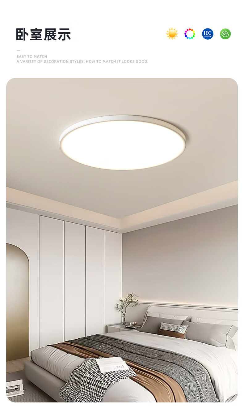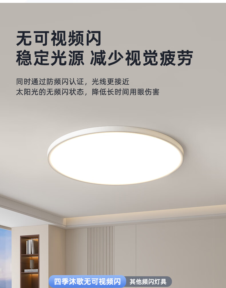 Four Seasons Muge (MICOE) Lighting Bedroom Lamp LED Ceiling Lamp Modern Simple Lamp Living Room Lighting Study Balcony Restaurant Lamp Thin 24W Recommended-Tri-Proof Lamp 38CM Three-tone Lighting Suitable for 12-16 Squares (Next Day Delivery)
