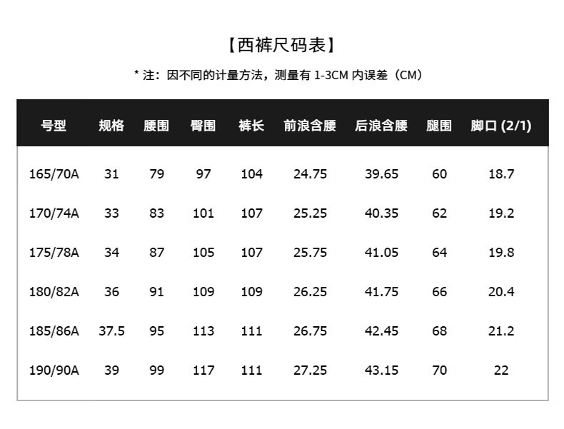 Outseam (cm) 99 cm 101.5 cm 104 cm 106.5 cm 109 cm