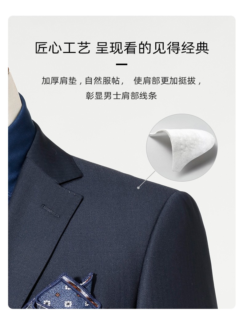 ROMON Men's Wool Suit 2025 Spring New Business Solid Color Professional Suit Groom's Suit Navy S