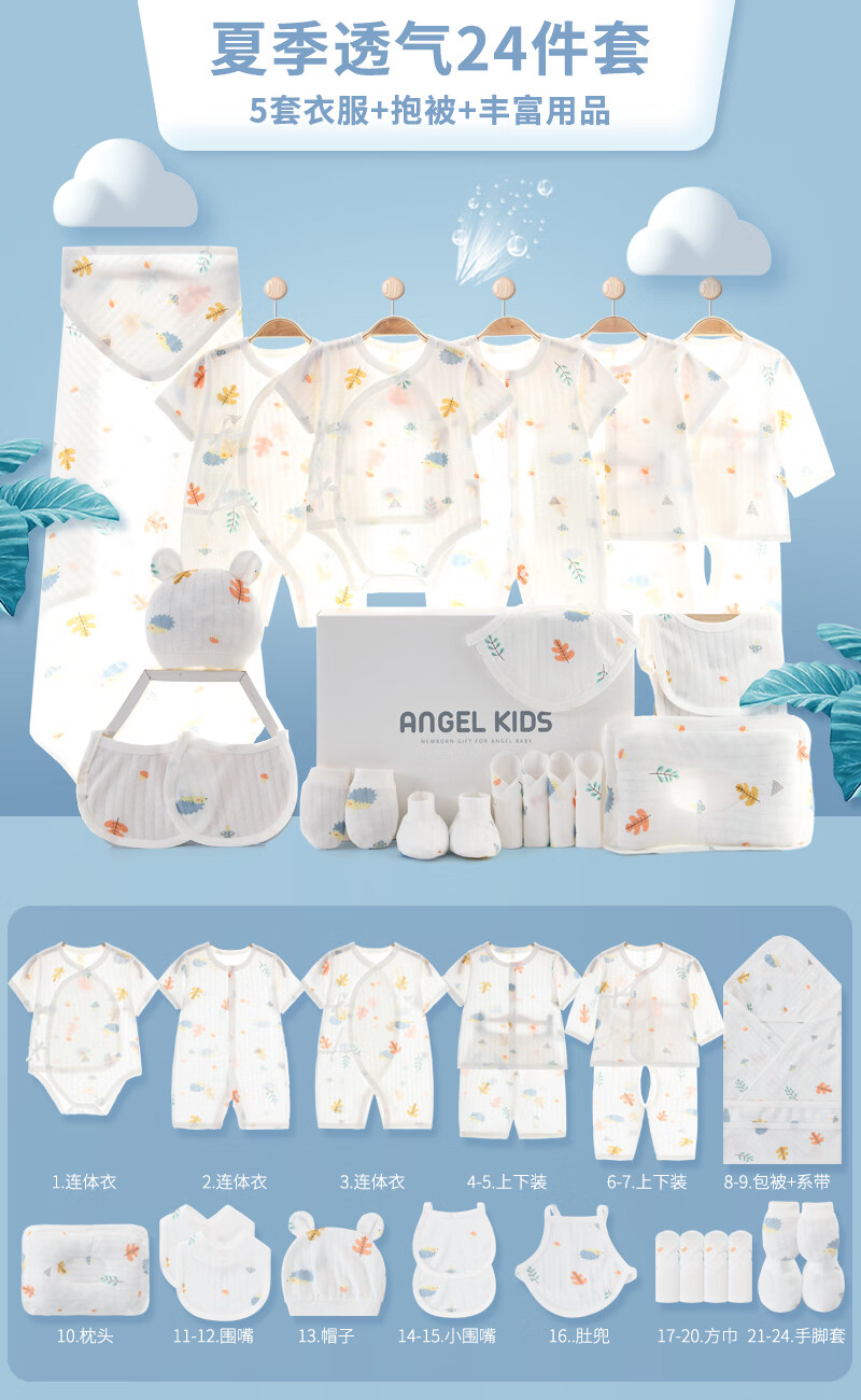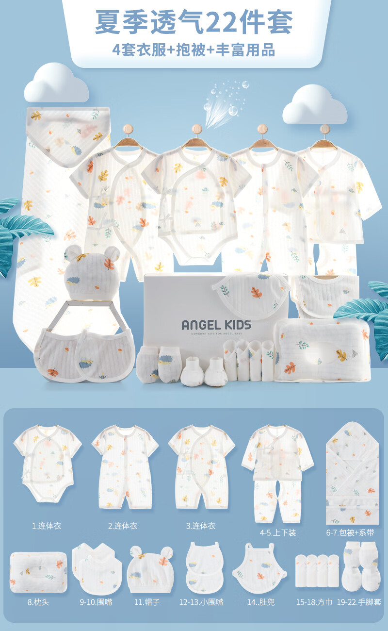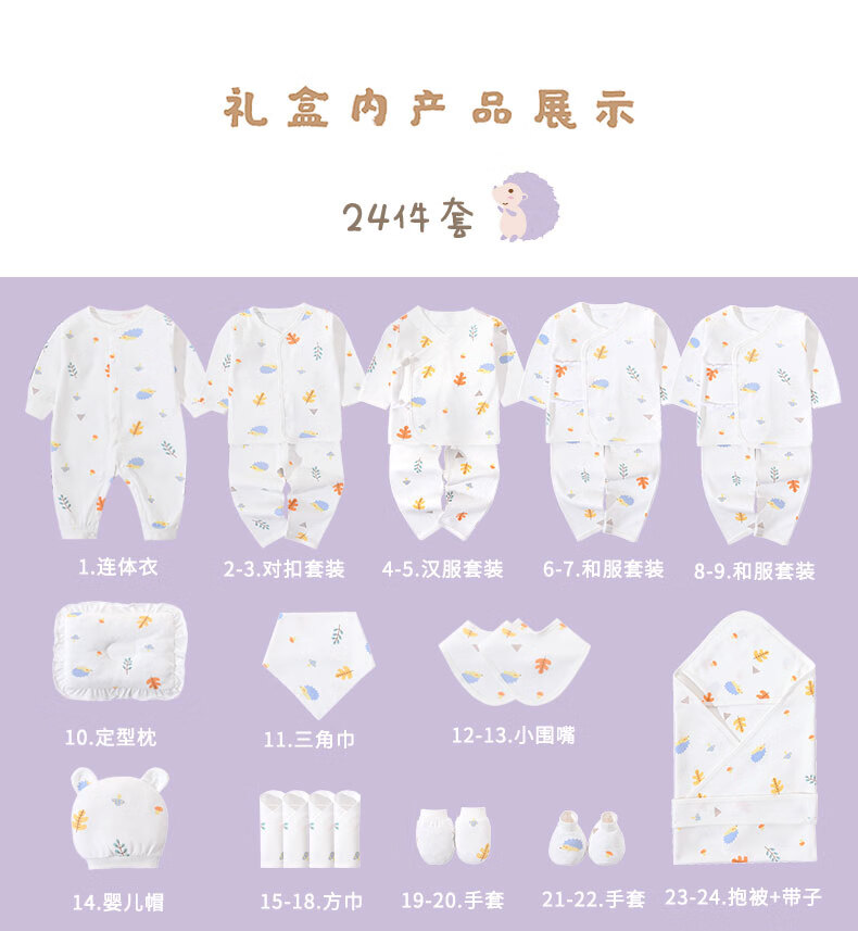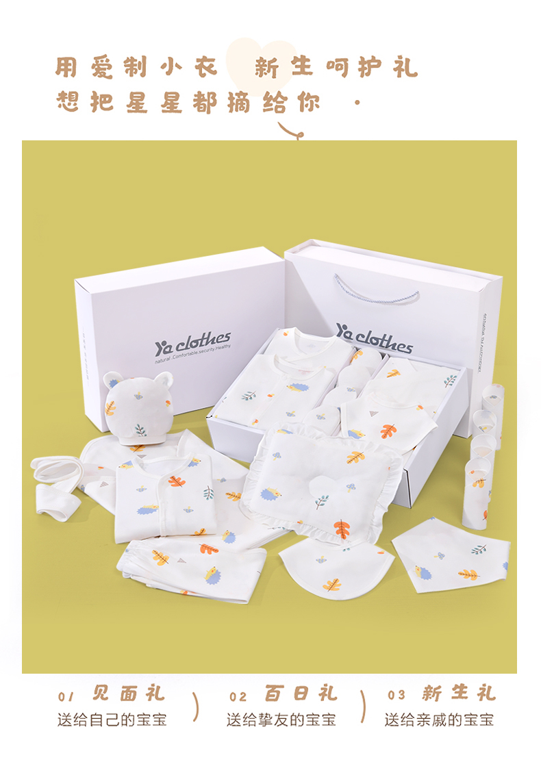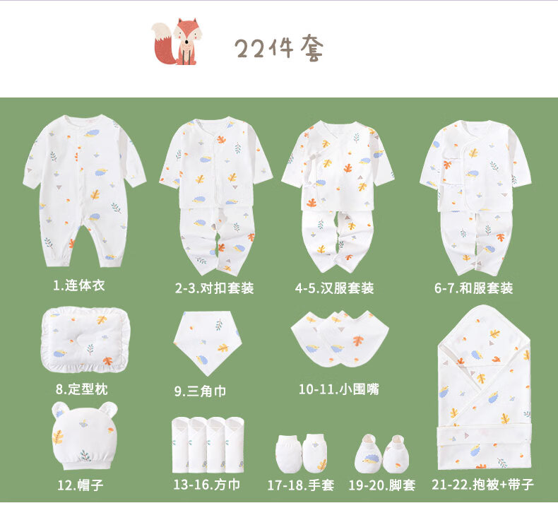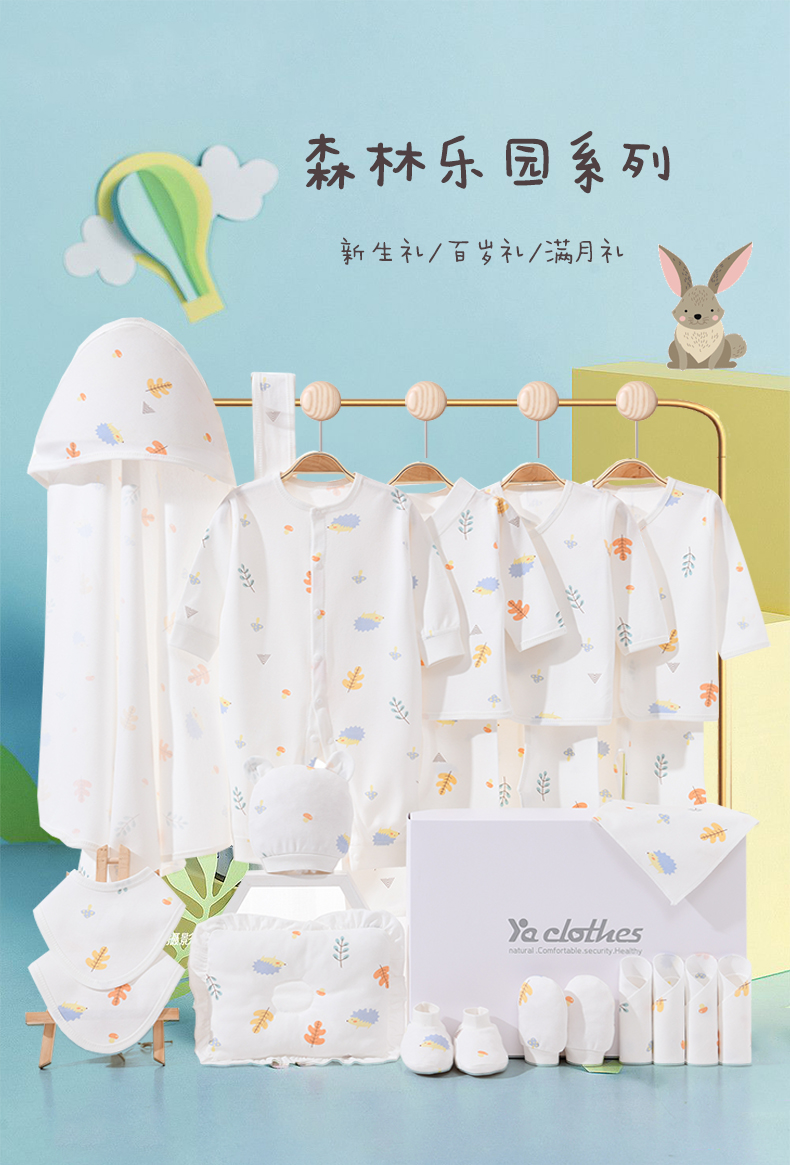 Pengyou Baby Clothes Pure Cotton Autumn and Winter Newborn Gift Box Maternity Bag Set Newborn Baby Full Moon Meeting Gift 22-piece Forest Paradise Four Seasons Gift Box 66cm (recommended for 0-6 months)