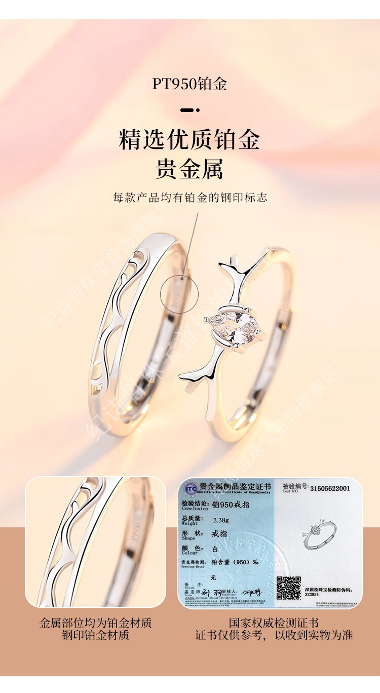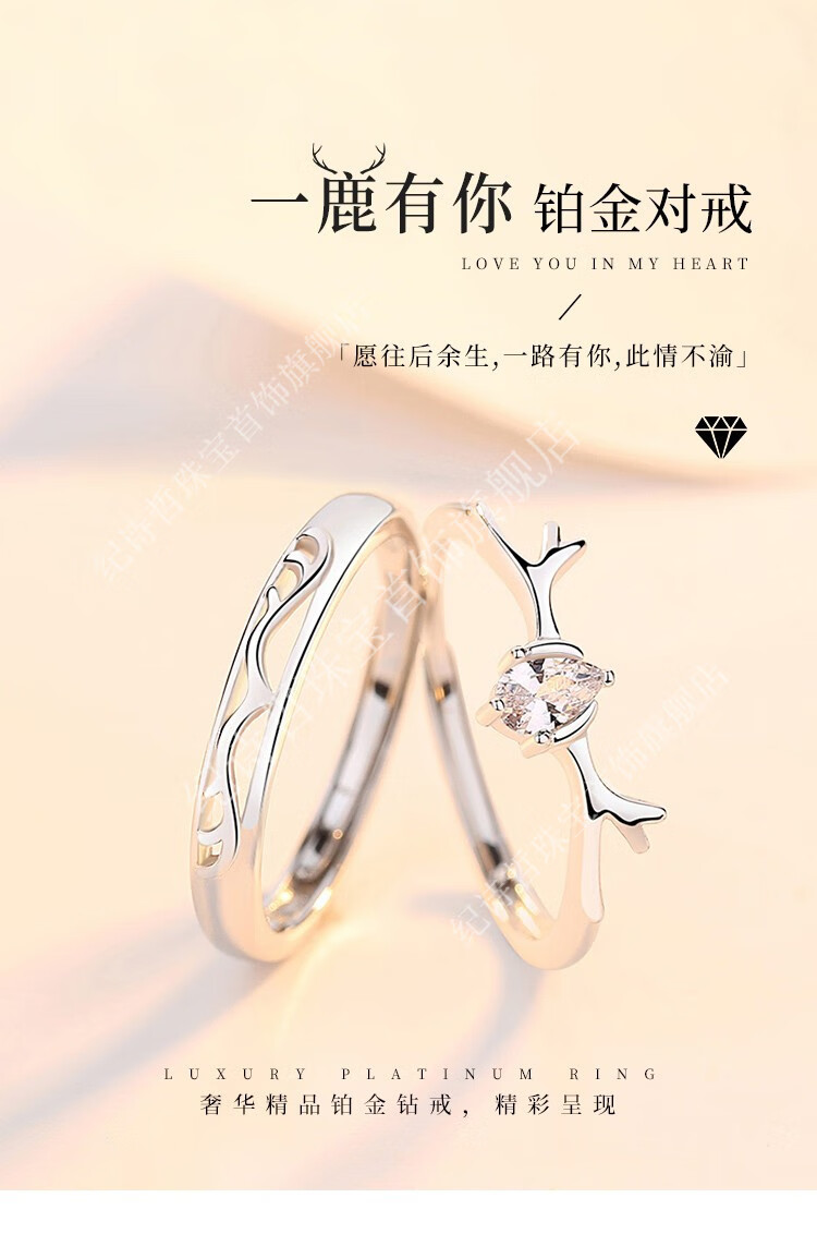 Ji Shizhe (GIEVSZHE) PT950 platinum ring, platinum, Yilulu You, a proposal, wedding couple, ring engraving, Valentine's Day gift, Yilulu You, a platinum pair of rings (the opening can be adjusted) (free engraving)