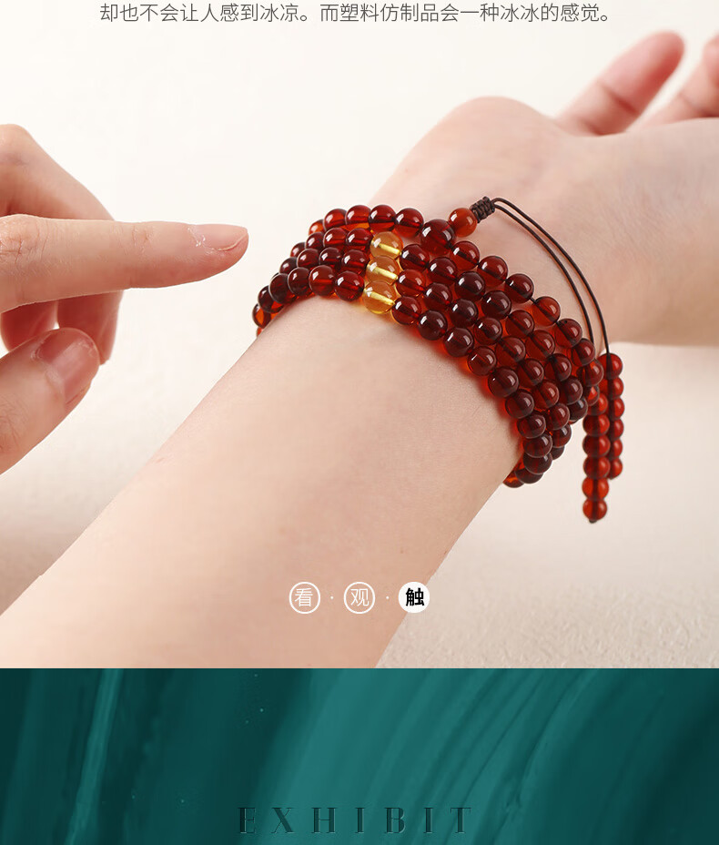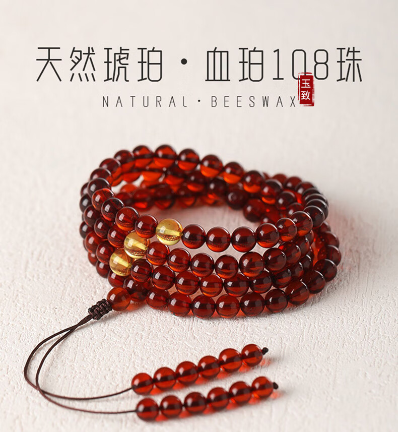 Yuzhi Natural Amber Blood Amber Bracelet for Men and Women 108 Buddha Beads Bracelet Necklace with Certificate 108 Beads Diameter Approximately 5-5.5mm