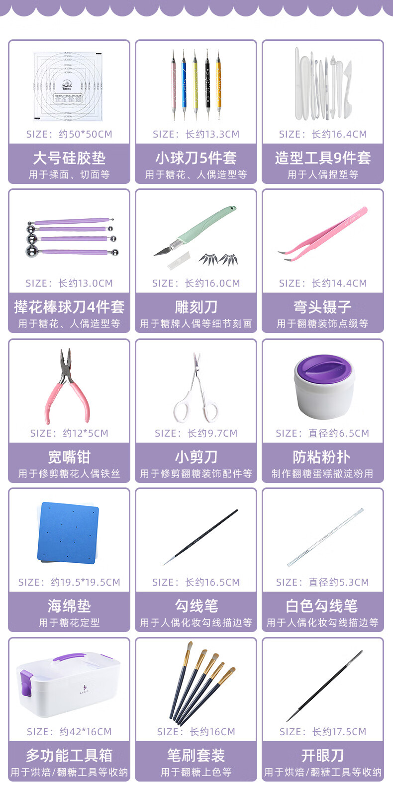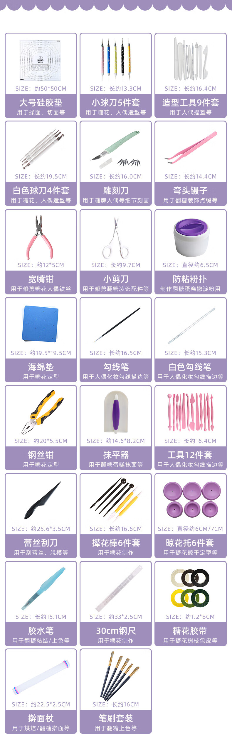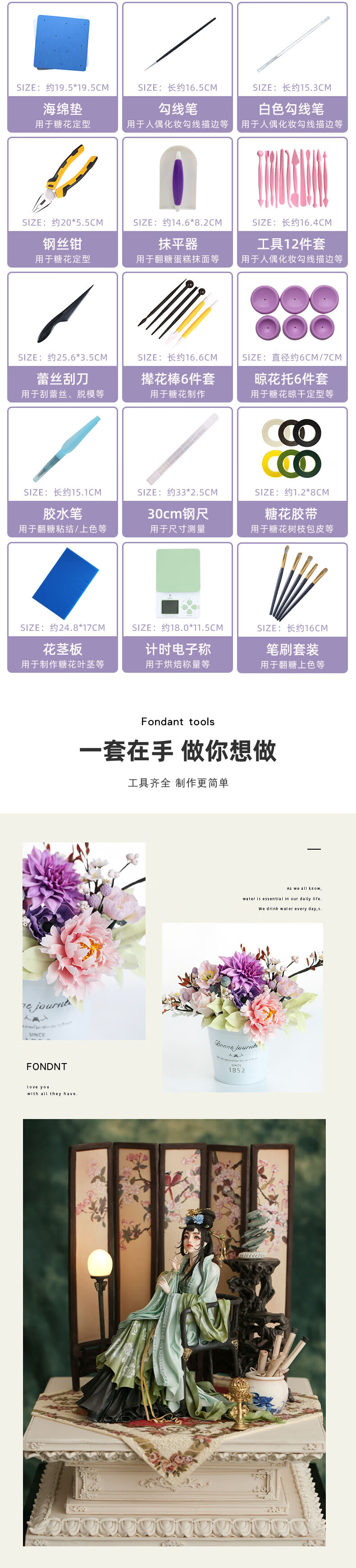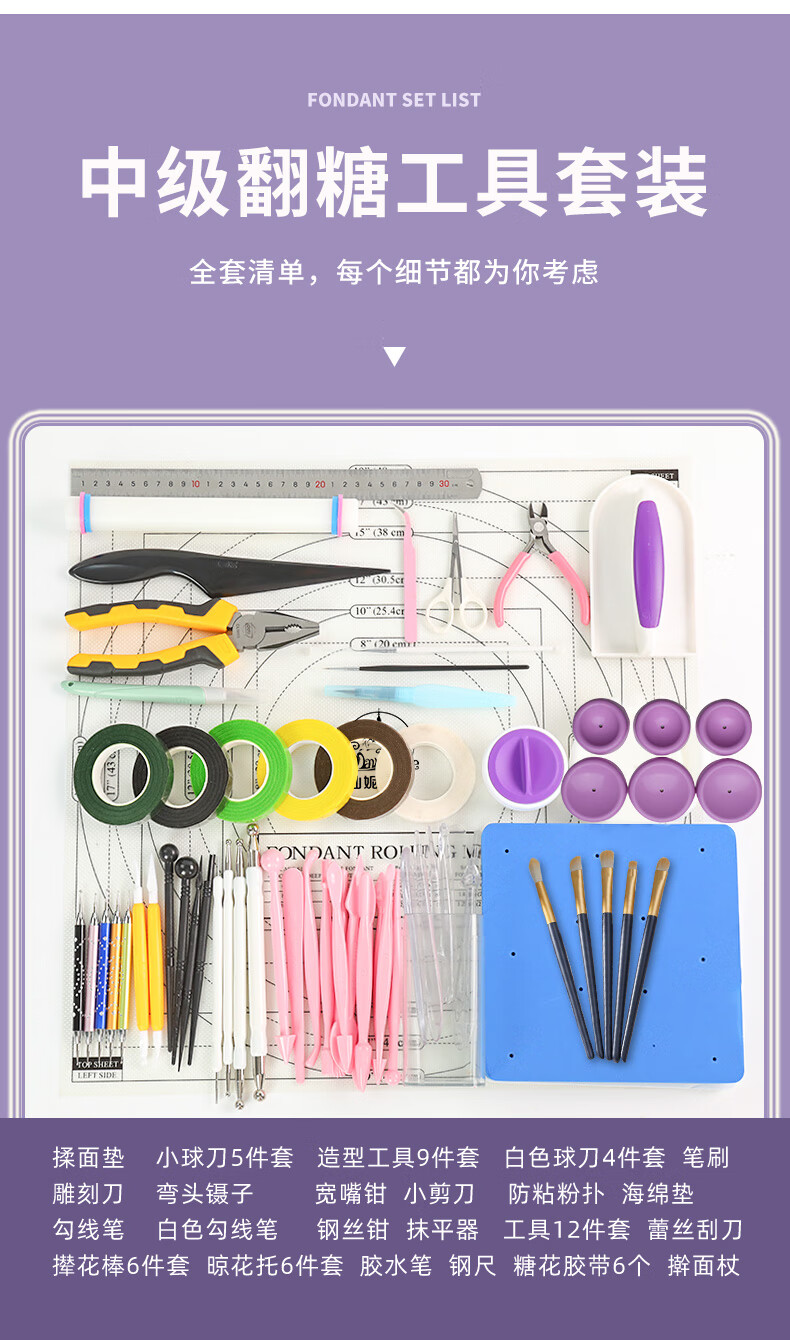 Shaniabelle Basic Fondant Tools Beginner Set Dry Pace Flower Doll Cover Full Set DIY Toolbox Sugar King Recommends Sugar King Recommends Beginner Tool Set