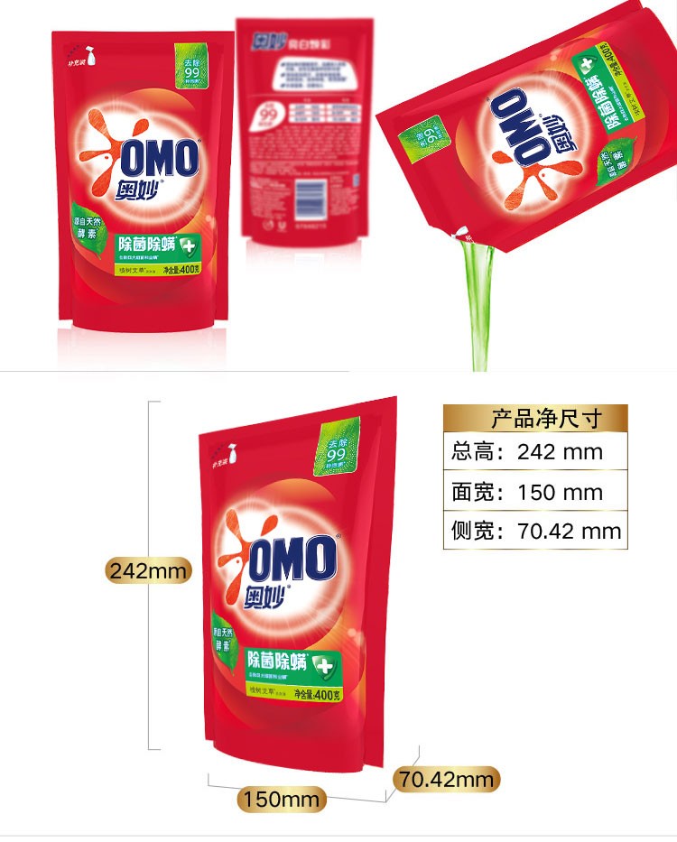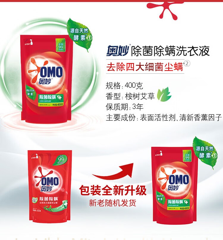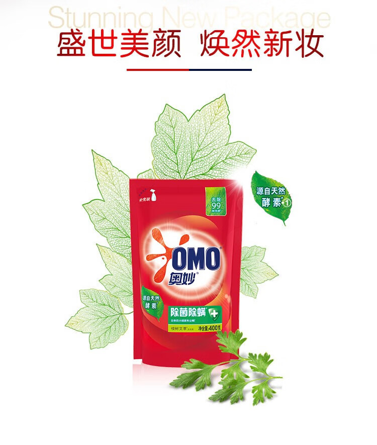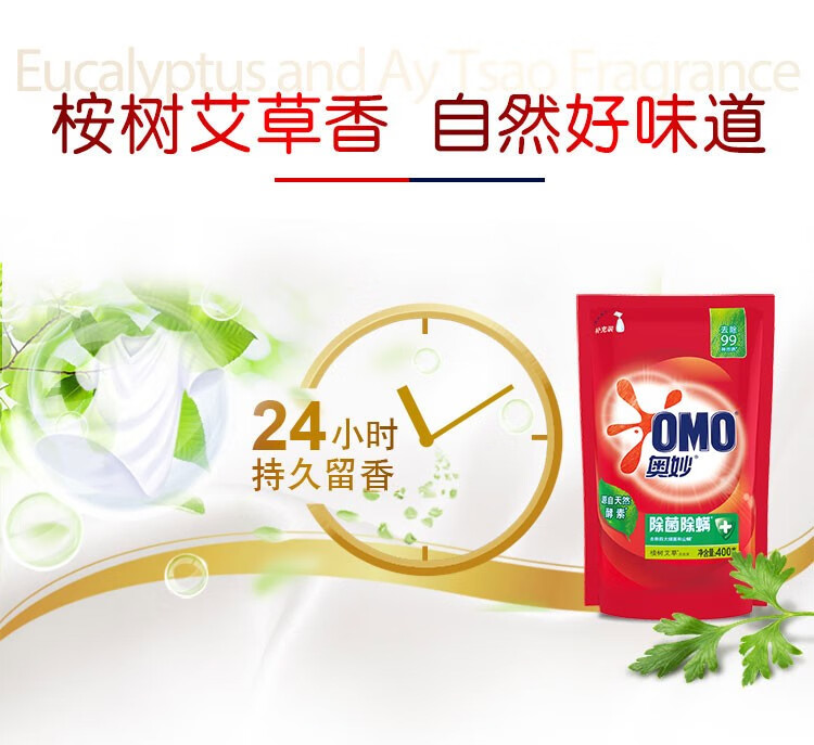 OMO Laundry Detergent Removes Bacteria and Mites, Long-lasting Fragrance, Cleans and Removes Bacteria, Eucalyptus Mugwort Removes 99 Kinds of Stains, Refill, Removes Bacteria and Mites, 400g, 2 Bags (Trial Pack)