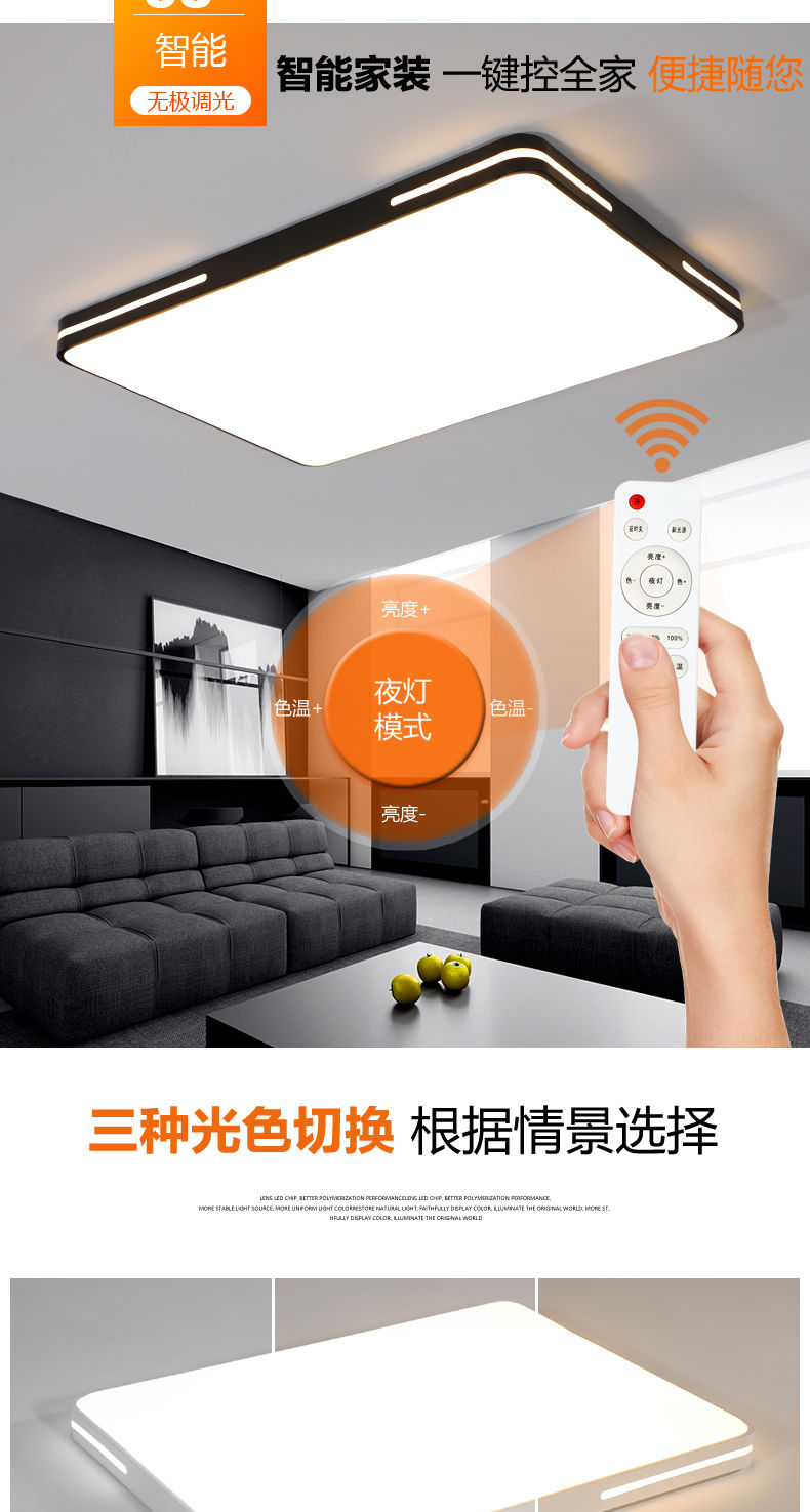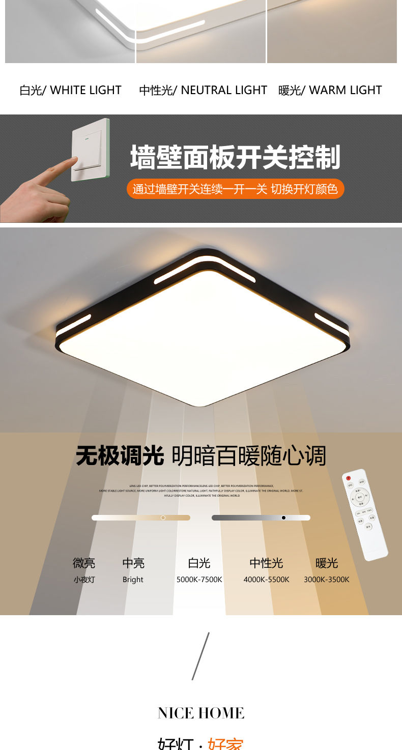 Henglan Guzhen Guzhen, Zhongshan City, Guangdong modern and simple new LED ceiling lamp living room lamp bedroom lamp atmospheric household black frame round 40cm white light-24.W