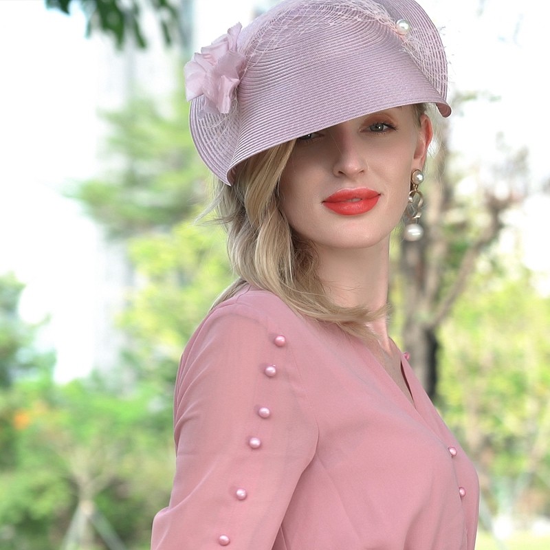 EE new summer style elegant and fashionable banquet hat, elegant, sweet and cute temperament floral pearl hat, white