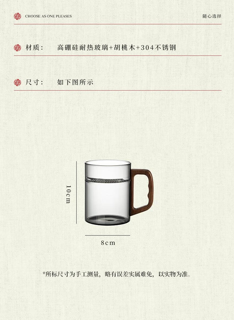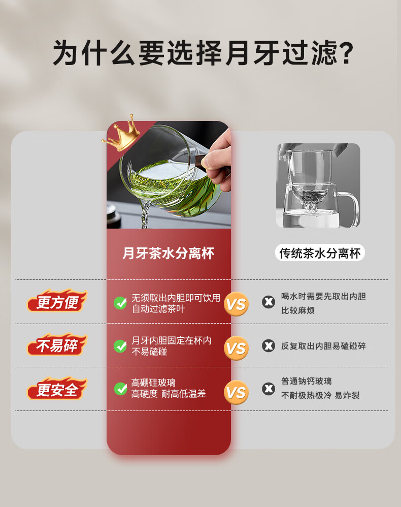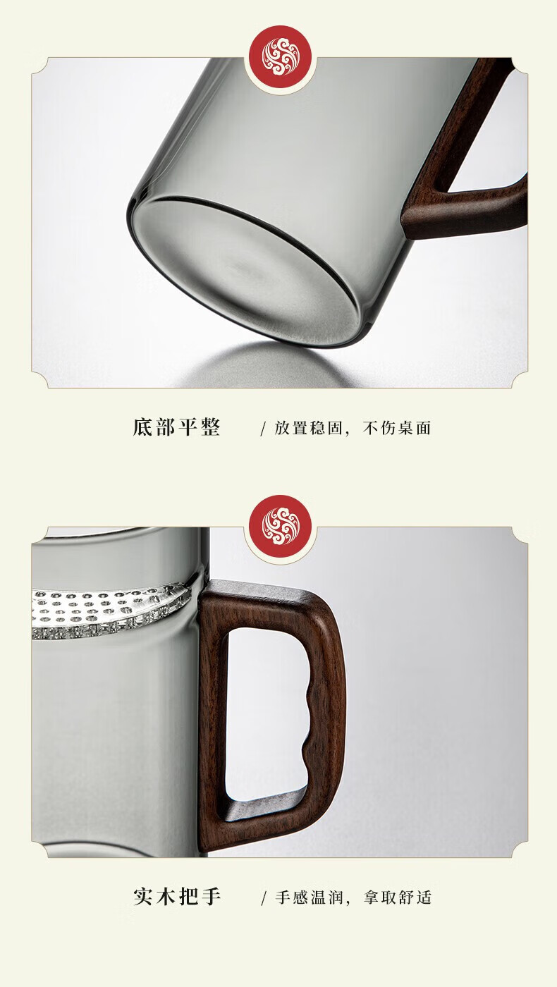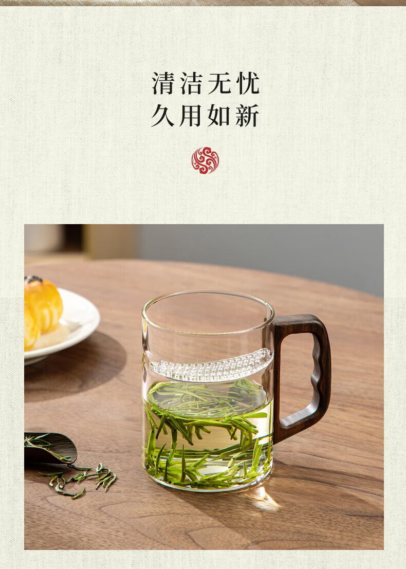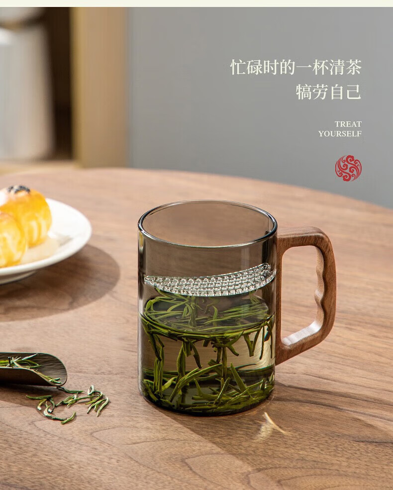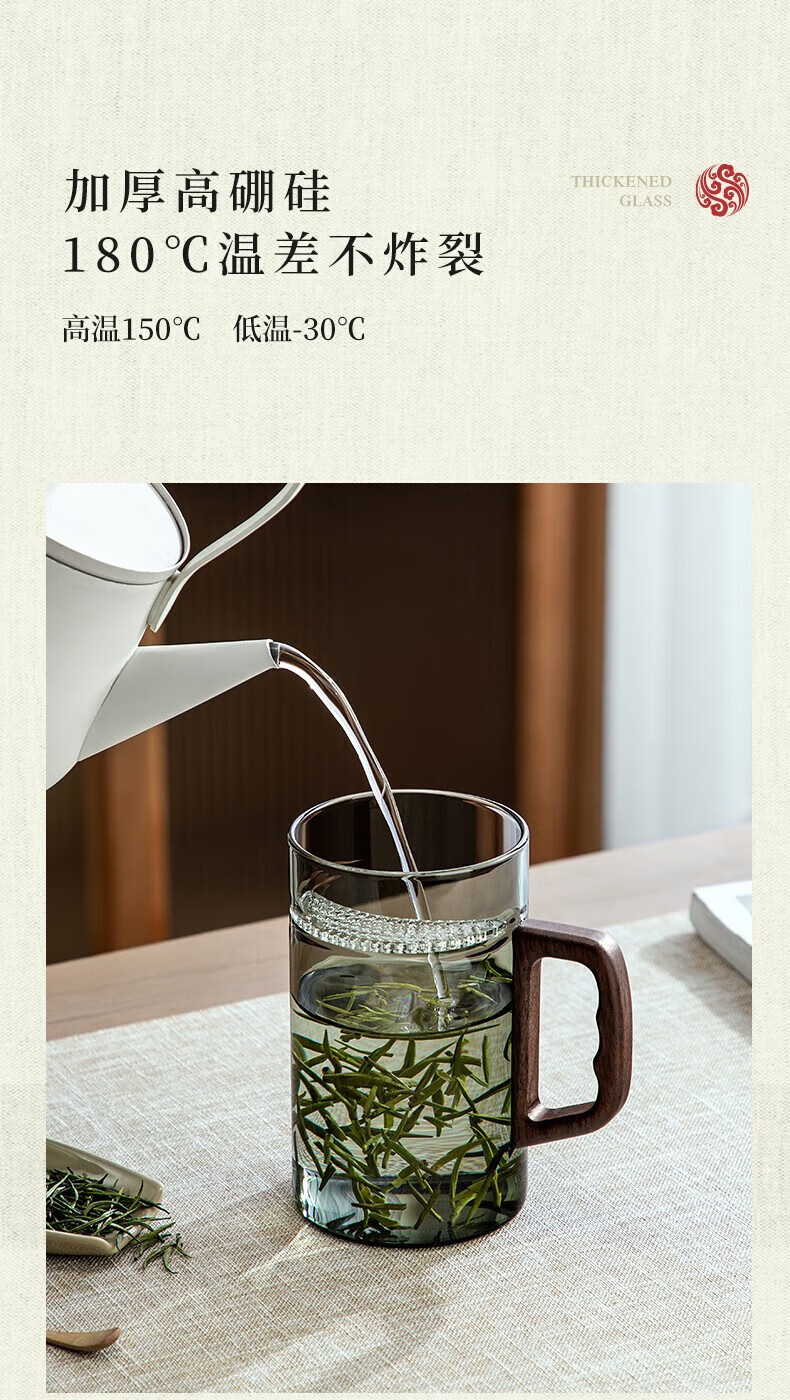 Yi Pot Tea Brewing Tea Cup Tea Water Separator Cup Glass High Borosilicate Green Tea Cup Crescent Moon Filtration Office Home Water Cup Men's 400ML Glass Crescent-With Walnut Lid