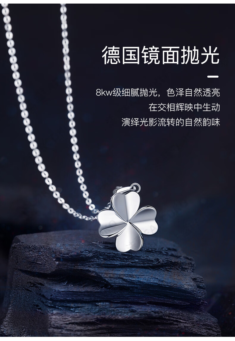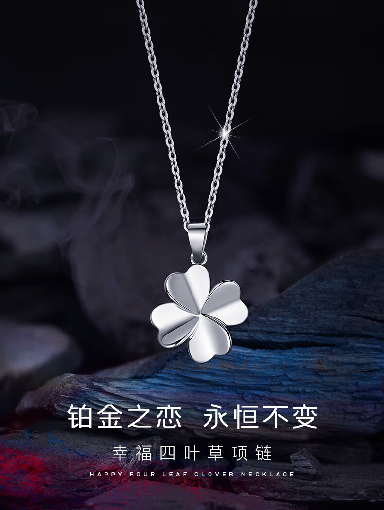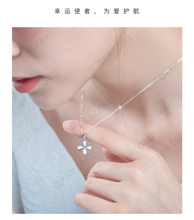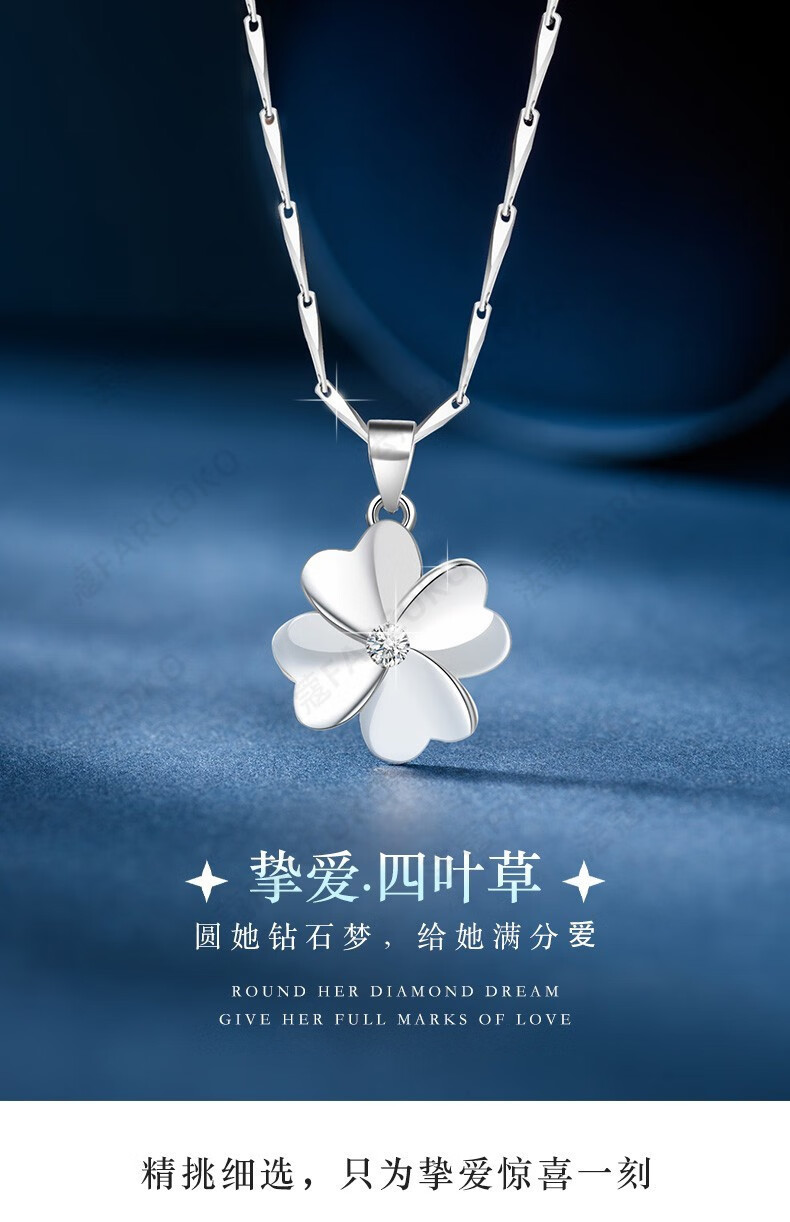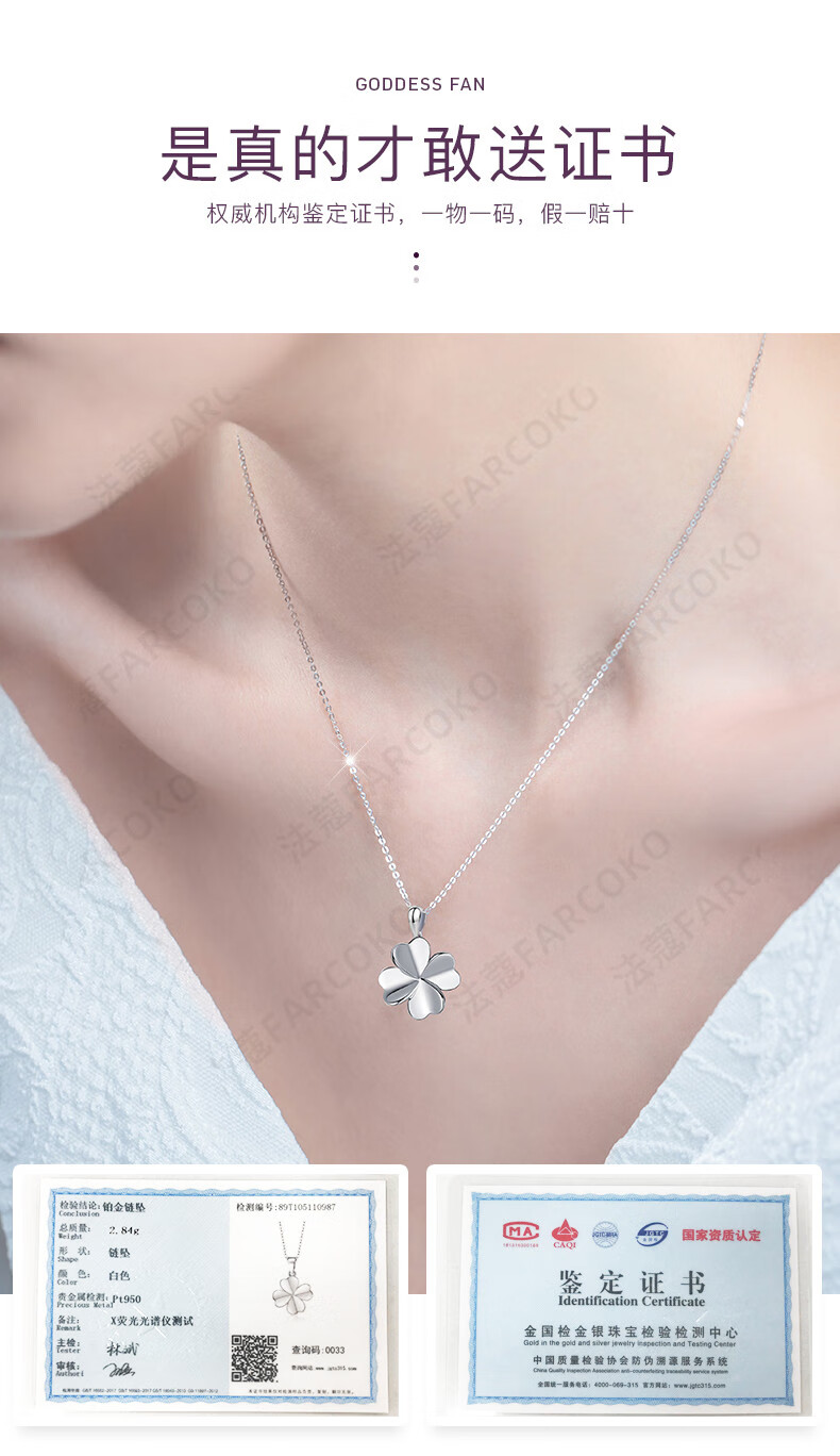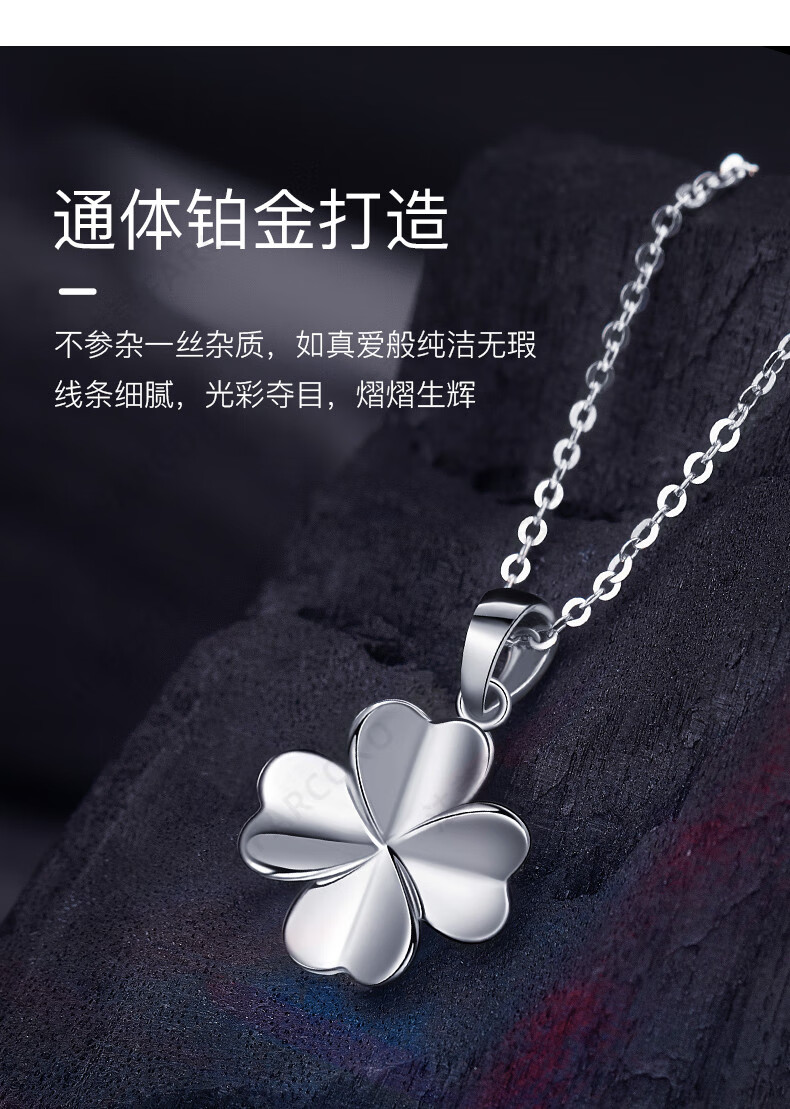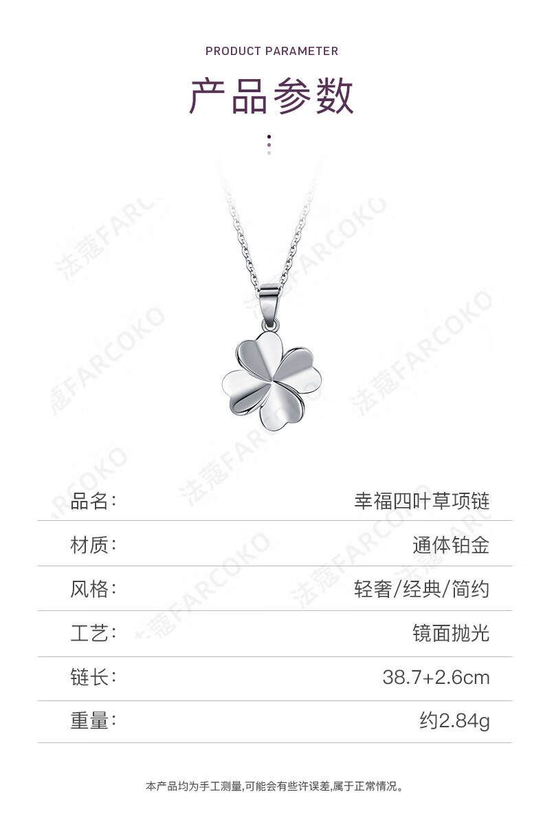 Fakou PT950 platinum four-leaf clover necklace for women, simple clavicle chain pendant, Christmas, Valentine's Day, birthday gift for girlfriend, four-leaf clover glossy version (white gold + cross chain)