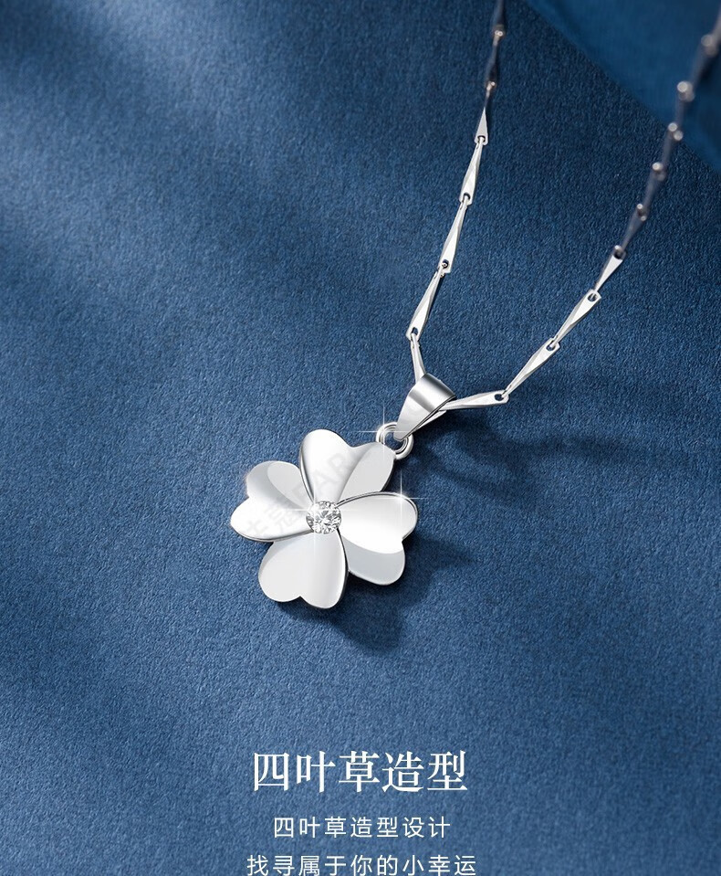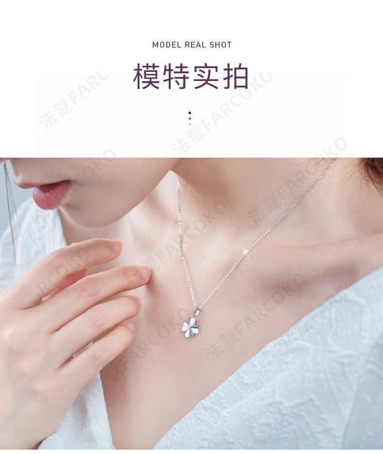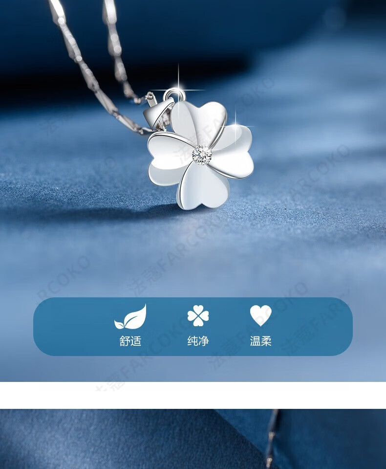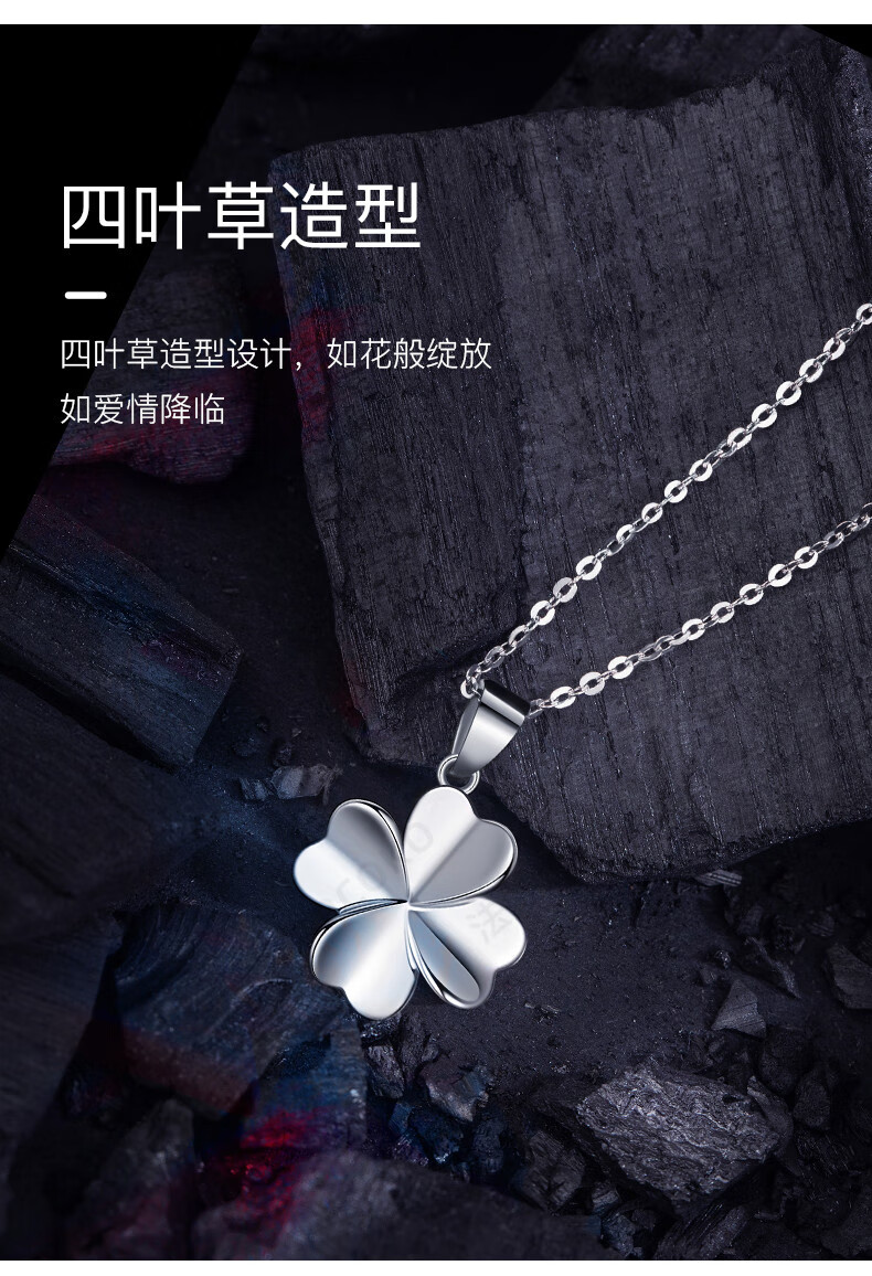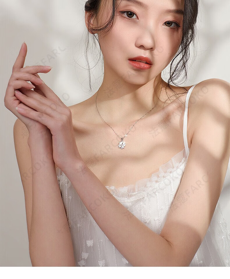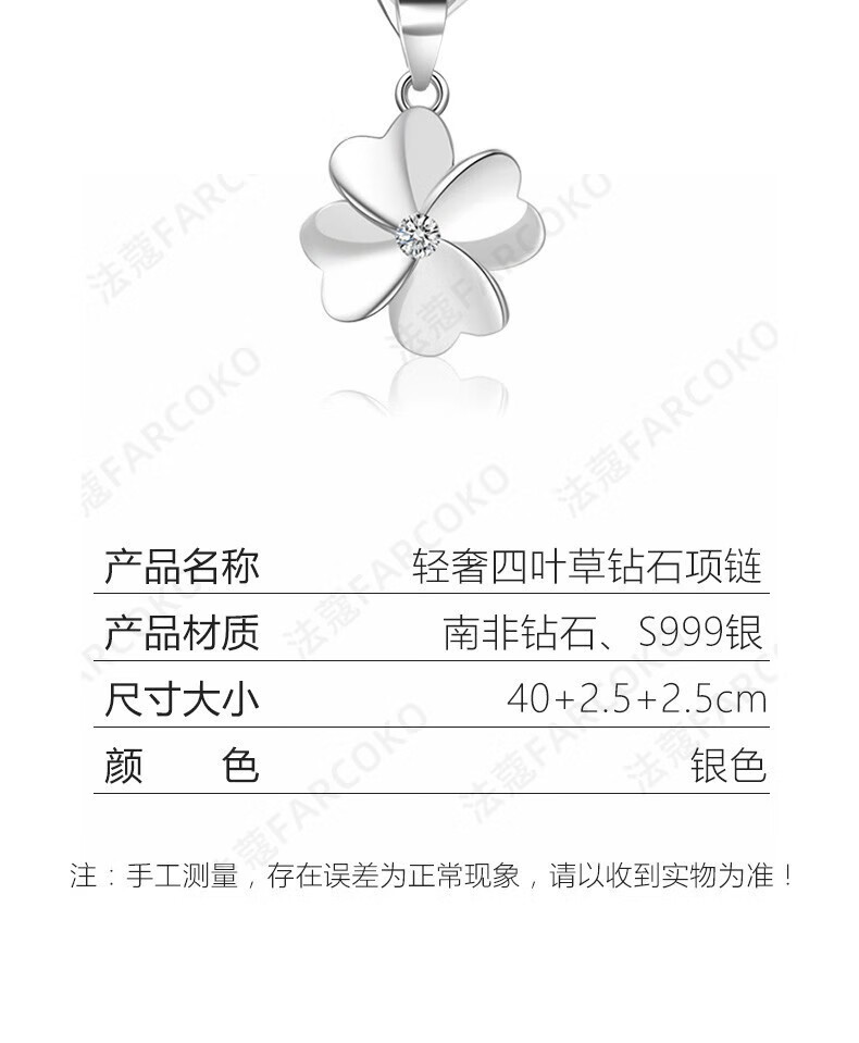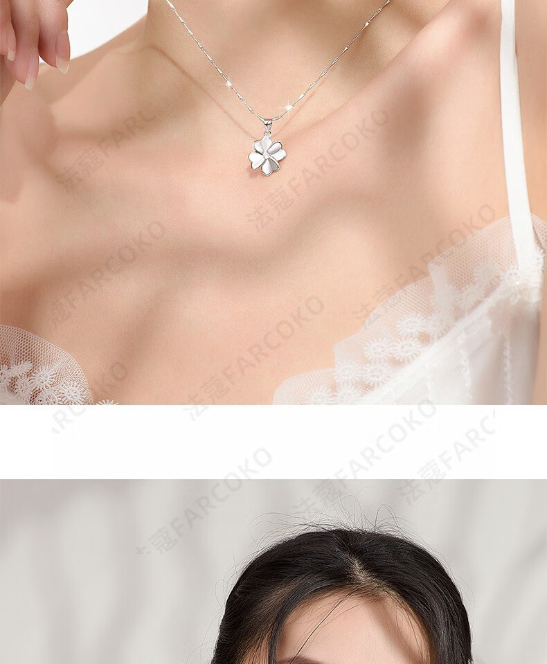 Fakou PT950 platinum four-leaf clover necklace for women, simple clavicle chain pendant, Christmas, Valentine's Day, birthday gift for girlfriend, four-leaf clover glossy version (white gold + cross chain)