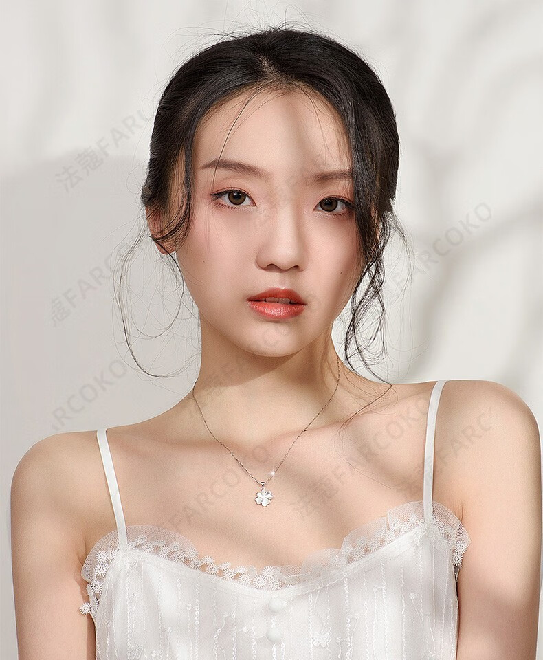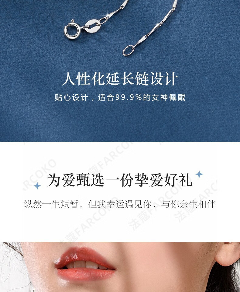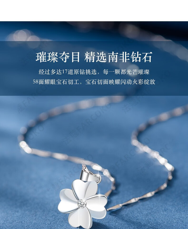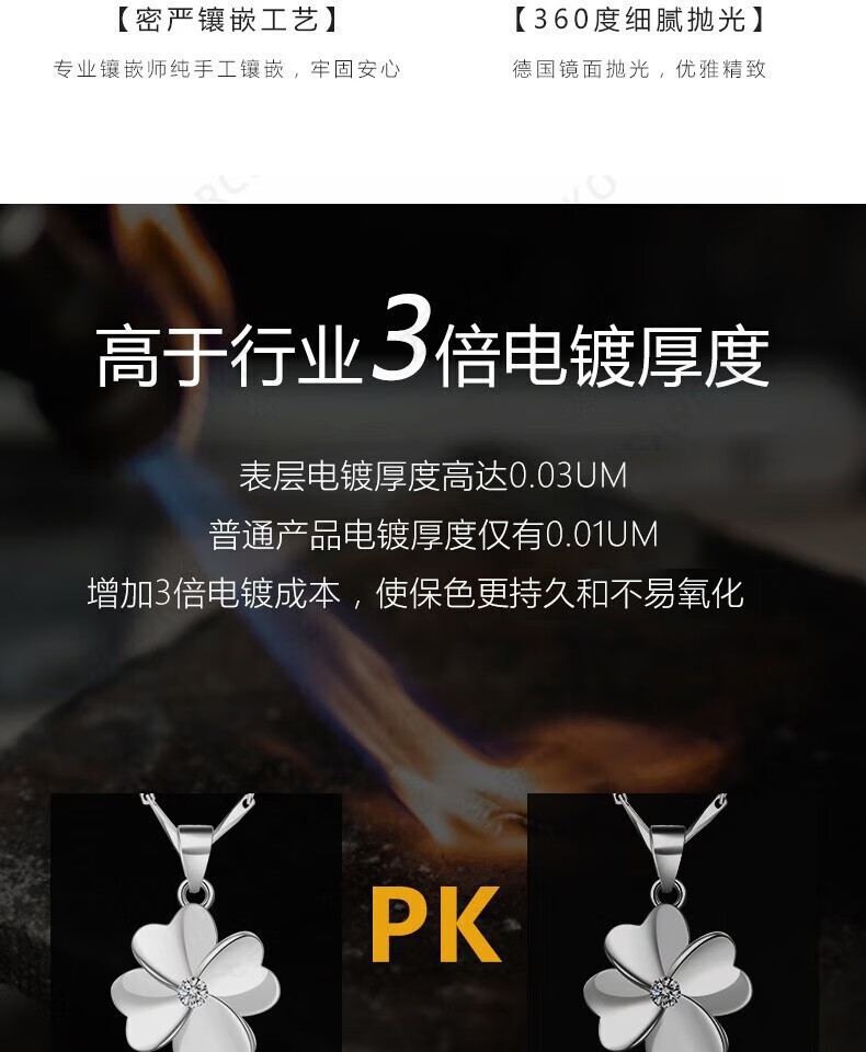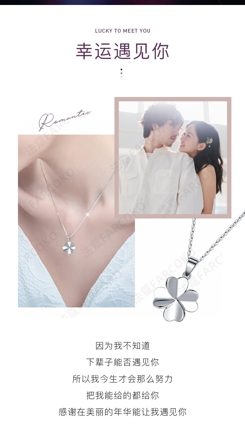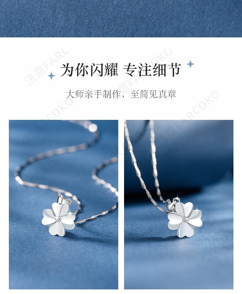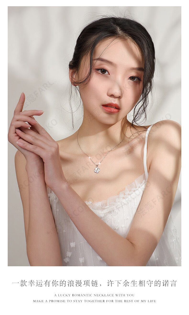 Fakou PT950 platinum four-leaf clover necklace for women, simple clavicle chain pendant, Christmas, Valentine's Day, birthday gift for girlfriend, four-leaf clover glossy version (white gold + cross chain)