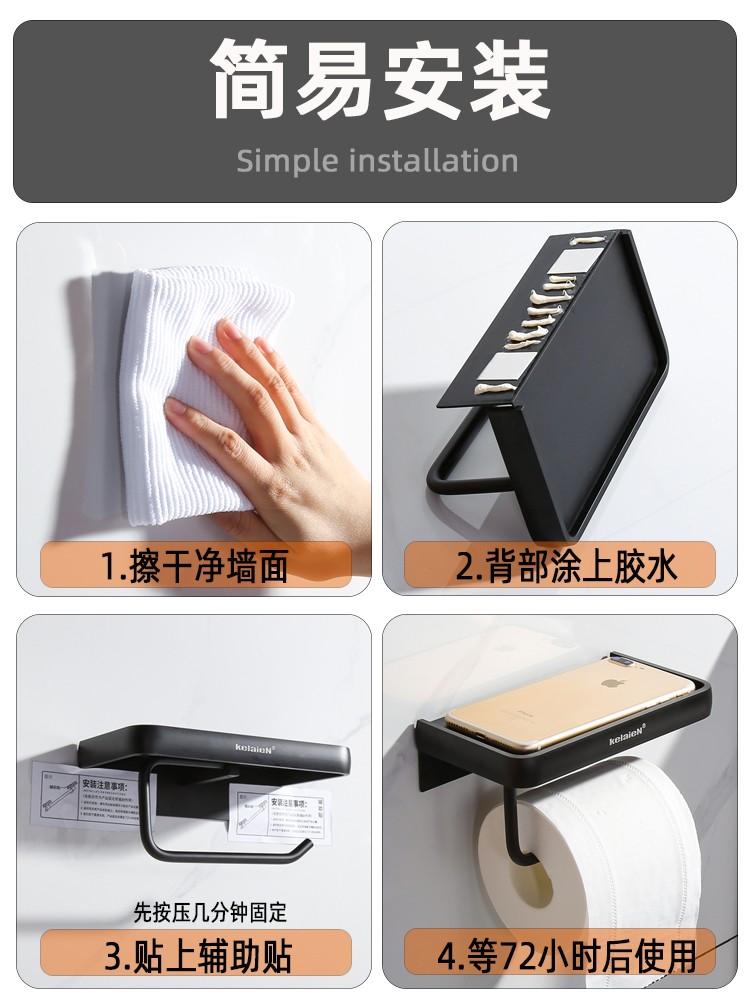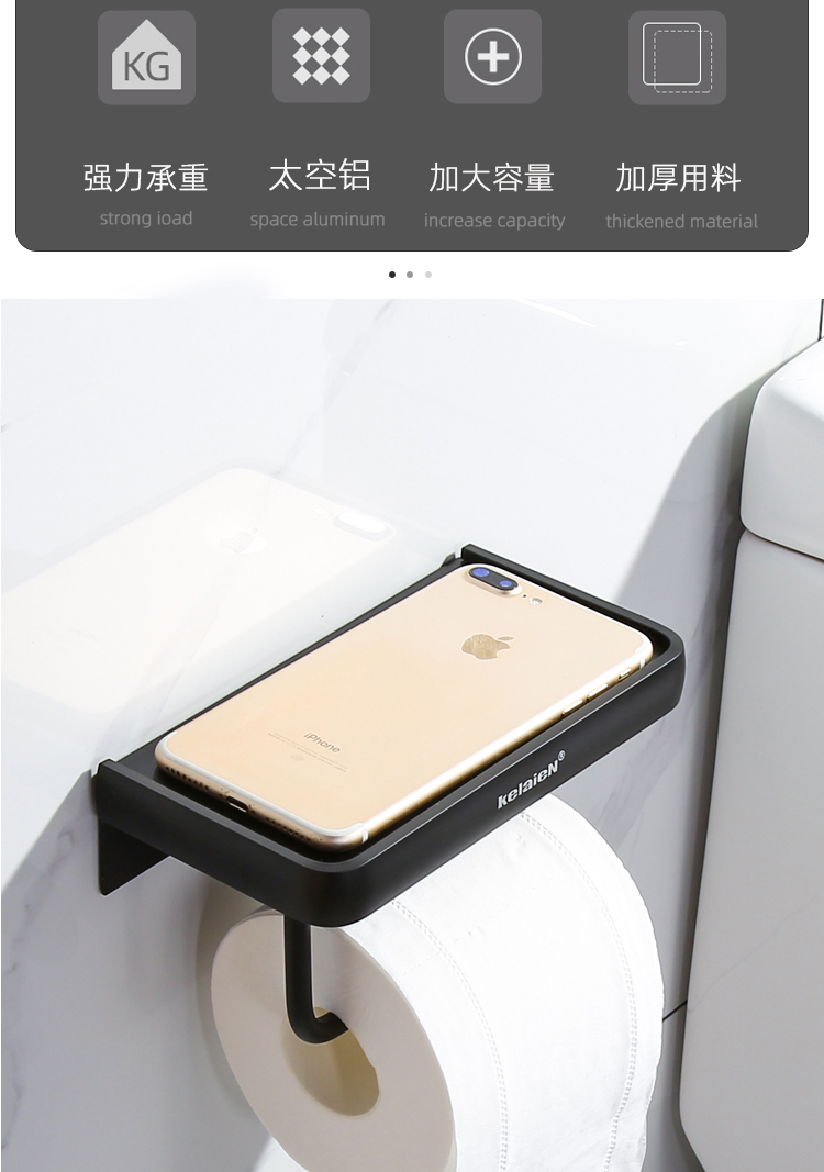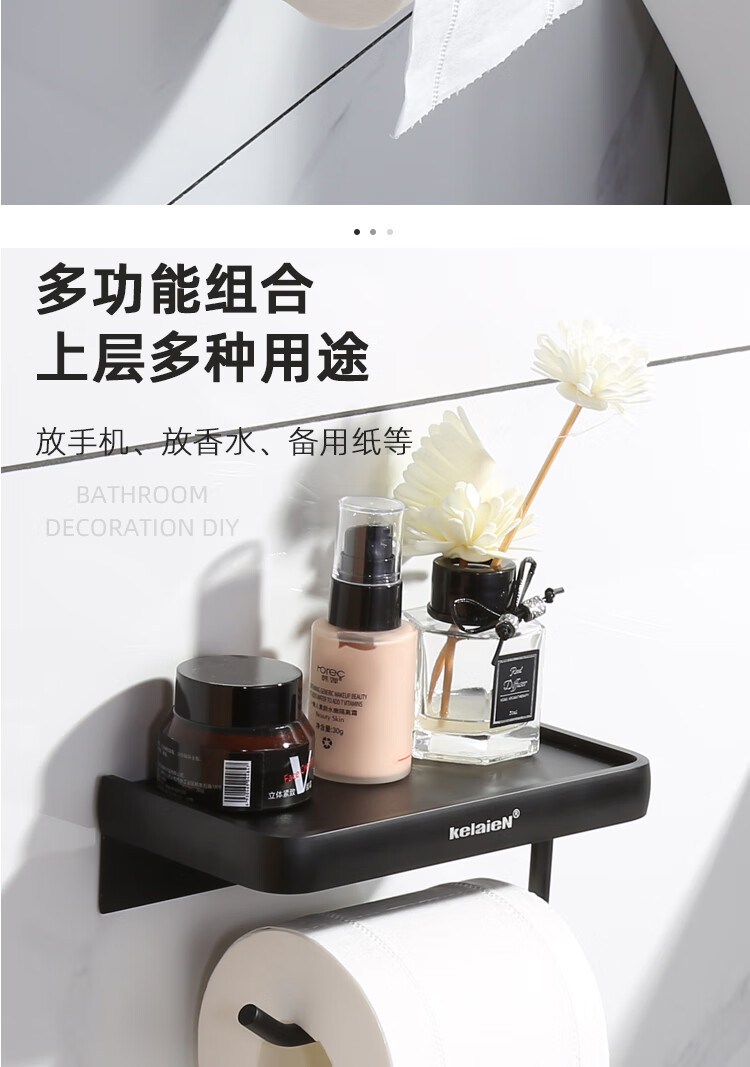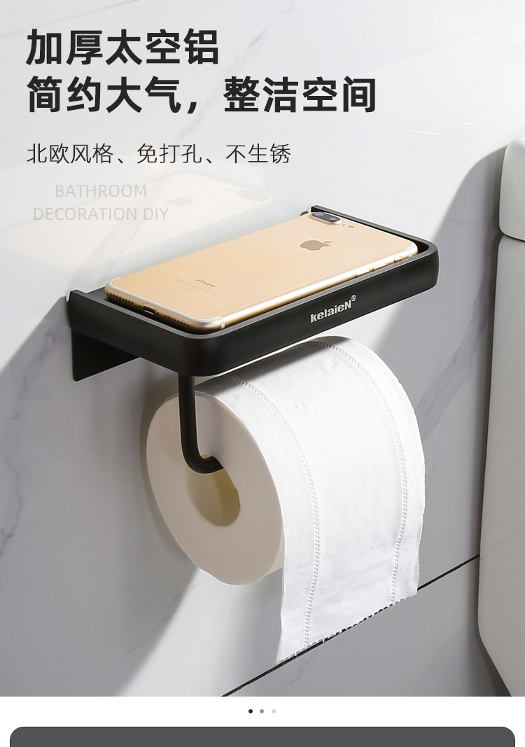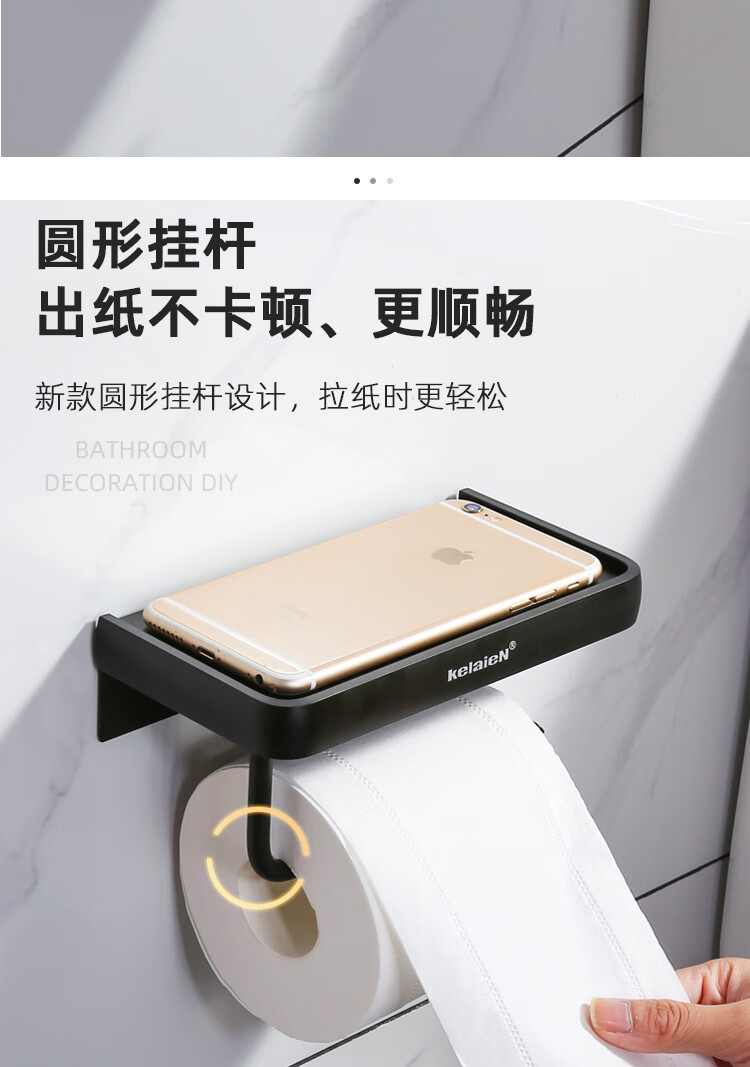 KelaieN bathroom tissue box toilet paper rack roll paper wall hanging toilet tissue holder hanger bathroom punch-free paper box silver rim (28033-punch-free dual-use)