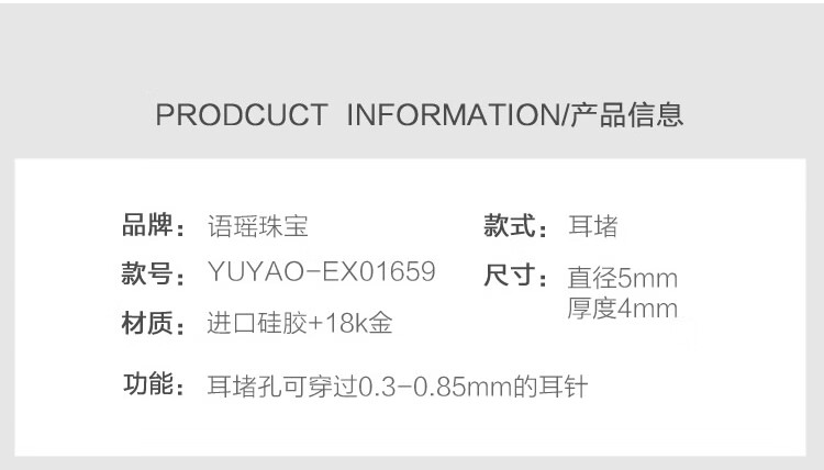 Yuyao 18k gold ear plugs, silicone ear buckles, ear stud plugs, anti-falling, anti-slip, advanced fixed gold 750 gold back plugs, two pairs of white 18k ear plugs (imported)