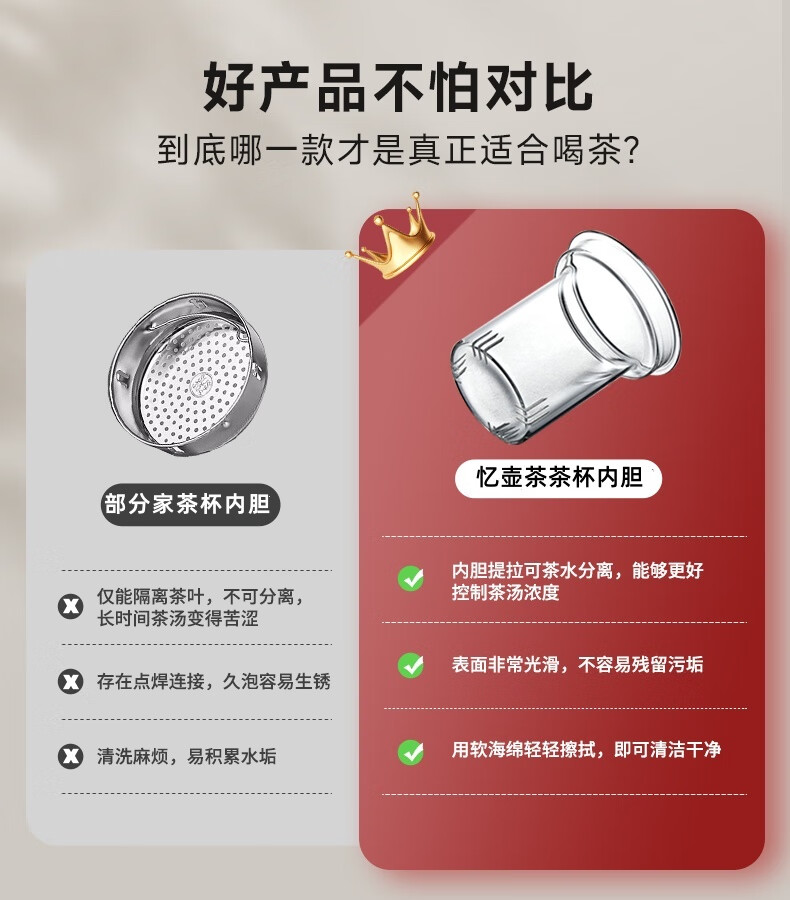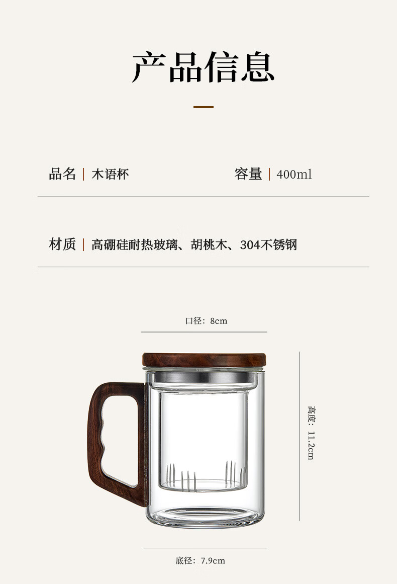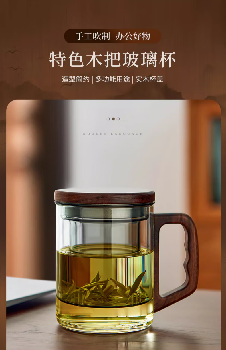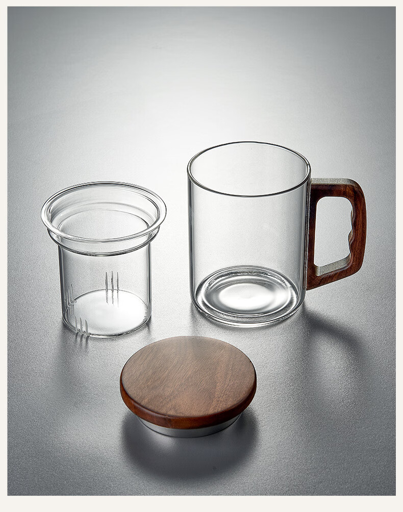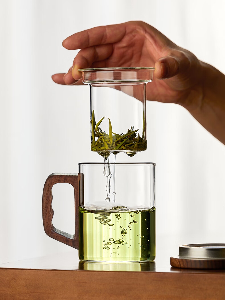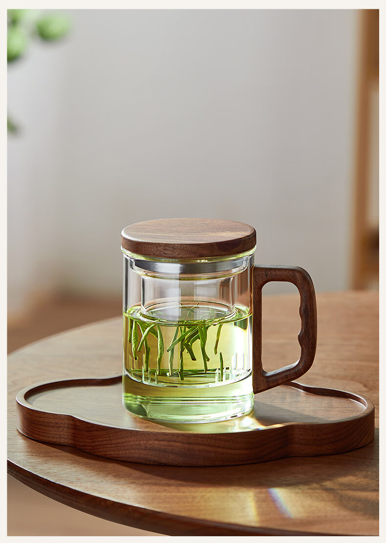Yipot tea brewing cup tea water separate cup water cup men's tea cup personal tea brewing cup glass green tea cup special price 400ML wooden cup