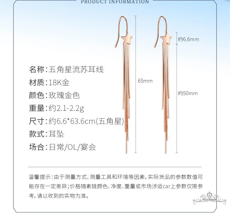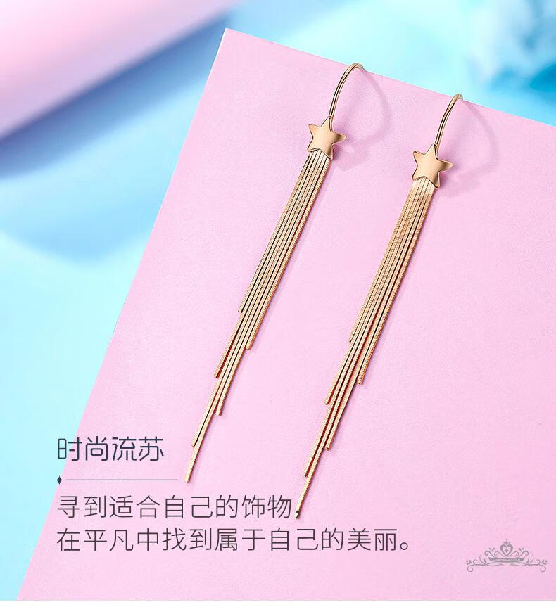 Haikayi light luxury 18k five-pointed star long tassel earrings for women rose gold ear hooks earrings star earrings slimming five-pointed star snake bone tassel ear hooks 1 pair - rose gold