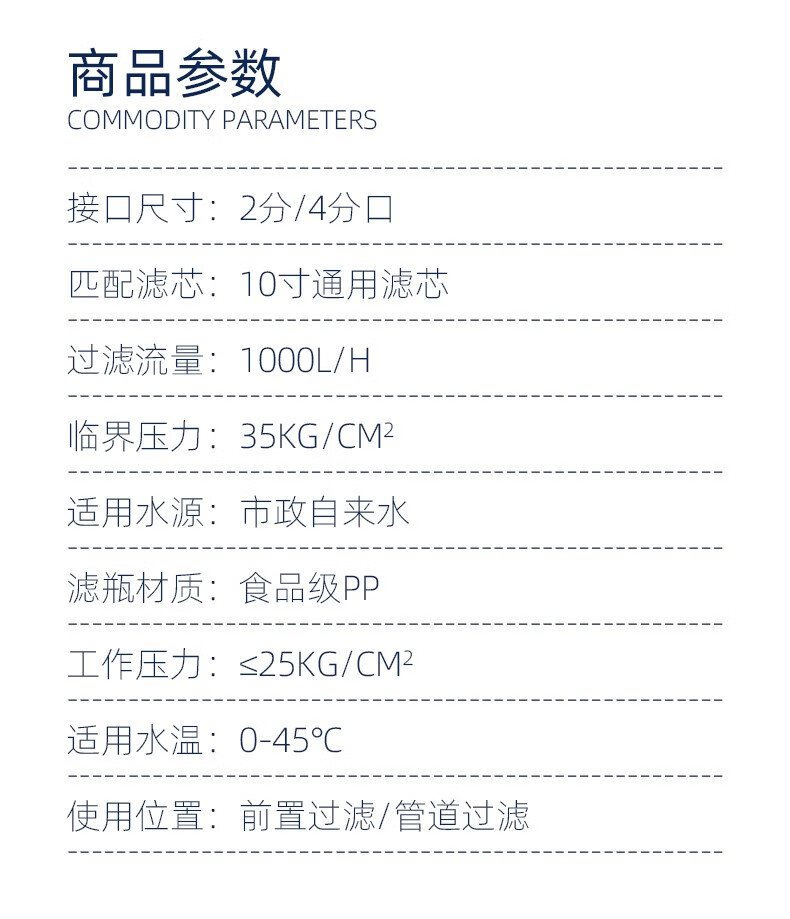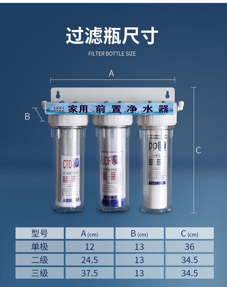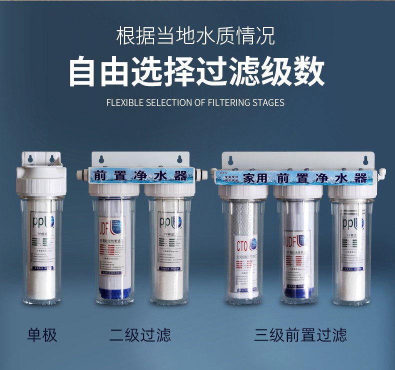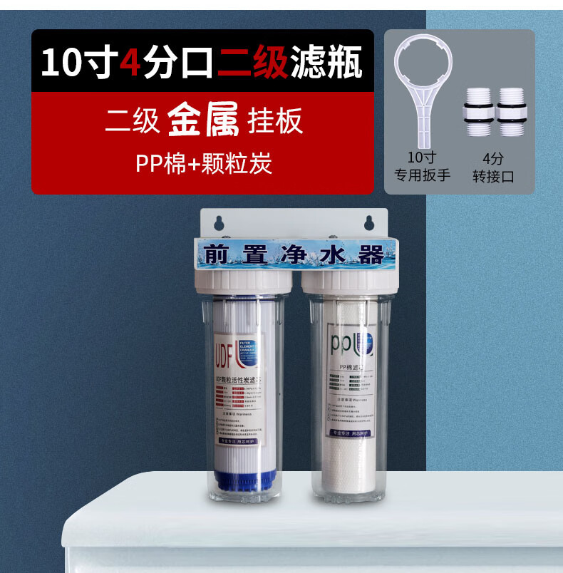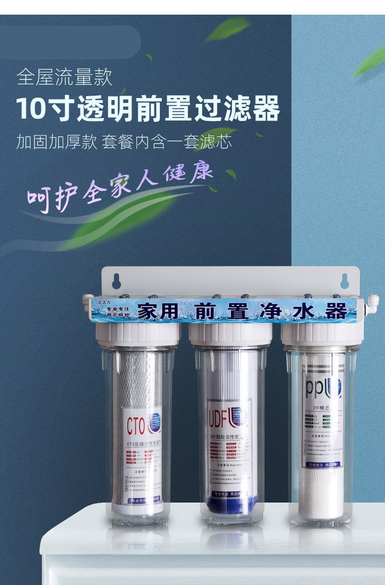 Gardas customized 10-inch transparent filter bottle water purifier filter 2-port front PP cotton coconut shell activated carbon set filter element 4-port dual-stage water purifier set