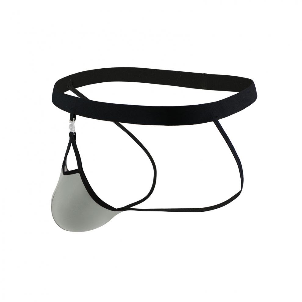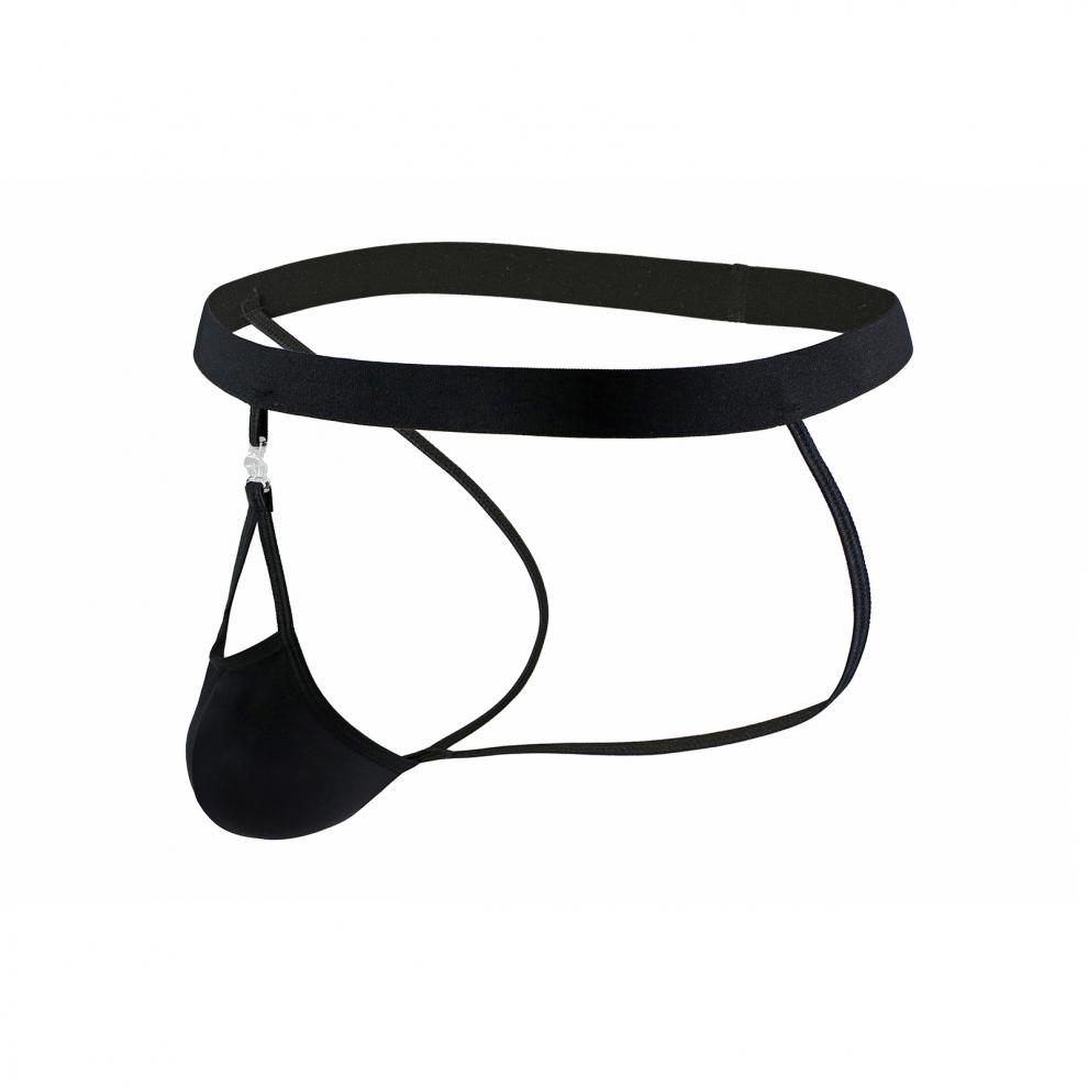 Zi Jiafu men's sexy underwear, empty back thong detachable PP thong underwear with exposed bladder, men's sexy and convenient intercourse, black ribbed black cloth 4XL (108-115cm)