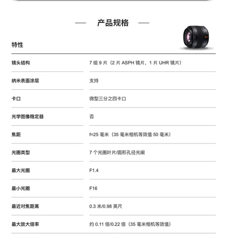 Panasonic 25mm F1.4 second generation lens mirrorless camera lens standard fixed focus lens portrait lens M4/3 mount