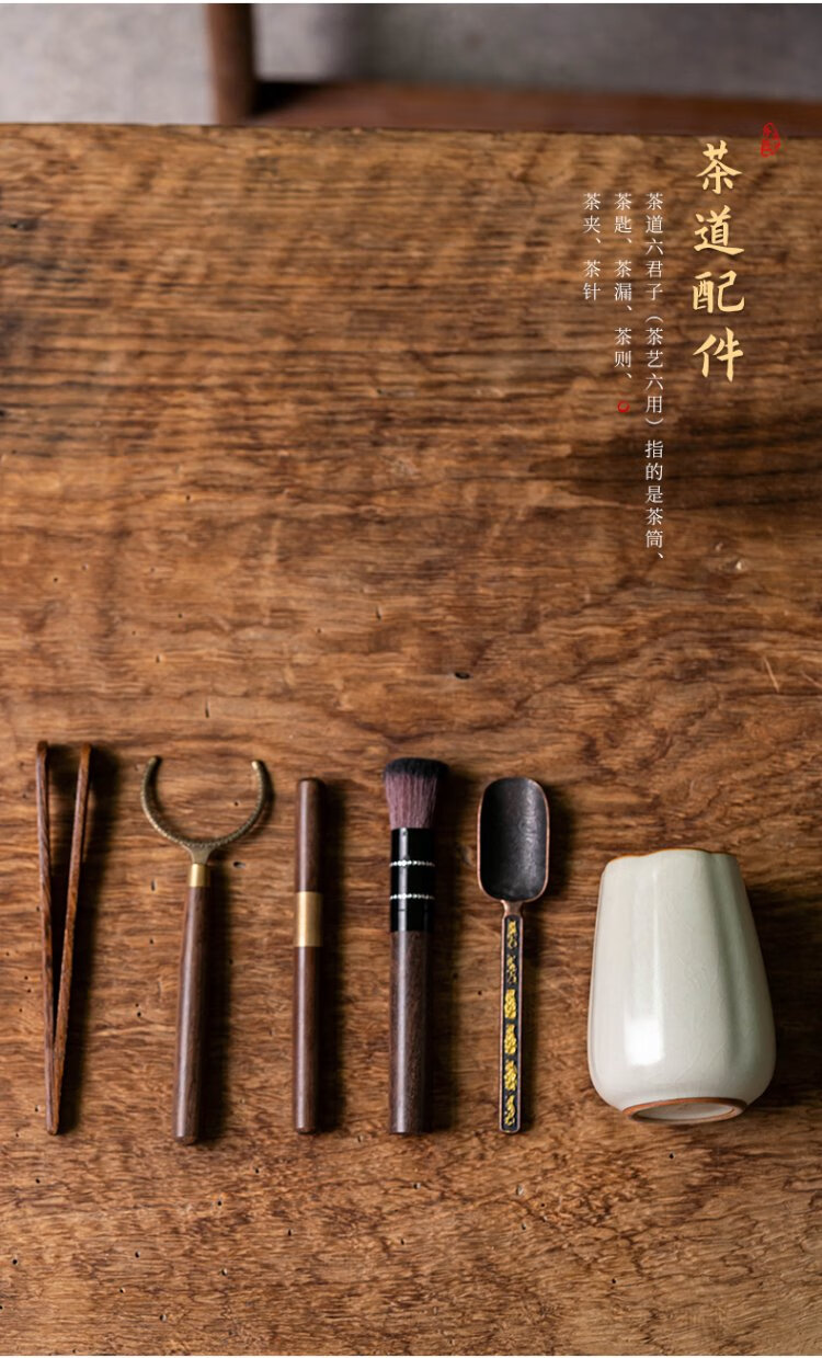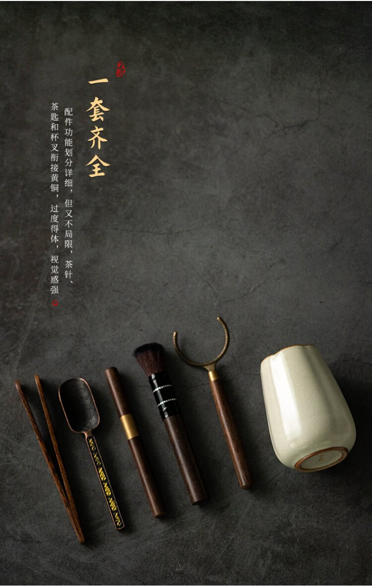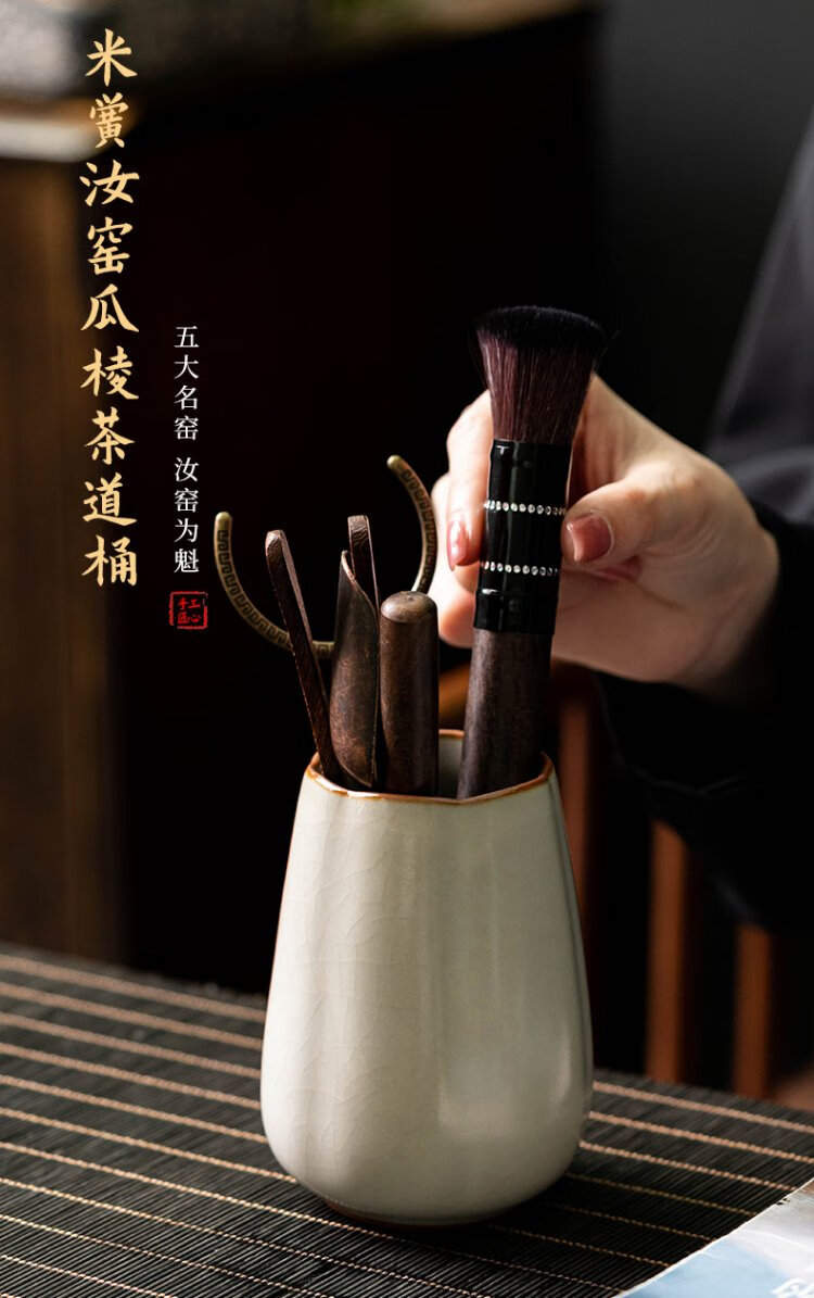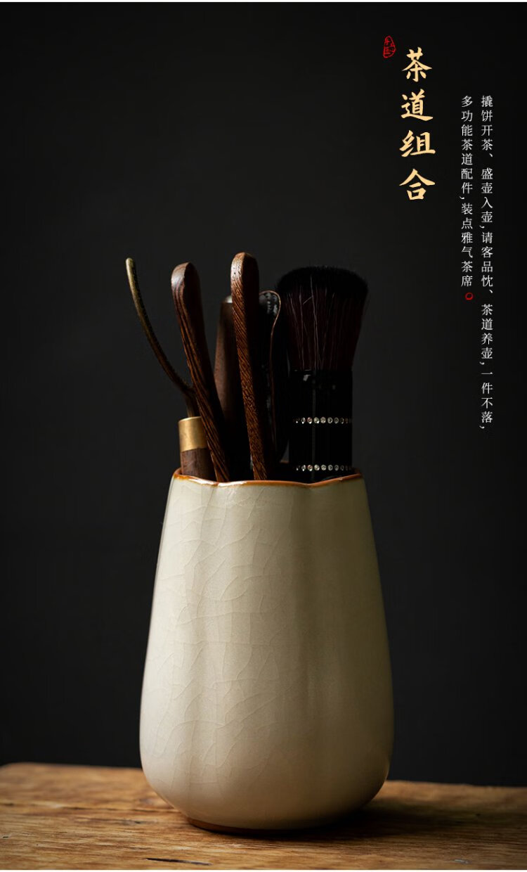 Xi Yuanji Beige Ru Kiln Melon Edge Tea Ceremony Six Gentlemen Kung Fu Tea Supplies Accessories Tea Making Tools Tea Knife Tea Clamp Tea Brush Spoon Beige Ru Kiln Melon Edge Tea Ceremony Tube + Ebony Accessories