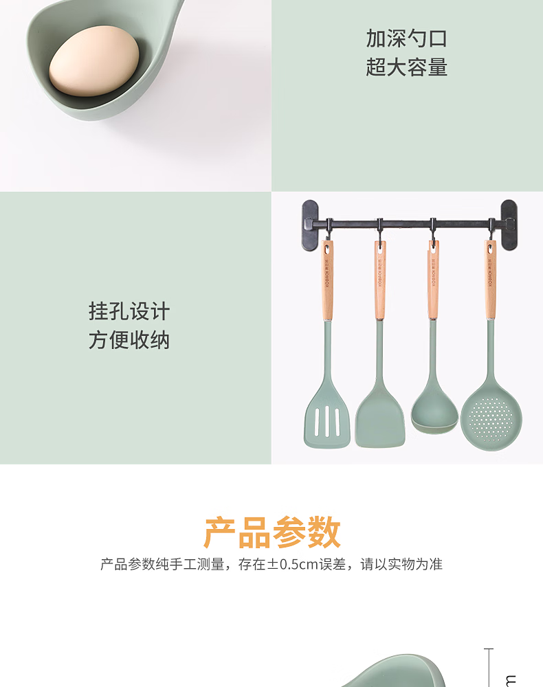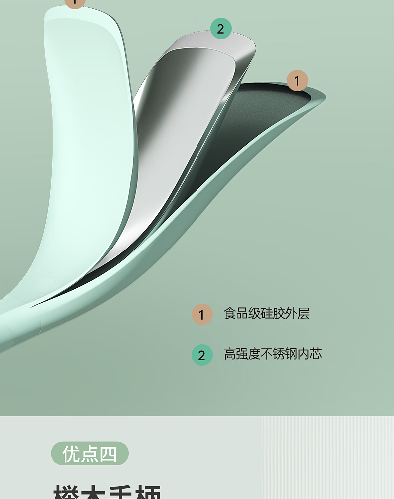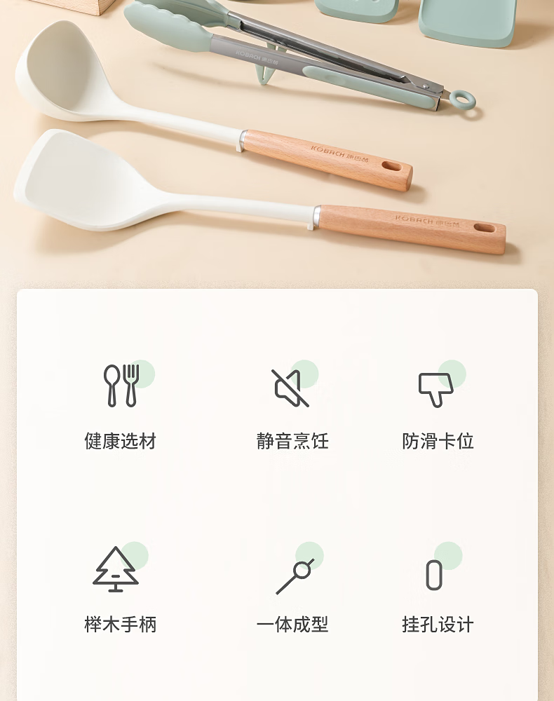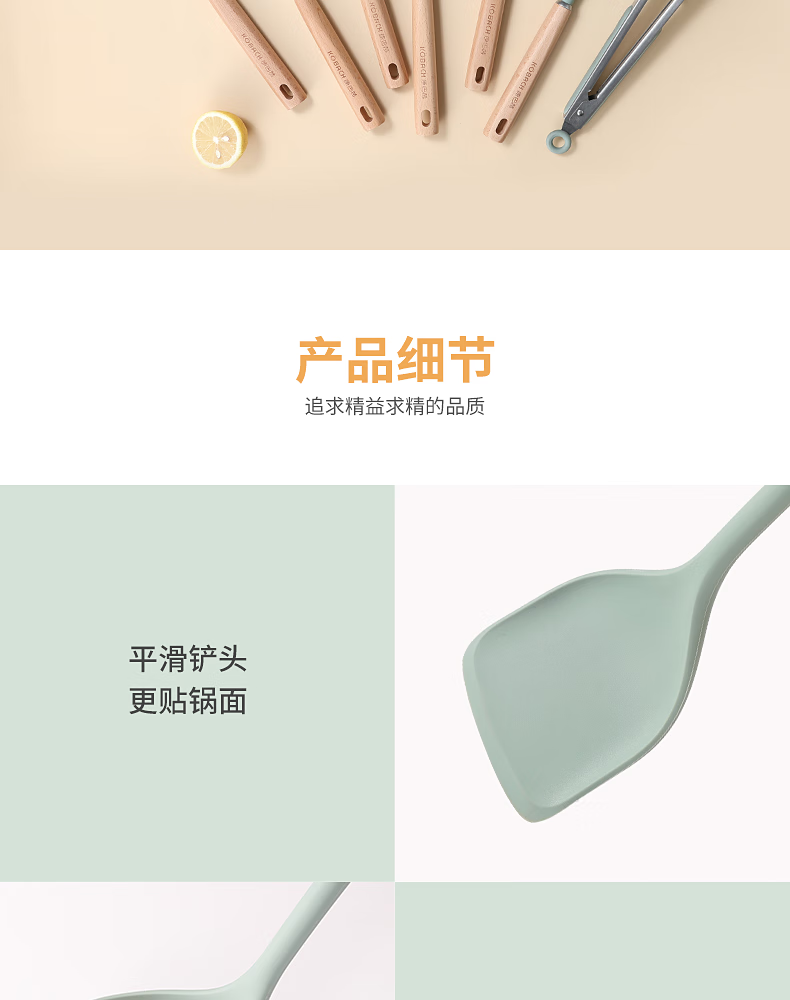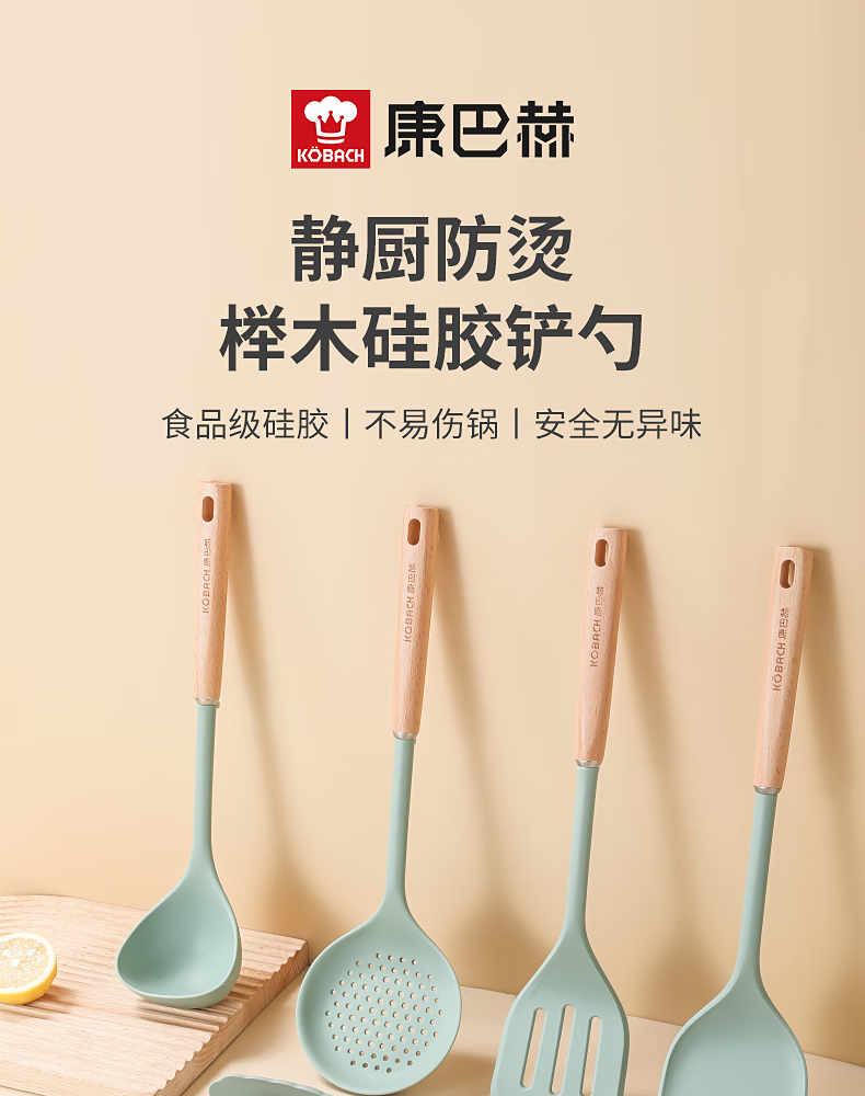 KOBACH silicone spatula protects the pot, does not damage the pot, stir-fries, non-stick pans, frying pans, special spatula and spoon combination, silicone spatula, blue