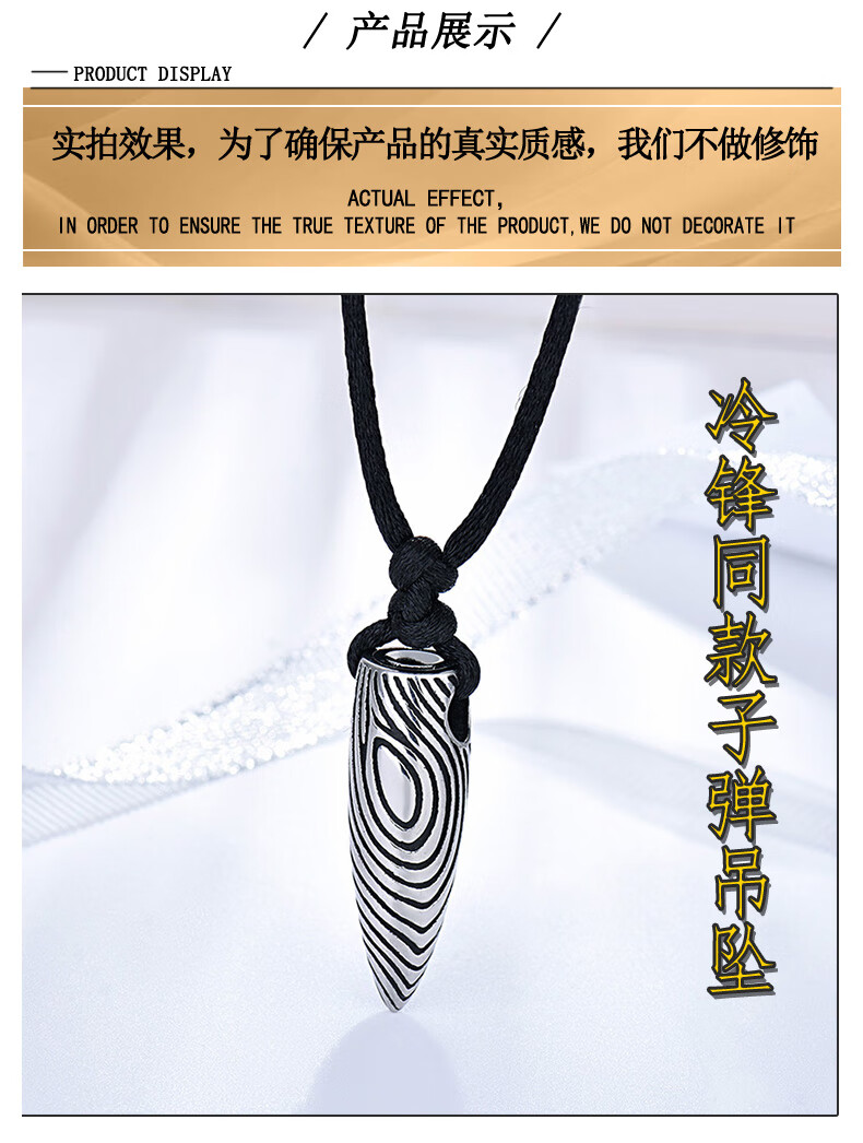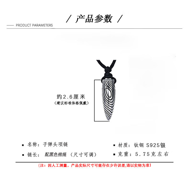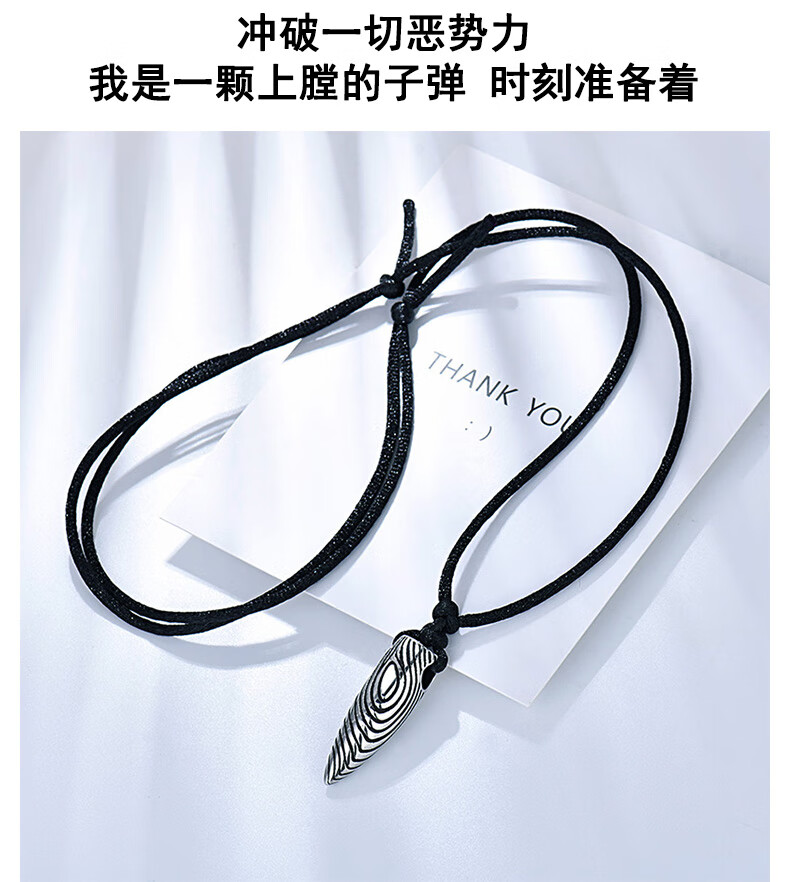 Xili Lengfeng S925 Silver Bullet Necklace Men's Trendy Pendant Necklace for Boys Chinese Valentine's Day Gift for Boyfriend S925 Silver-Bullet Necklace
