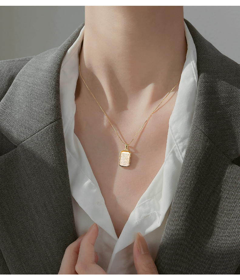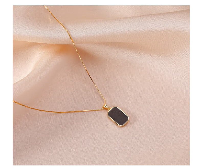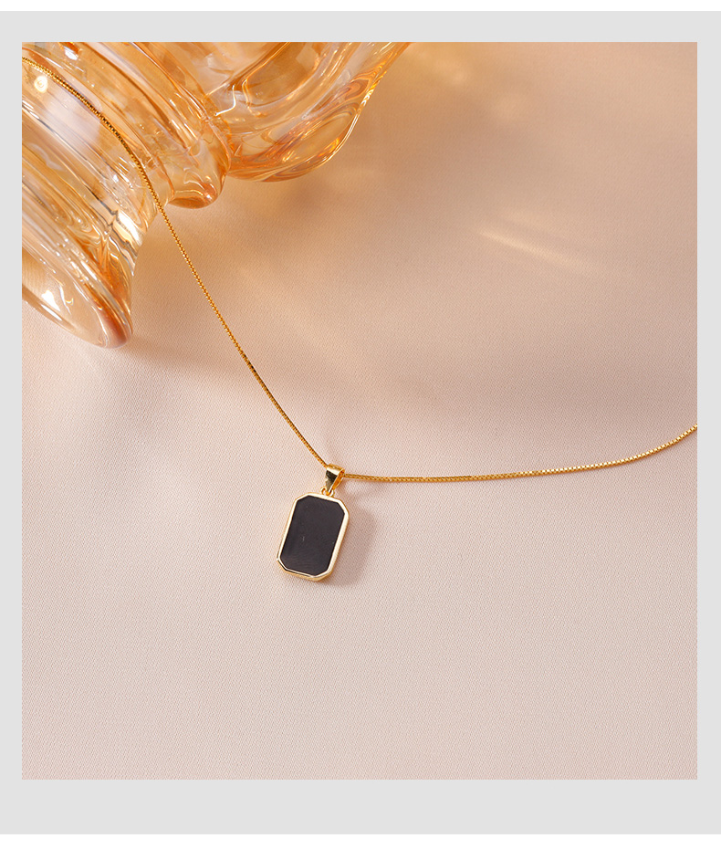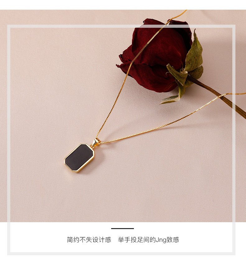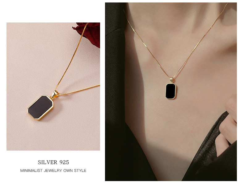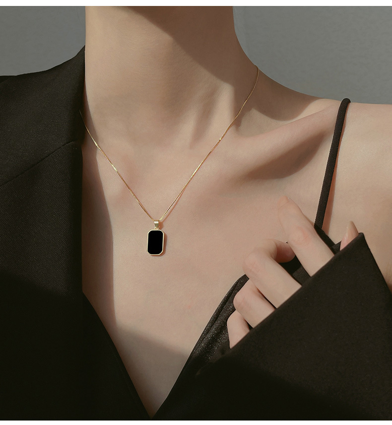 CHOMEL KINSEY Korean black square necklace for women, light luxury niche design, high-end silver clavicle chain Valentine's Day gift, black square necklace