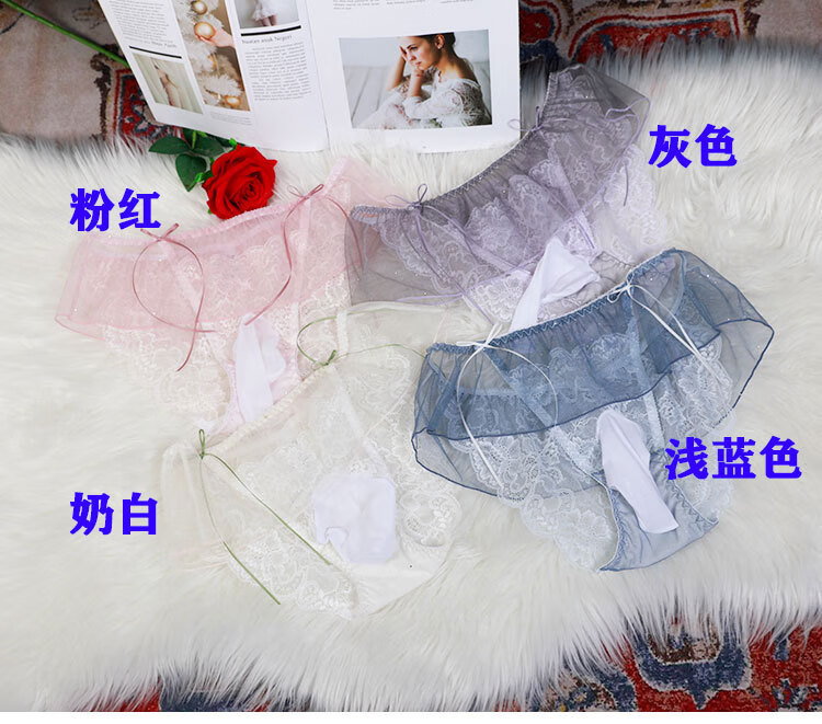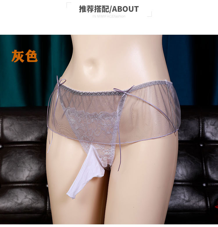 Adult men's sexy underwear, perverted nightclub dancing performance, gay Japanese large size lace thong, male sexy stockings, panty set, transparent sexy temptation open crotch briefs, gray L size - set opening - 140-180Jin Jin is equal to 0.5kg