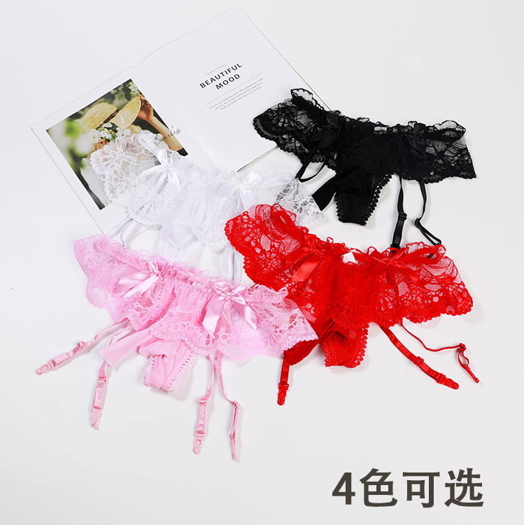 Adult men's sexy underwear, perverted thong, men's suspenders, one-piece sexy set, lace gay low-waist, transparent concave and convex large pouch, couple's intercourse stimulation, SM ecstasy, red, open