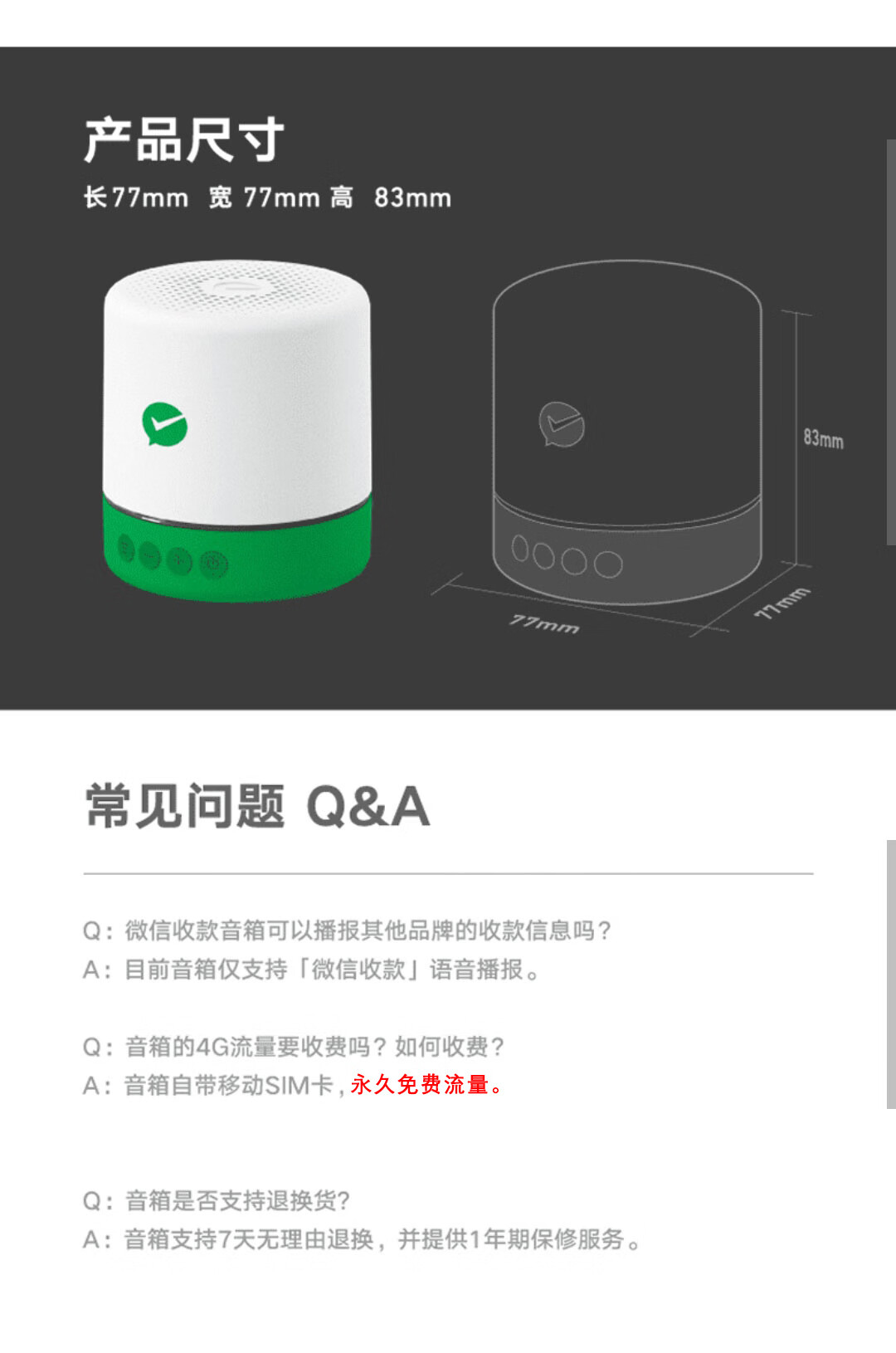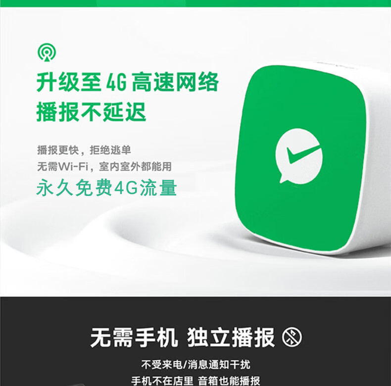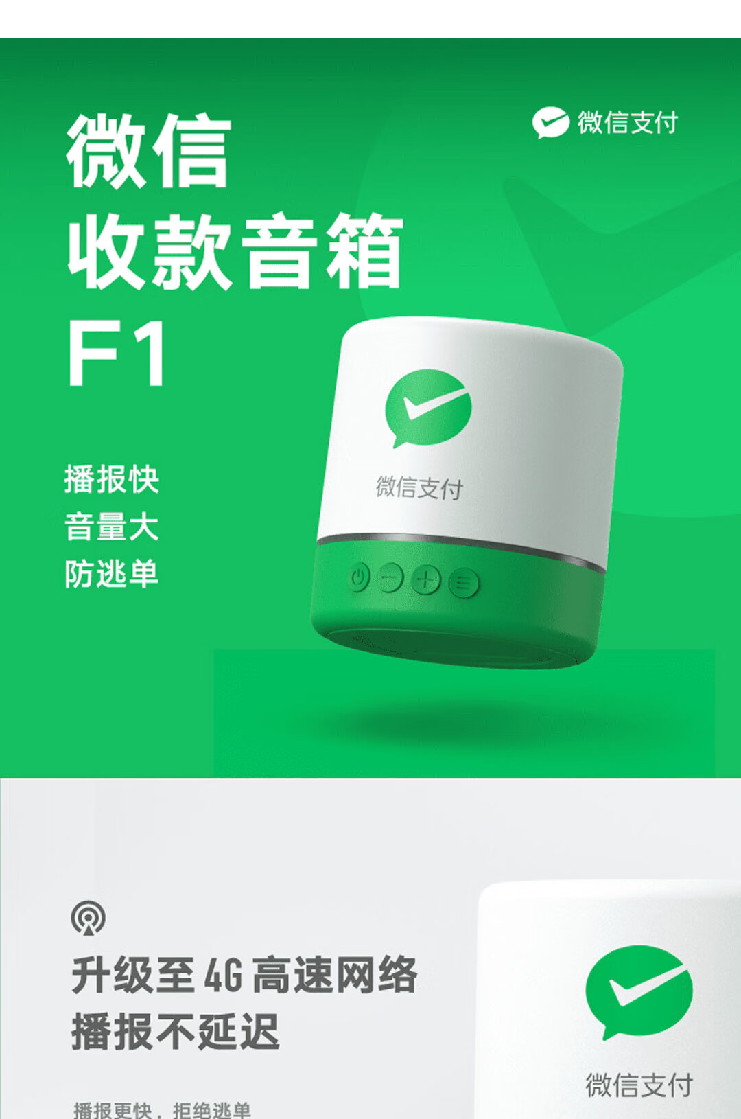 Zhichu Digital (ZCSM) WeChat payment official audio F1 comes with its own network 4G version. Even when the mobile phone is turned off, it can broadcast QR code payment voice announcer stall setting tips. WeChat F1 top version multi-person broadcast + anti-escape order