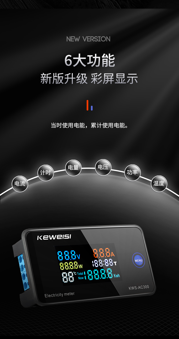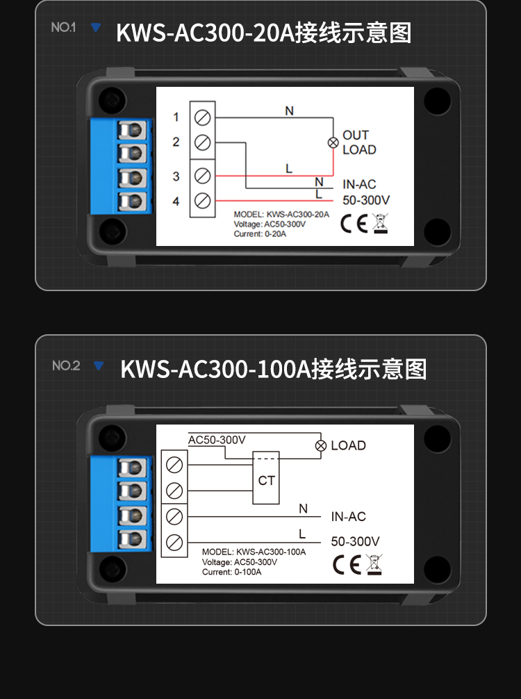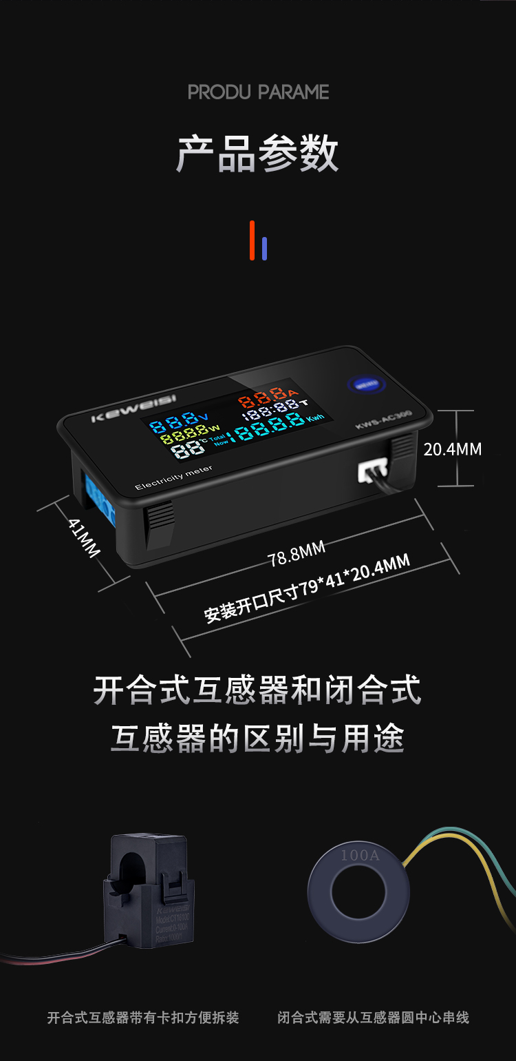 KEWEISI KWS-AC300 AC voltage ammeter 100A multi-function power meter AC digital voltmeter KWS-AC300-100A closed type transformer