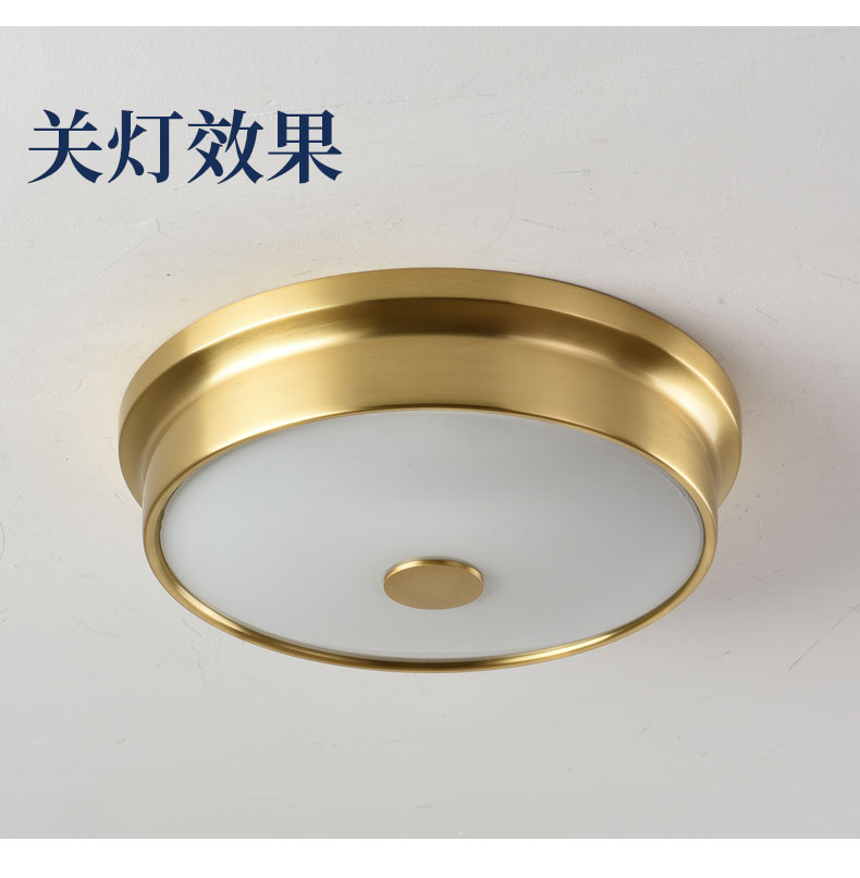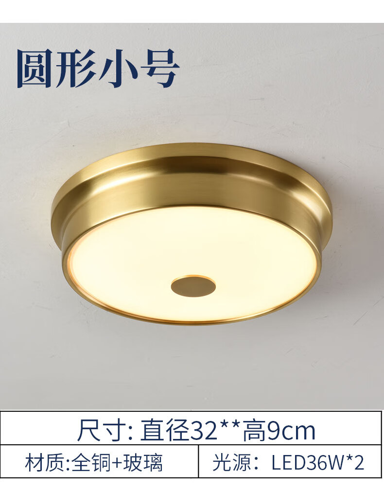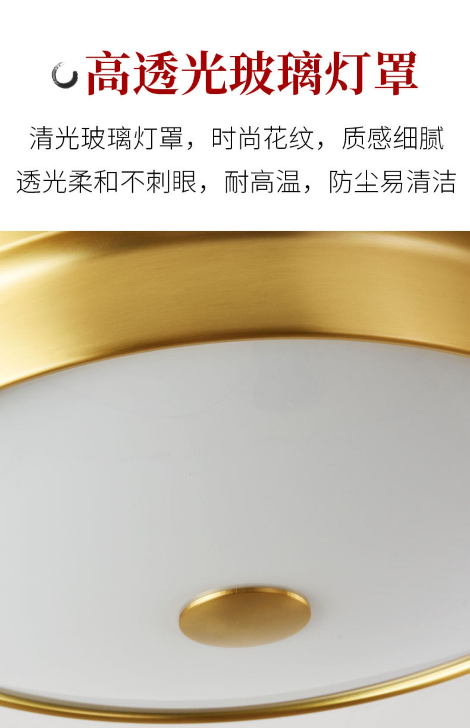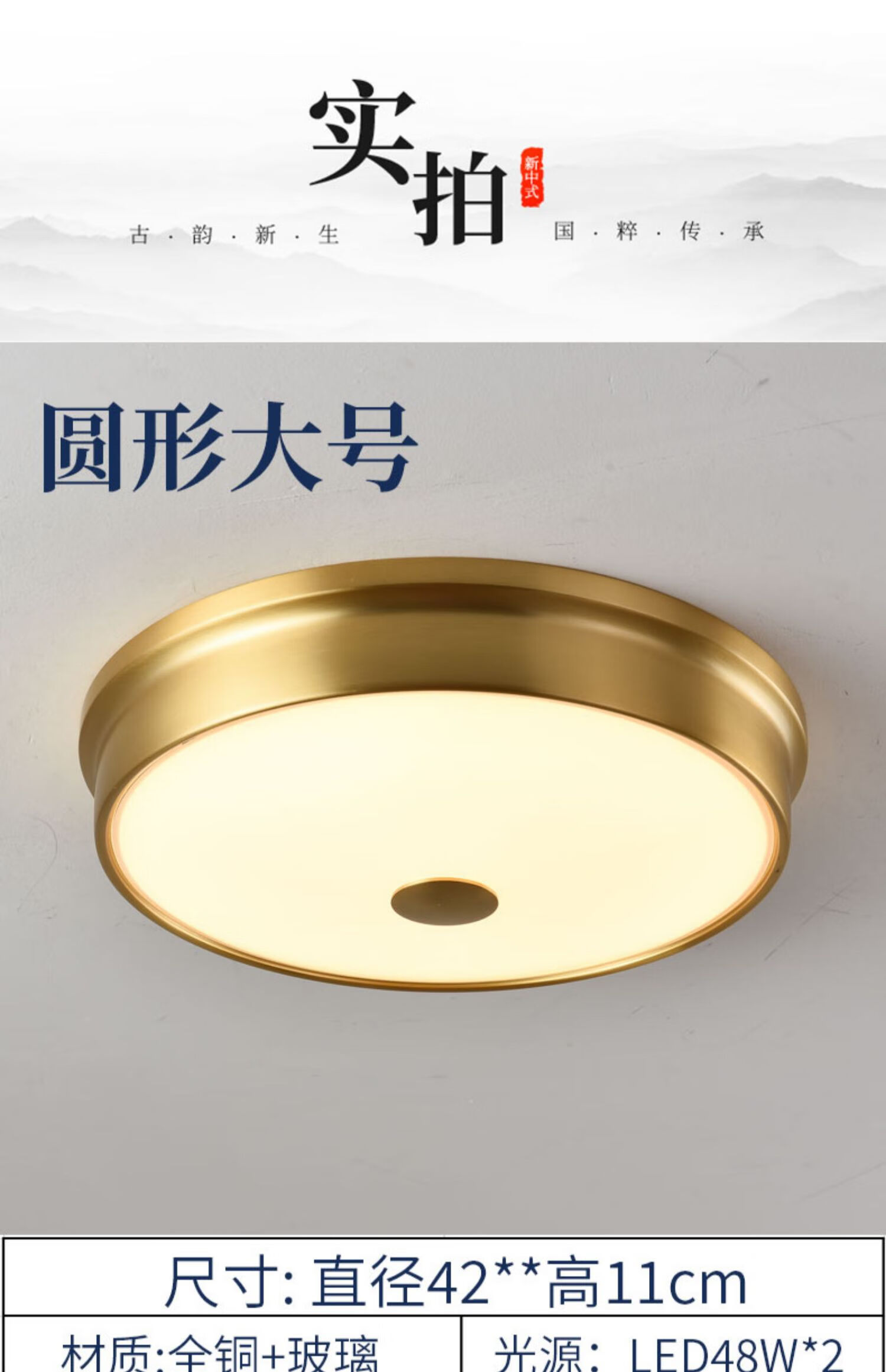 Villa entrance light, outdoor ceiling light, self-built house entrance ceiling light, door light on the door, all-copper balcony aisle, new Chinese style modern simple entrance corridor, entrance hall, glass waterproof lamp, large size - diameter 42*height 11cm (LED three-color 48W*2