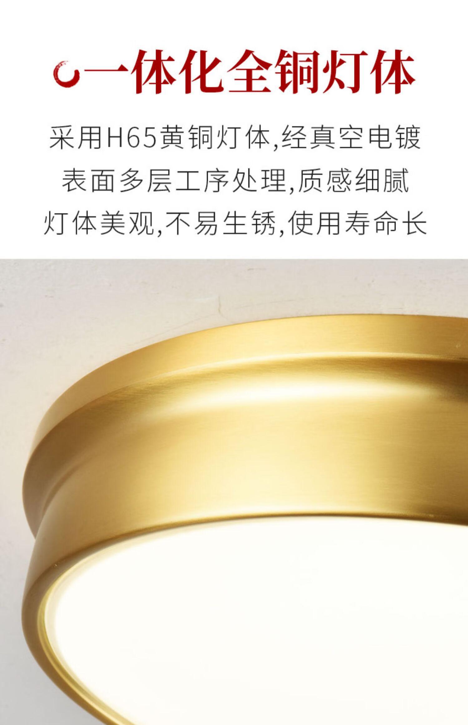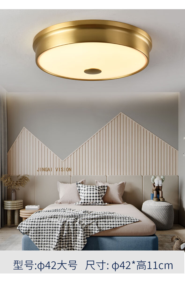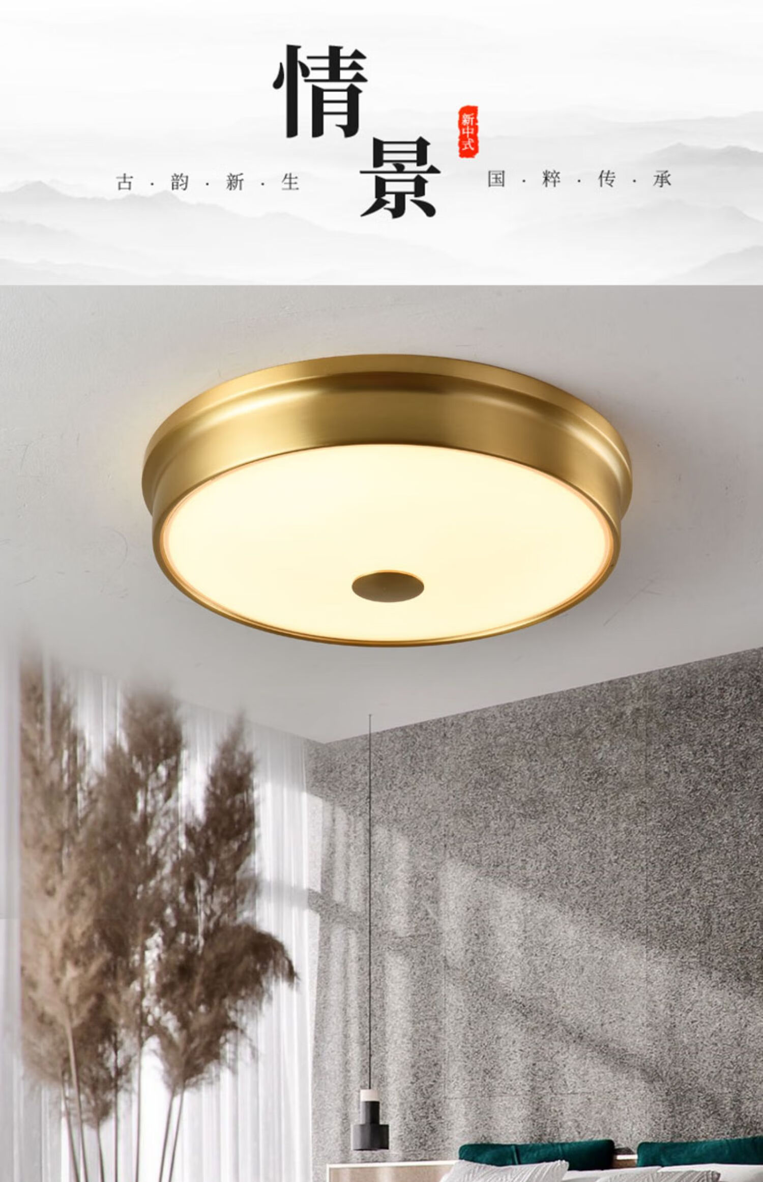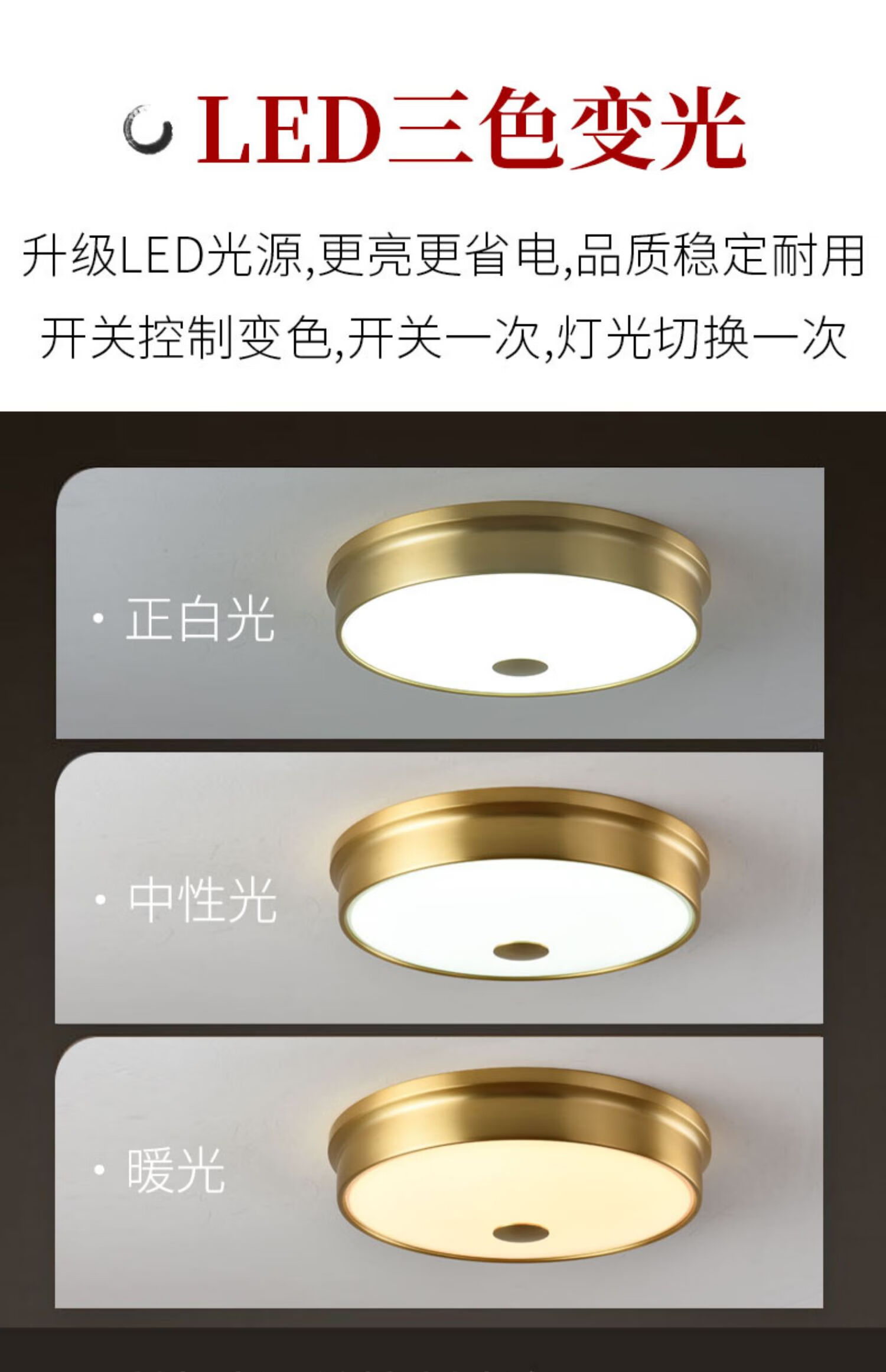 Villa entrance light, outdoor ceiling light, self-built house entrance ceiling light, door light on the door, all-copper balcony aisle, new Chinese style modern simple entrance corridor, entrance hall, glass waterproof lamp, large size - diameter 42*height 11cm (LED three-color 48W*2