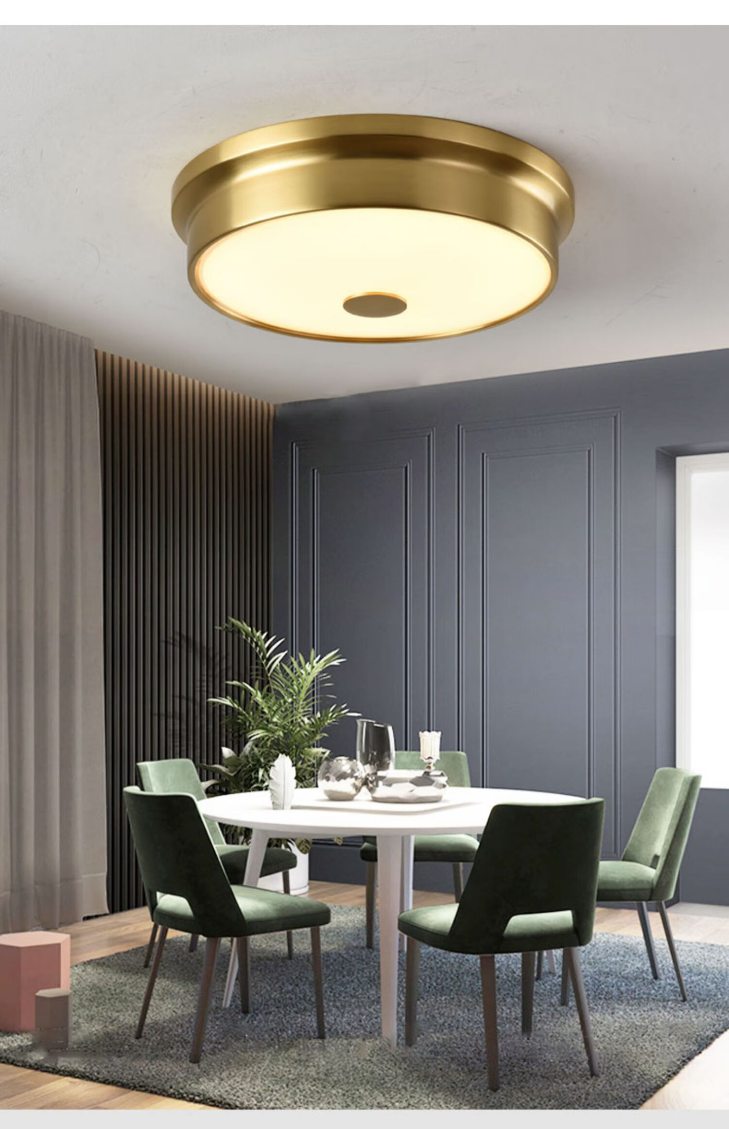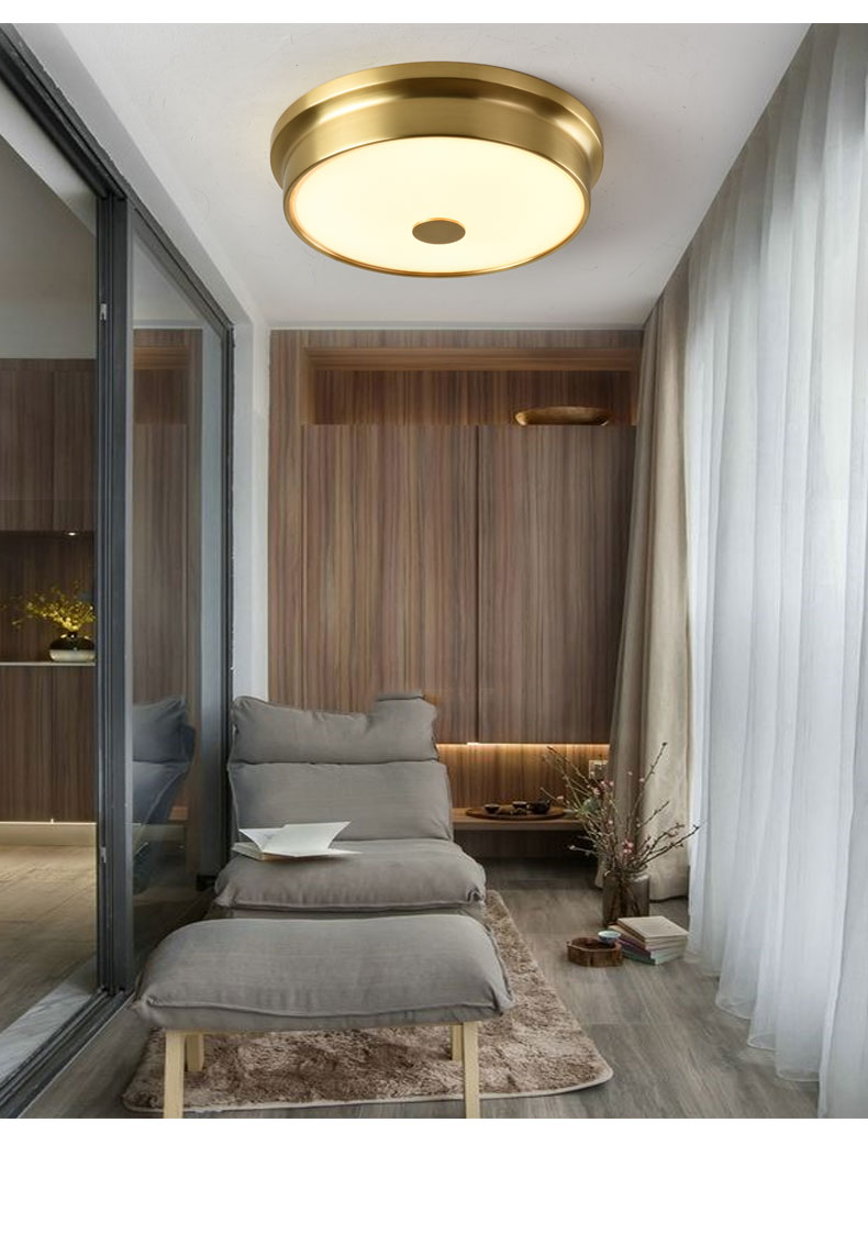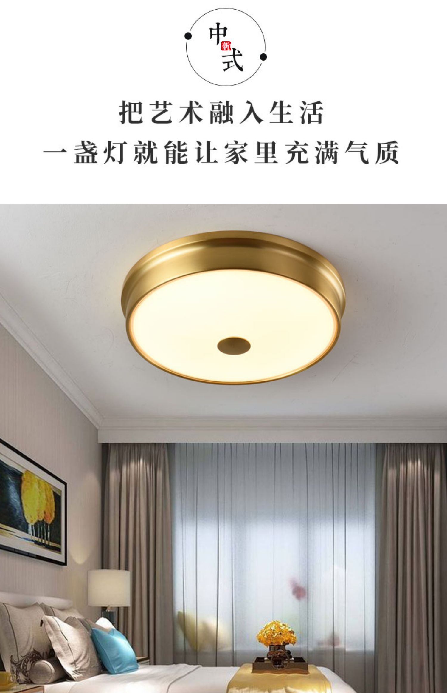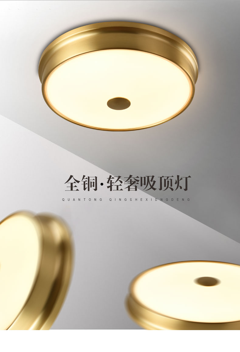Villa entrance light, outdoor ceiling light, self-built house entrance ceiling light, door light on the door, all-copper balcony aisle, new Chinese style modern simple entrance corridor, entrance hall, glass waterproof lamp, large size - diameter 42*height 11cm (LED three-color 48W*2
