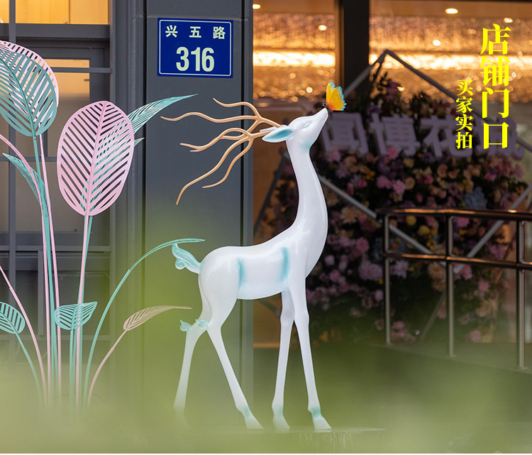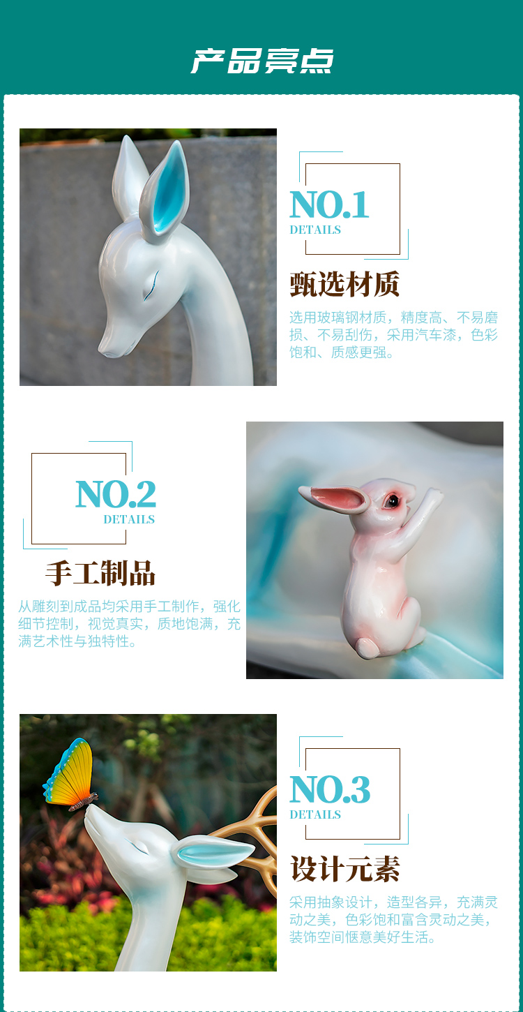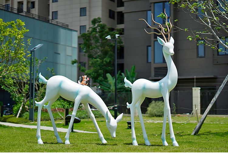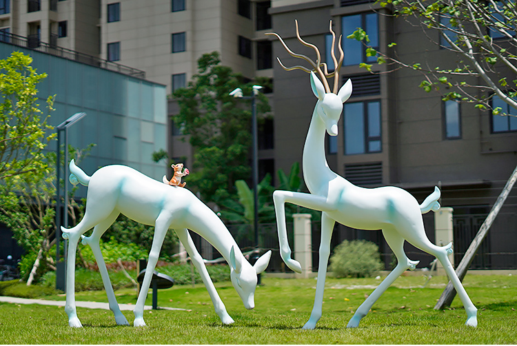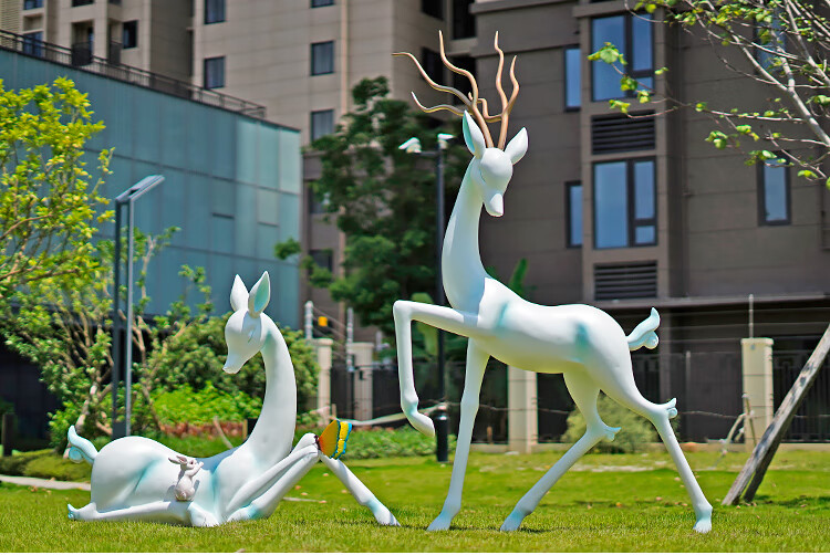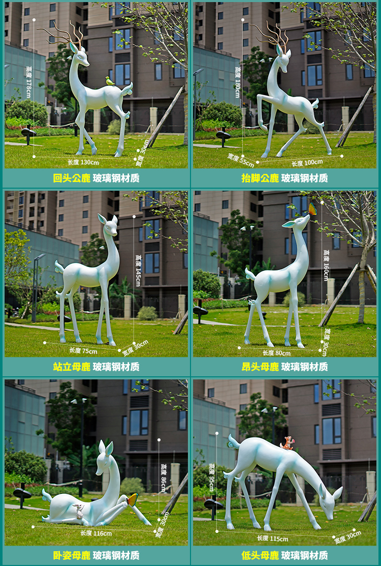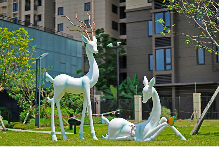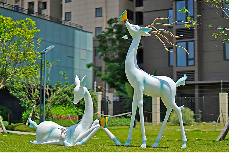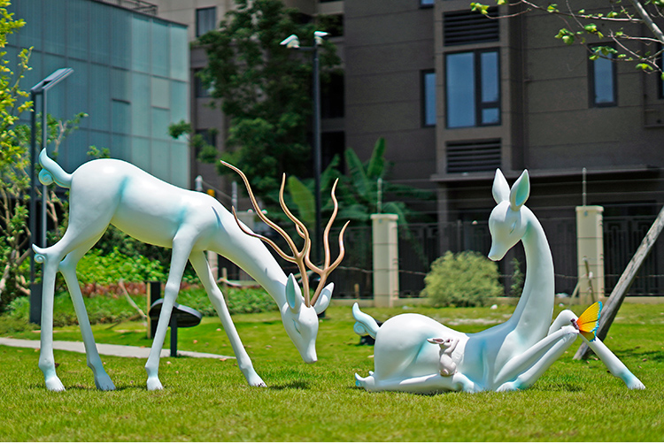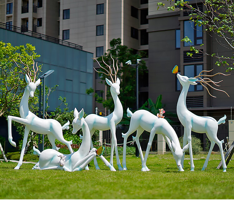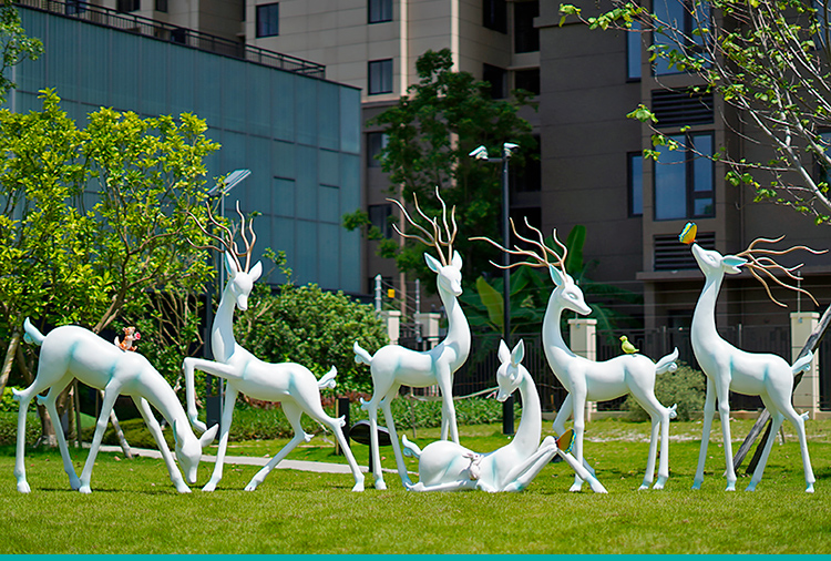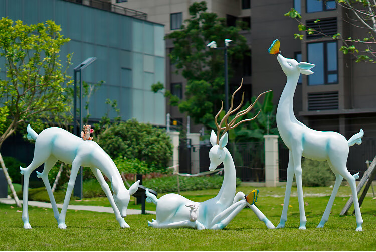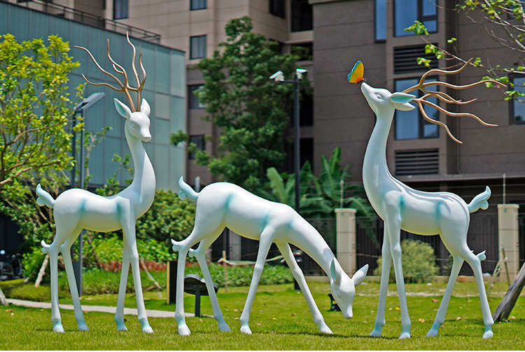 Fiberglass abstract sika deer sculpture ornaments sales department lawn meadow decoration community garden landscape decoration three spiritual deer 3