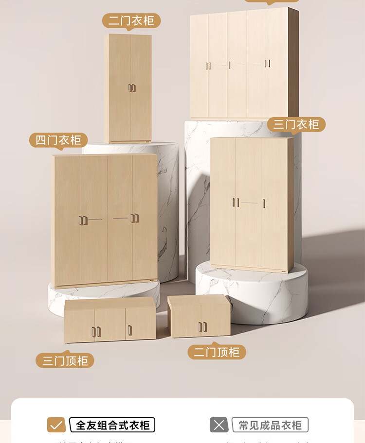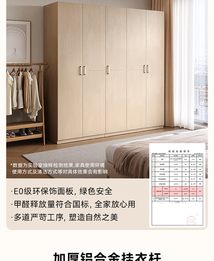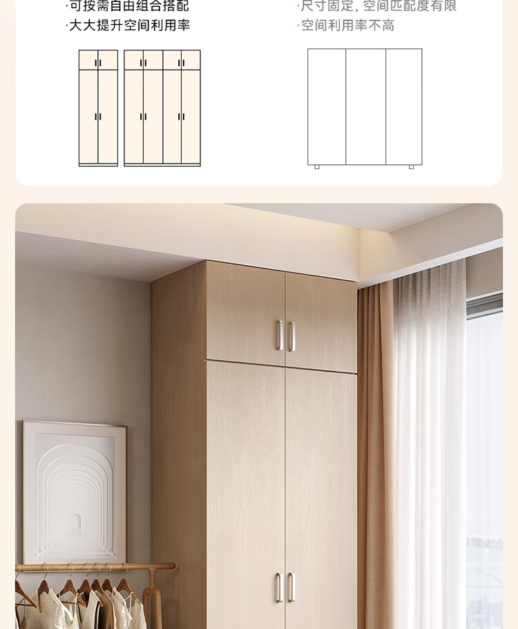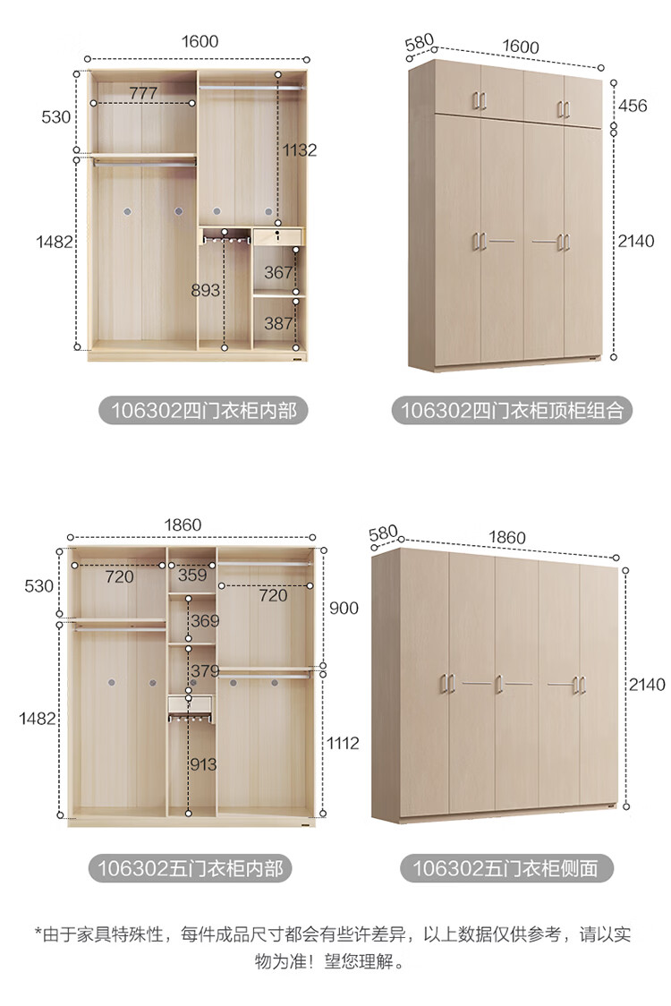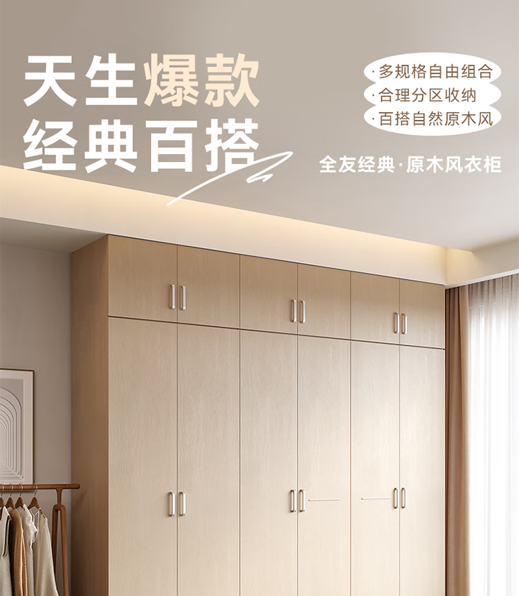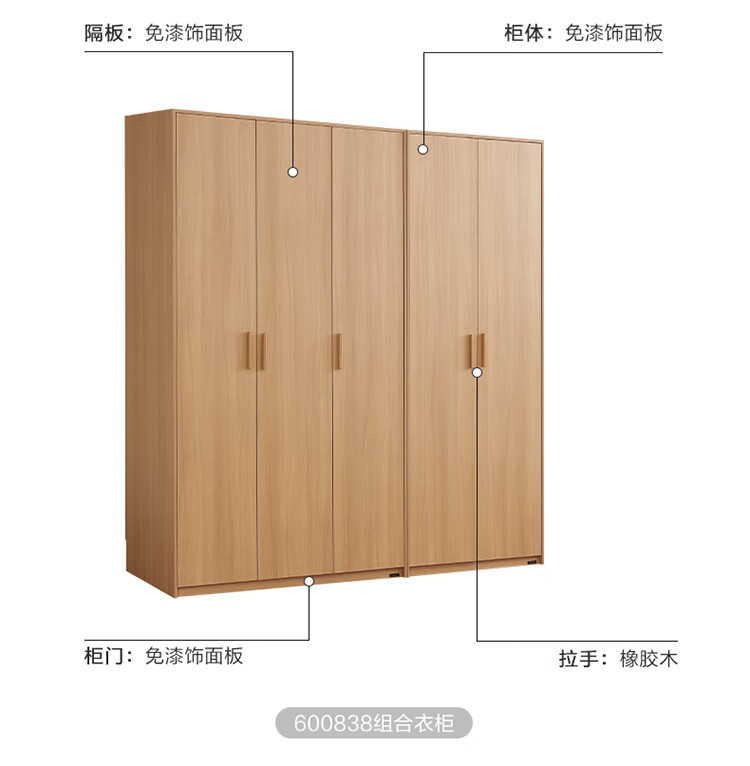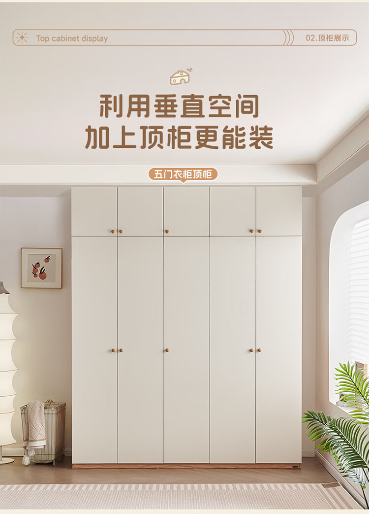 Quanyou Home Finished Modern Simple Style Large Wardrobe Top Cabinet Combination Home Bedroom Furniture Cabinet Wardrobe White Oak Color 1.86m Five Door Wardrobe New Multi-Specifications Flexible Combination + Scientific Partitioned Storage