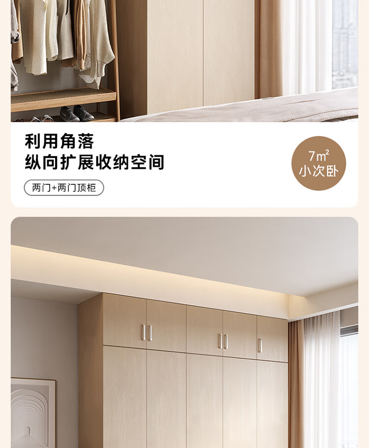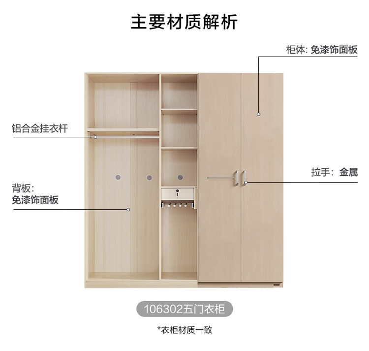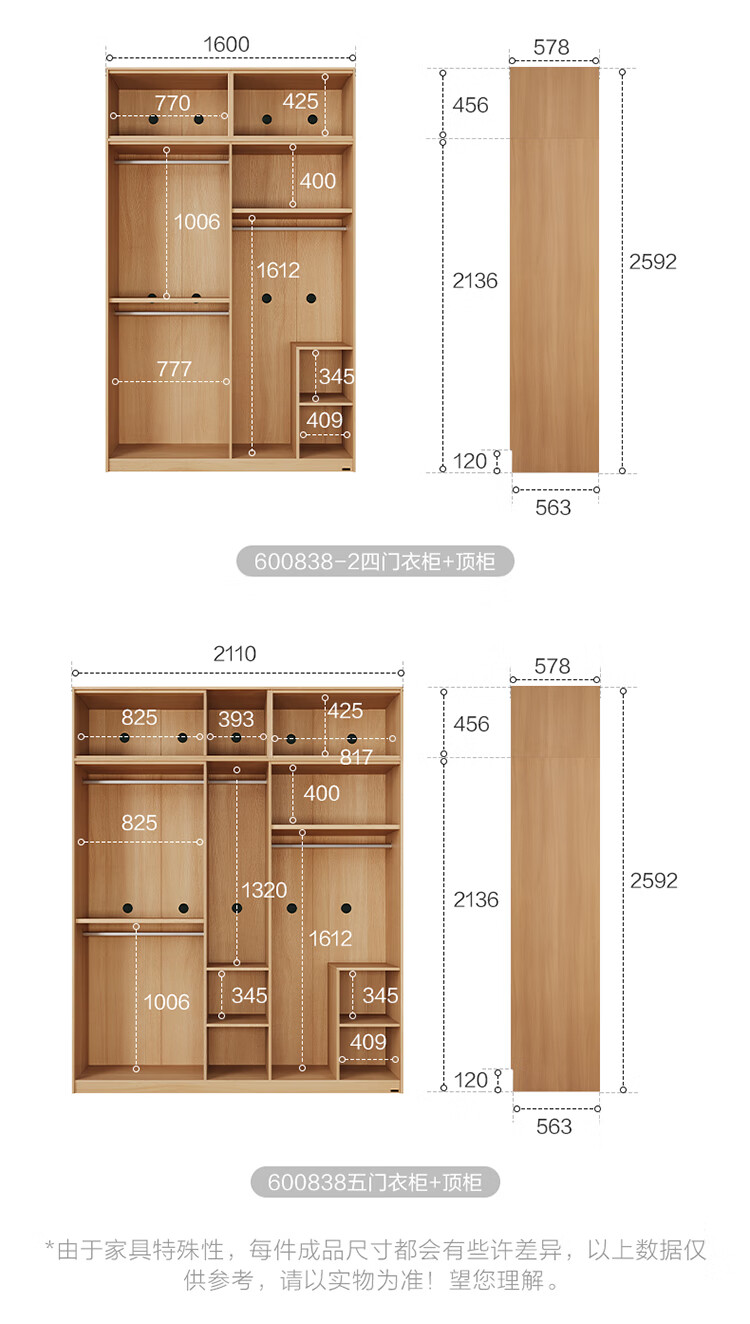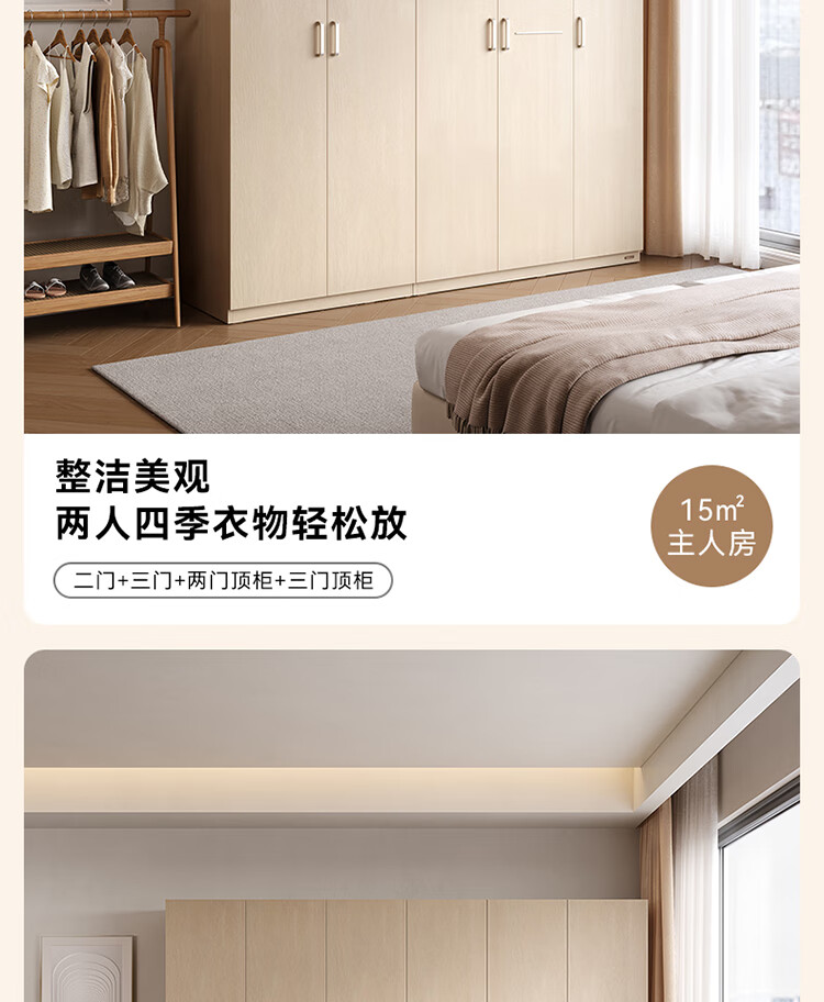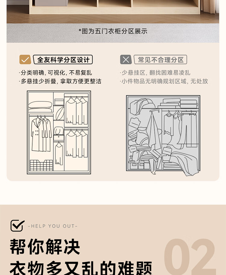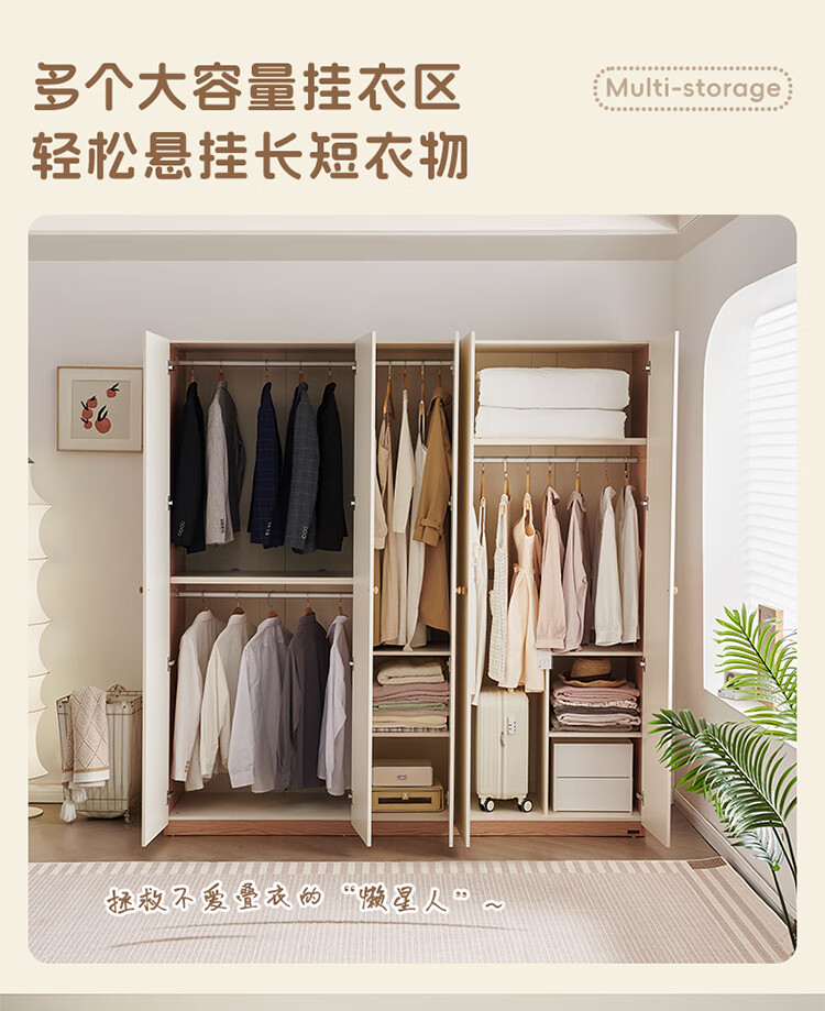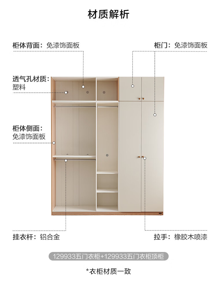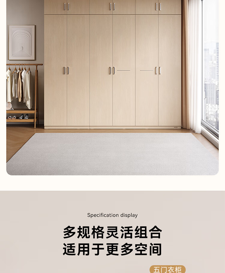 Quanyou Home Finished Modern Simple Style Large Wardrobe Top Cabinet Combination Home Bedroom Furniture Cabinet Wardrobe White Oak Color 1.86m Five Door Wardrobe New Multi-Specifications Flexible Combination + Scientific Partitioned Storage